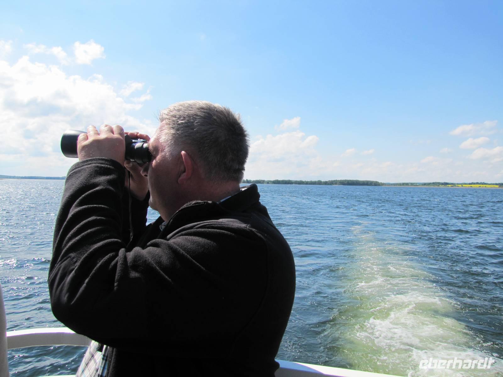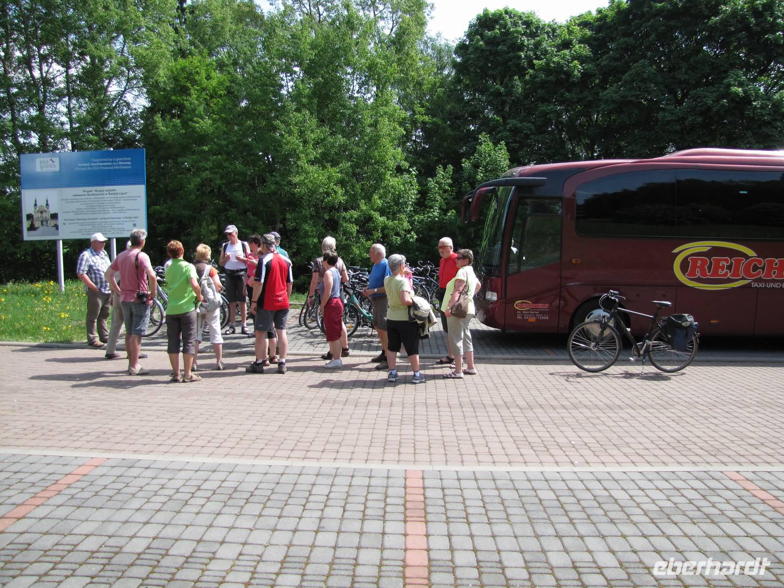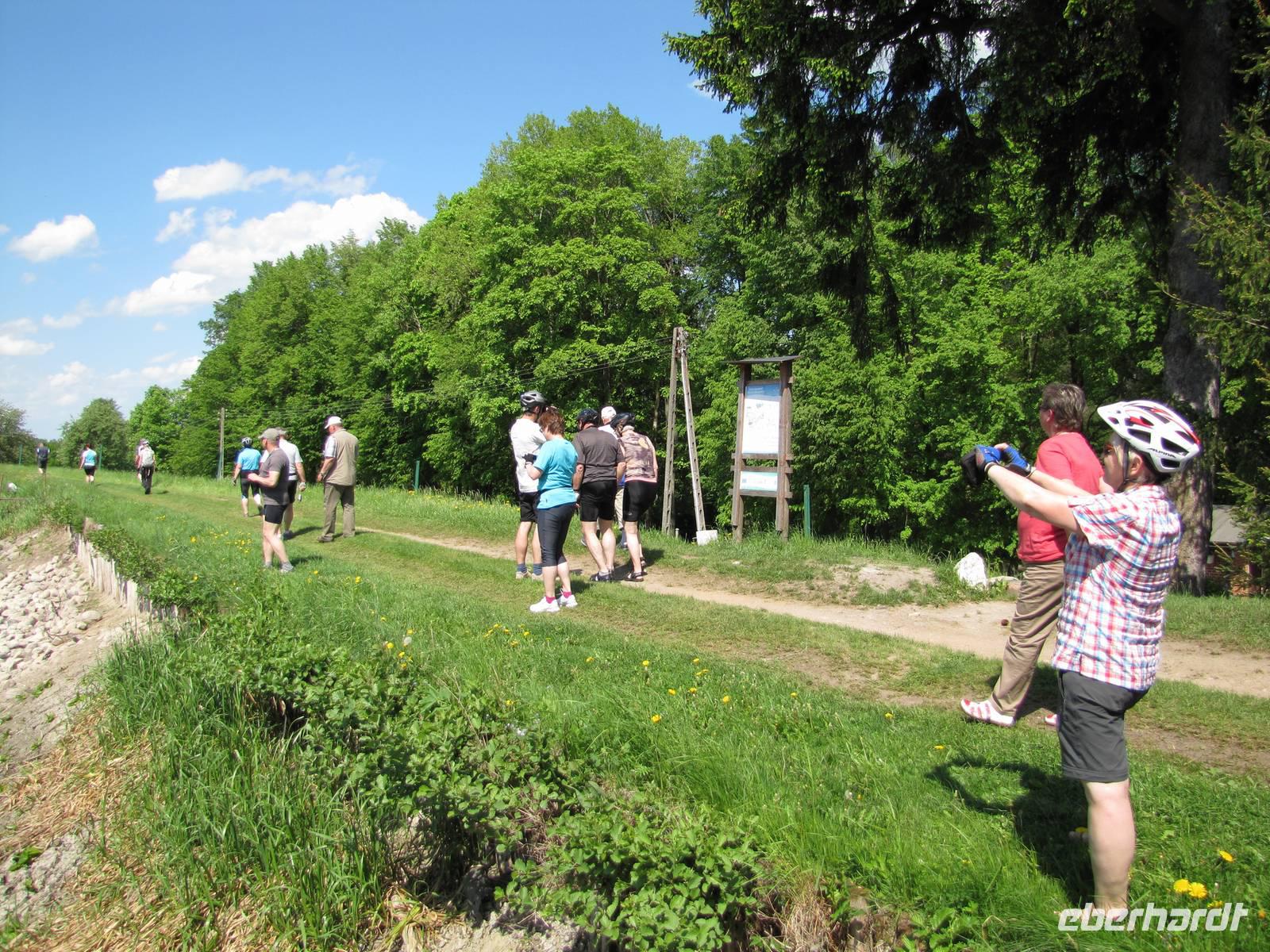 Das erste Programmhighlight war die Wolfsschanze, das ehemalige Hauptquartier von Adolf Hitler und seinem Stab im 2. Weltkrieg. Früh ab 9.00 Uhr führte uns ein örtlicher Tourguide durch das Gelände der Wolfsschanze. Wir erfuhren viel über das Leben und der Funktionsweiße des Führerhauptquartiers. Die Bunkeranlagen von Bohrmann, Goering und Hitler lagen nach ihrer Sprengung damals noch genauso da bis heute. Unser Tourguide erzählte uns so einige interessante Geschichten und Anekdoten von damals. Nach dieser tollen Führung gingen wir zurück zum Bus und luden die Räder aus. Zusammen mit Natalia starteten wir ab der Wolfsschanze unsere Fahrradtour in Richtung Steinort. Unterwegs standen wieder kleine Pausen auf dem Programm. Es ging entlang idyllischer Waldwege und ab und zu auch ein paar Sandwege. In Steinort angekommen besichtigten wir die Ruinen vom ehemaligen Schloss des Grafen von Lehendorf. Gegen 13.30 bestiegen wir unser gemietetes Schiff, mit der wir 2 Stunden über dem Doben-See fuhren. Ein leckeres Mittagessen (welches wir einen Tag vorher schon bestellten) wurde uns auf dem Schiff serviert. Es gab Zanderfilet und Aal zur Auswahl. Es war eine tolle Atmosphäre, da wir mit unserer Gruppe alleine auf Schiff gewesen sind. Als dann noch die Sonne herauskam war die Stimmung auf dem Höhepunkt. Leider erfuhren wir in der Zeit telefonisch vom Busfahrer dass unser Bus eine Panne hat. Es stellte sich dann heraus dass die Kupplung einen Schaden hatte und er zur Reparatur nach Danzig abgeschleppt werden muss. Zum Glück konnten wir in der Zeit auf dem Schiff einen Ersatzbus für die nächsten Tage organisieren. Als wir in Lötzen mit dem Bus anlegten stand der Ersatzbus schon da. Alles klappte prima und die Reise konnte problemlos fortgesetzt werden. Wir besichtigten noch die kleine Stadt Lötzen und fuhren gegen 17.00 Uhr zurück zum Hotel. Leider stand das Glück nicht mit auf der Seite des Busfahrers, denn er musste bis Abends 23.00 Uhr auf den Abschleppdienst aus Danzig warten und ca. 5 Stunden in der Nacht zur Werkstatt fahren (an einem Abschleppseil). Für die nächsten Tage hatten wir schonen einen Gepäcktransport und Radhängertransport organisiert und somit konnte die Reise ohne Probleme für die Reisegäste fortgesetzt werden.