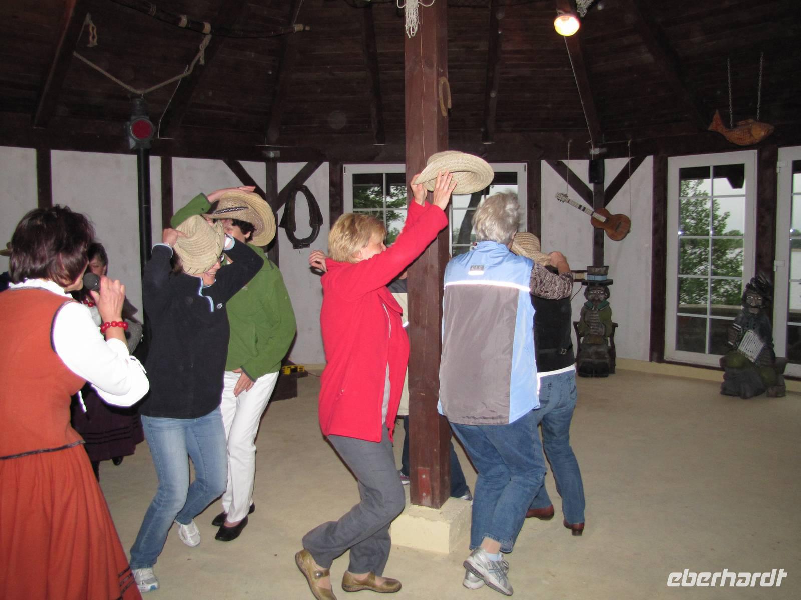 Bei leichtem Regen setzten wir uns in unseren Ersatzbus und fuhren ca. 30min. in Richtung Johannisburger Heide. Etwas außerhalb der Stadt Johannisburg trafen wir uns an einem Waldrand mit unserem Radanhängertransport und luden gemeinsam die Räder aus. Der erste Teil der Radtour ging durch das schöne Waldgebiet, später dann an einigen Seen und idyllischen Dörfern. Das Wetter hielt sich und wir bekamen nur kleine kurze Regenschauer ab. Zur Mittagspause verstärkte sich jedoch der Regen, sodass wir eine etwas längere Mittagspause in verschiedenen kleinen Restaurants in Ruciane Nida einlegten. Leider regnete es auch nach der Mittagspause noch, somit sind wir zügig in Richtung Hotel gefahren, vorbei an einer kleinen Schleuse und über befestigte Sandwege. Wer wollte konnte auf dem Weg ins Hotel noch einen kleinen Stopp in Nikolaiken machen. Abends stand ein Masurischer Tanz und Musikabend auf dem Programm. Es gab Grillspezialitäten umrahmt von 3 polnischen Musikern. Nach dem Essen unterhielten Sie uns mit Spiel und Spaß, wo uns des Öfteren die Tränen kamen vor Lachen!