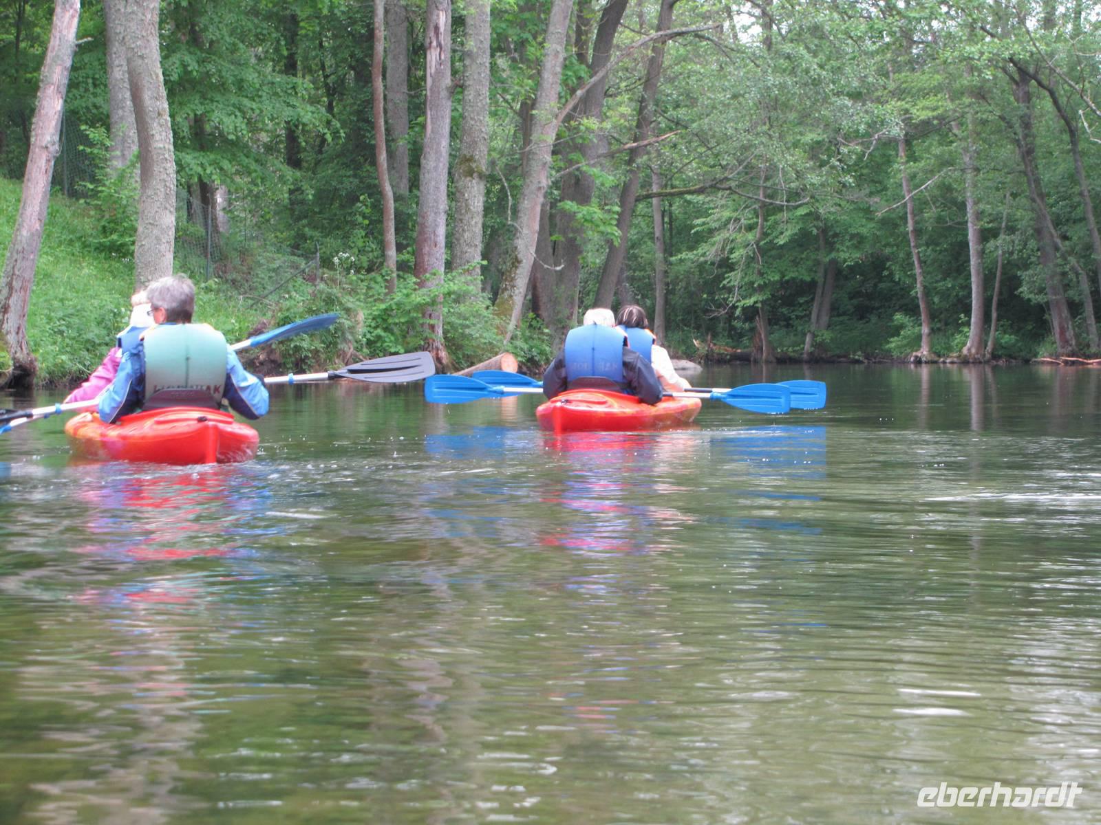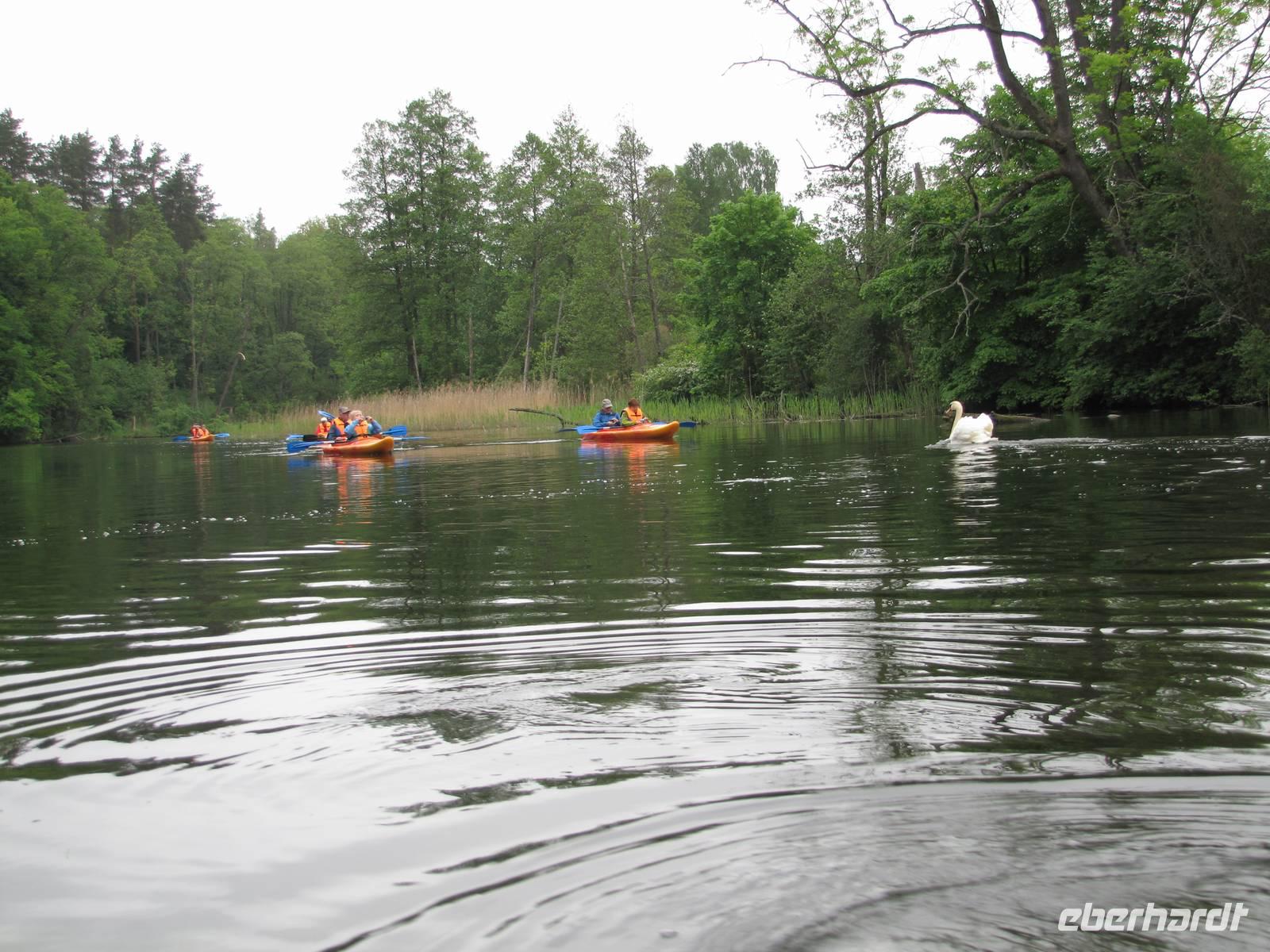 An unserem heutigen letzten Radtag, fuhren wir vorbei an zahlreichen kleinen Seen, vorbei an Alt Ukta und anschließend nach Eckertsdorf. Dort besichtigten wir das Philipponen-Kloster, welches idyllisch in der Nähe des Dusch-Sees liegt. Zum Glück hielt das Wetter einigermaßen und es blieb trocken. Gegen Mittag ging weiter nach Krutyñ, wo wir ein kleines Mittagessen einlegten, welches wir vorher mit Hilfe von Natalia bestellten. Danach freuten wir uns auf die etwa 1,5-stündige Stakenbootfahrt bzw. Paddelbootfahrt auf dem Fluss Krutyñ. Die glasklare Krutynía zählt zu den schönsten Paddelrevieren Polens. Wir fuhren vorbei an prachtvollen Schwänen und genossen die Ruhe und die schöne Natur. Nach diesem letzten großen Highlight der Reise fuhren wir zurück zum Hotel, von wo aus wir uns von unserer Reiseleiterin Natalia verabschiedeten. Den Abend ließen wie immer in einer gemütlichen Runde ausklingen.