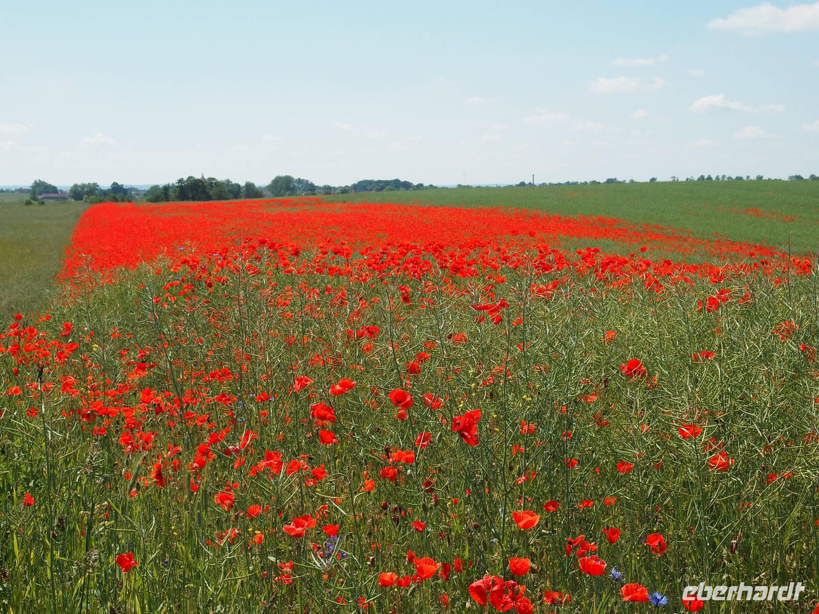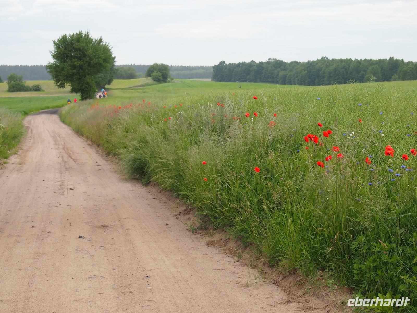 Sowohl der anfangs leichte Nieselregen als auch der spätere kurze Schauer konnten uns in unserem Tatendrang nicht bremsen. Wir fuhren an dem See Juno und schönen Wiesen und Mohnfeldern vorbei zur heiligen Linde.