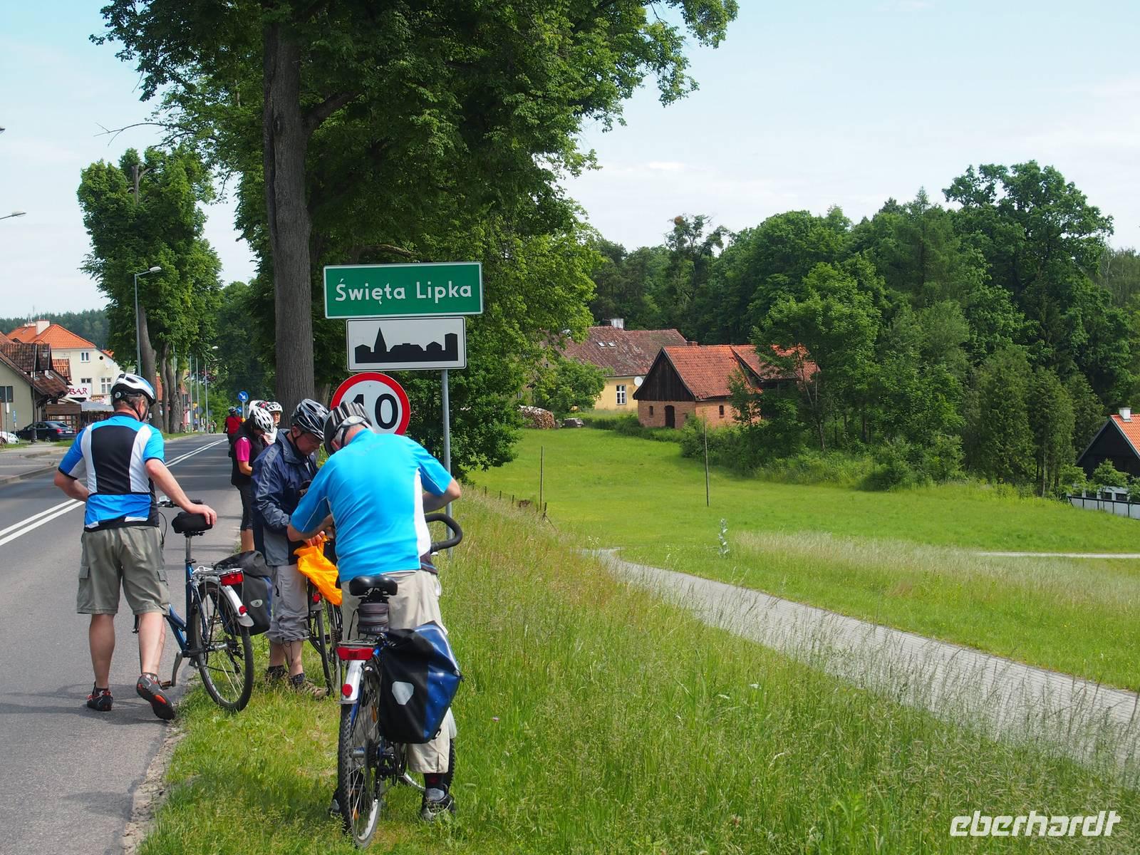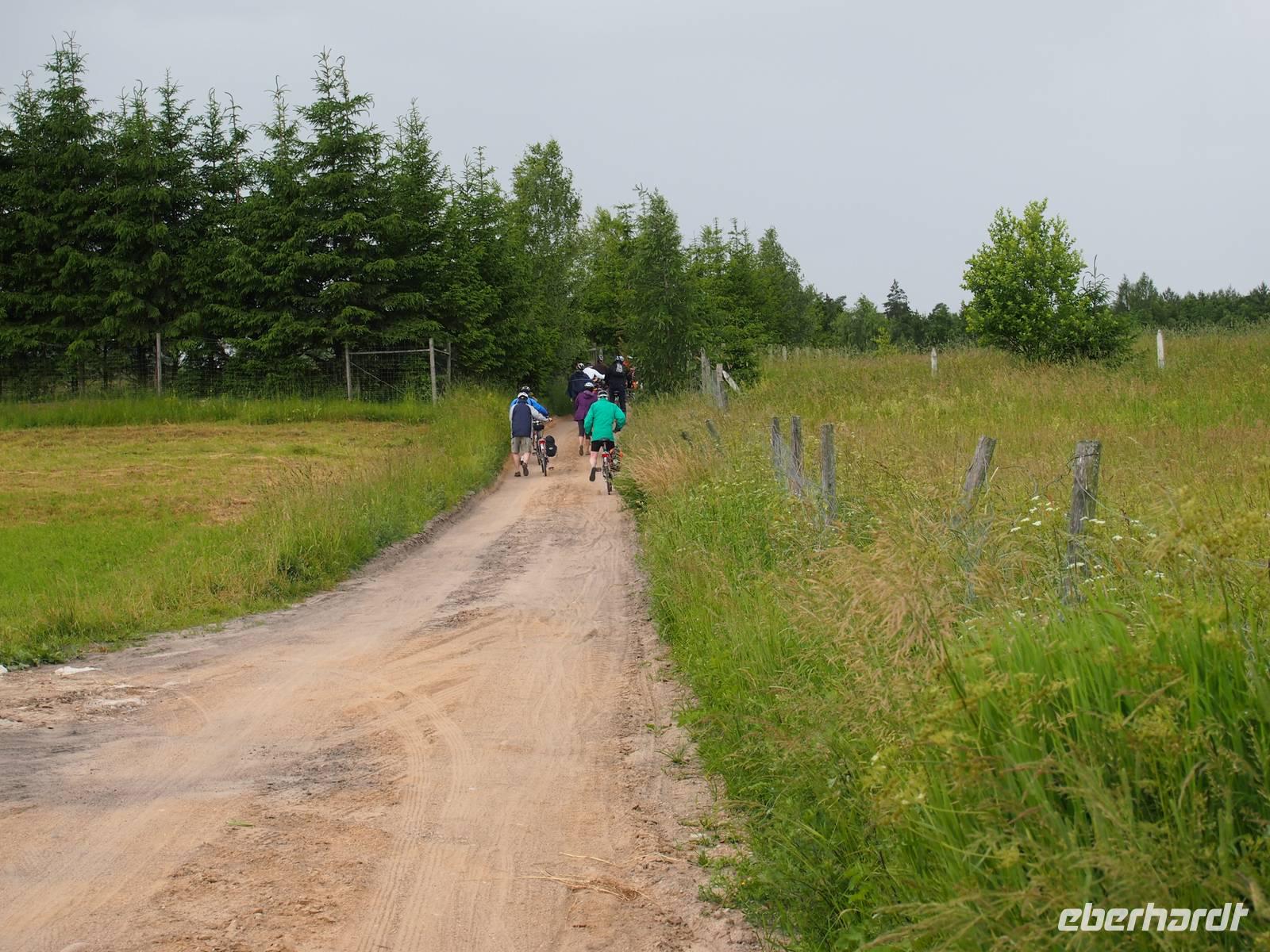 Heute war uns das Wetter leider nicht ganz so wohlgesonnen, aber das sollte uns vor den letzten Kilometern nicht aufhalten. Goisa führte uns erneut durch eine wunderschöne und sehr malerische Gegend der Masuren, Richtung Alt Ukta. Wir waren auch heute, wie auch auf der ganzen Reise, von größeren Fahrradpannen befreit. Die „schwierigsten" Hürden waren eine heruntergesprungene Fahrradkette und ein verdrehter Sattel, was aber dem Spaß in der Gruppe keinen Abbruch tat.