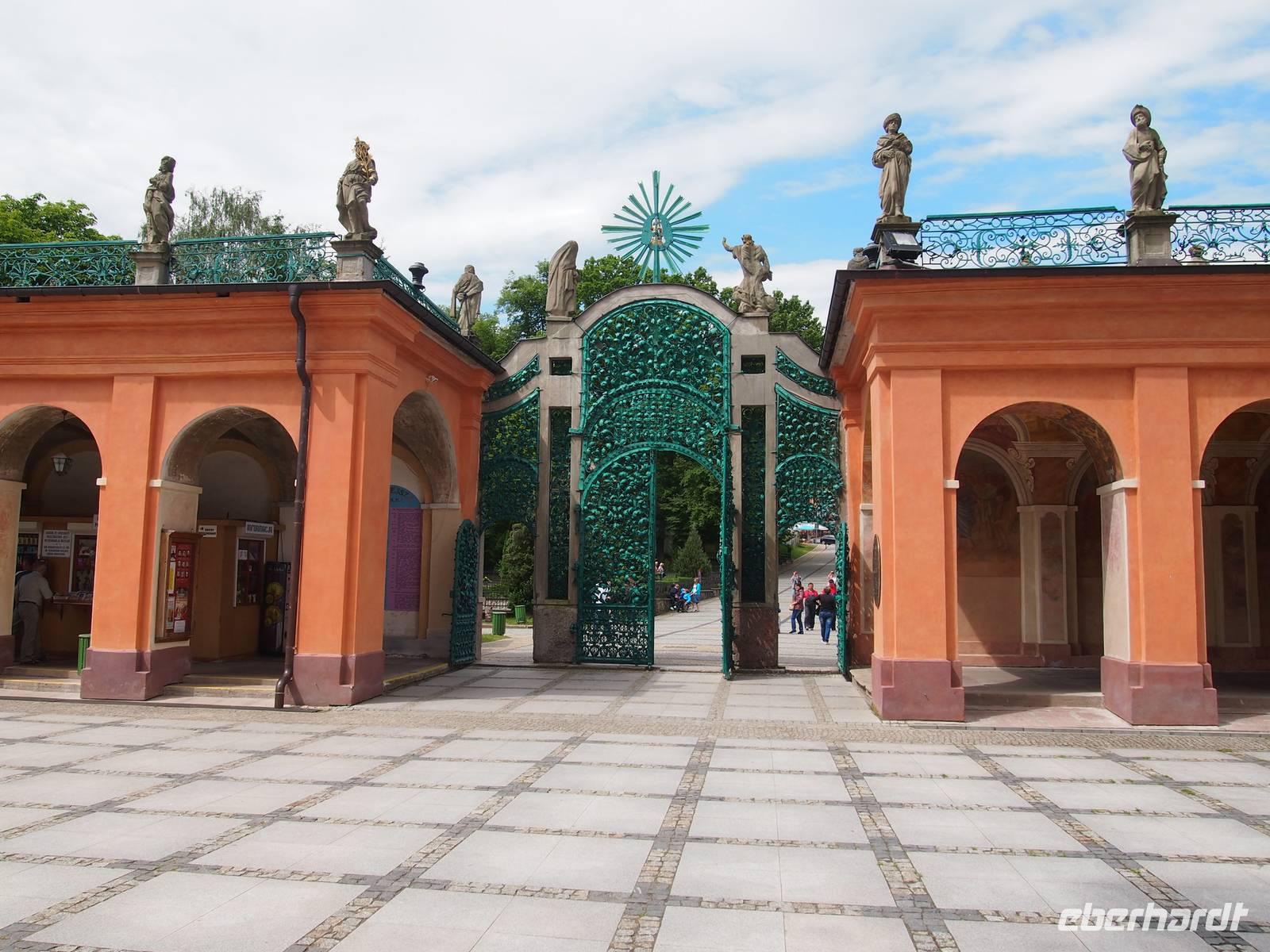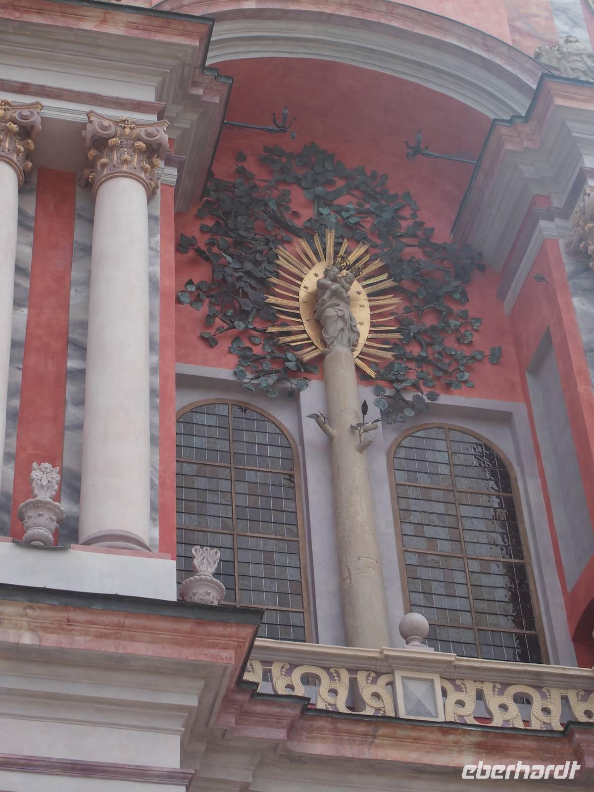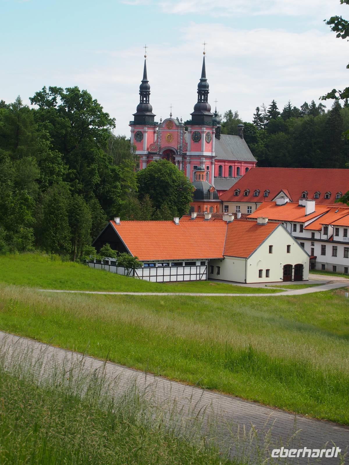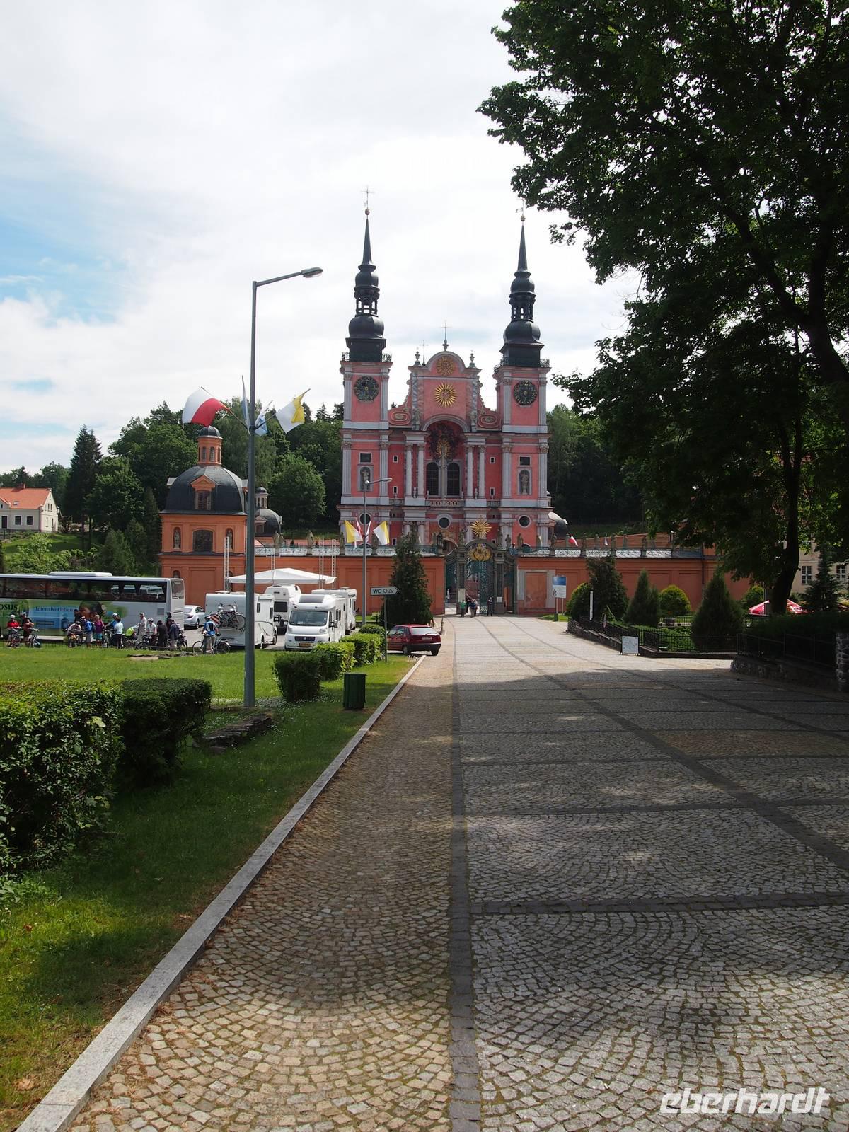 Einen ersten Eindruck der Pracht der Kirche konnte man schon von der Straße aus erhalten, als sie wie aus dem Nichts wunderschön, pompös und leuchtend rot im Grünen vor uns auftauchte.