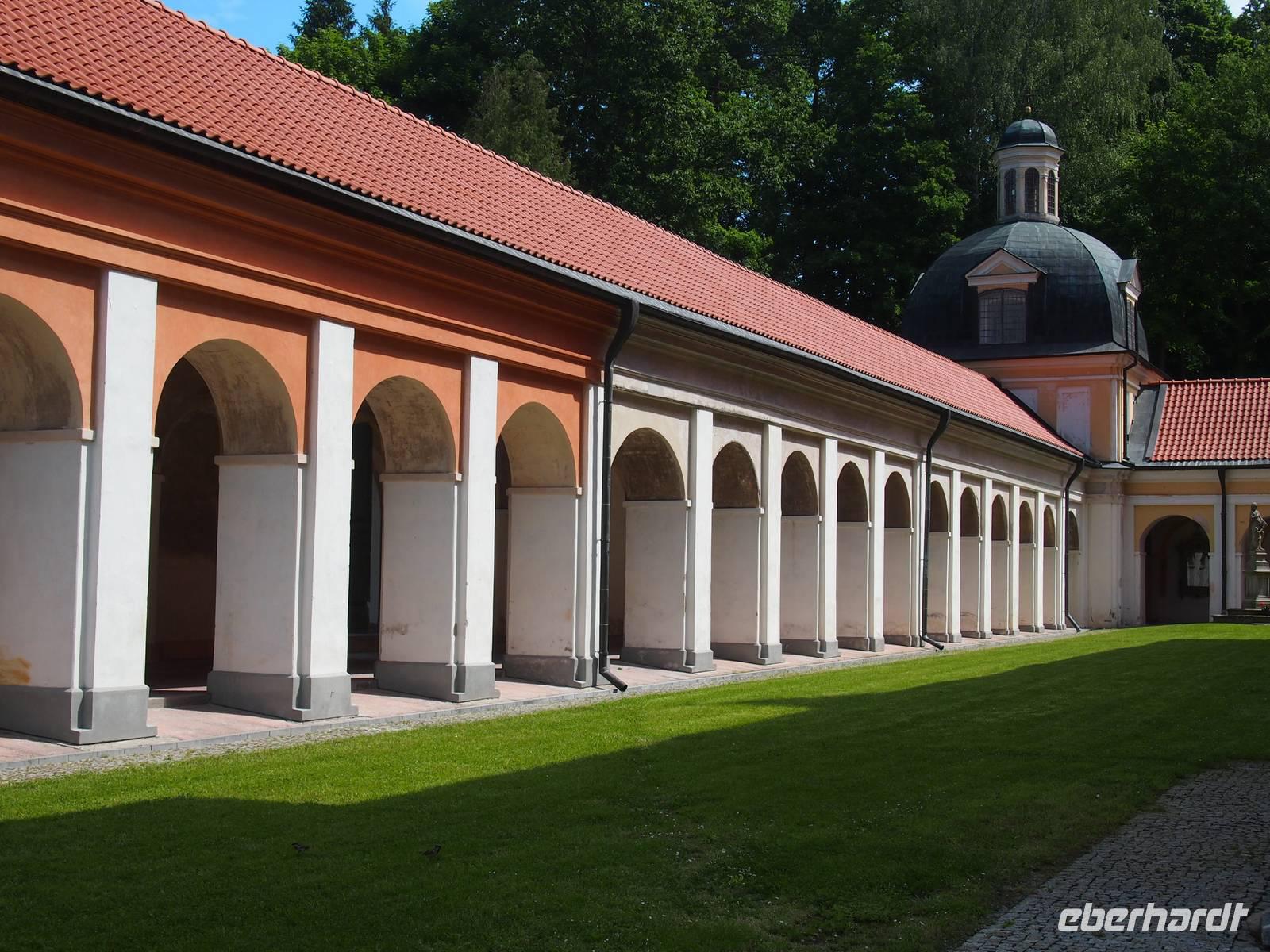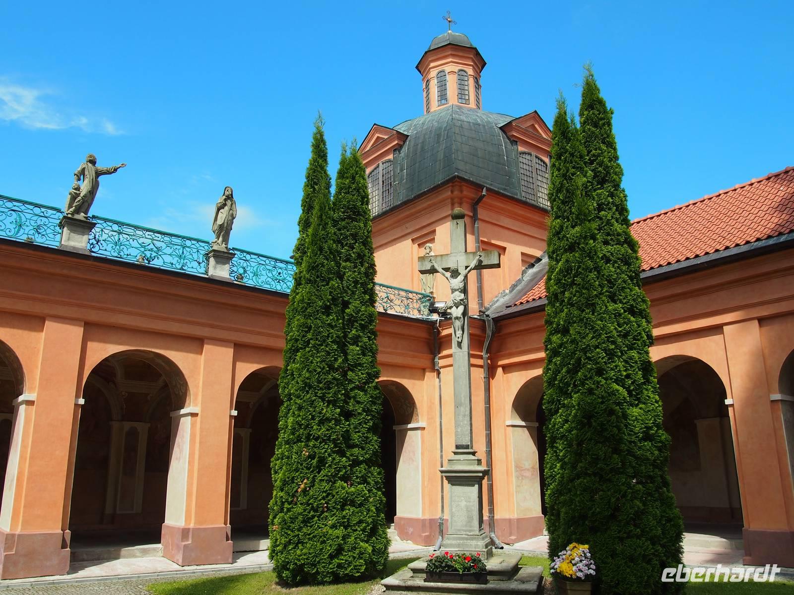 Die barocke Kirche bekam durch eine Legende ihren Namen. Ein Verbrecher wurde zu Unrecht zum Tode verurteilt. In der Nacht vor seiner Hinrichtung hatte er einen Traum. Daraufhin schnitzte er aus einem Stück Holz mit seinem Messer die heilige Maria mit ihrem Sohn. Als die Richter das am nächsten Tag sahen wussten sie, dass dies nicht mit rechten Dingen zu gehen konnte und ließen Gnade walten, Sie wussten, dass der „Verbrecher" eigentlich kein Talent zum Schnitzen hatte und es für einen ungeübten Mann unmöglich ist, so etwas Schönes in einer Nacht zu schnitzen. Sie sprachen ihn frei. Am Tag darauf hatte er wieder eine Eingebung. Er sollte an dem Platz, wo heute die Kirche steht, seine Schnitzerei in die Krone der darauf stehenden Linde legen. Er war anfangs nicht so begeistert, weil diese Holzfigur ihm viel bedeutete, schließlich hat sie ihm ja das Leben gerettet, doch er legte sie in die Baumkrone. An dem Ort geschahen noch weitere unerklärliche Dinge, die sich in der Bevölkerung rumsprachen und so wurde nach und nach eine Kirche gebaut - die Heilige Linde. Oberhalb der Eingangstür sieht man heute eine nachgefertigte Statue von der heiligen Maria mit ihrem Sohn im Arm. Im Inneren wurde genau an dem Ort, an dem sie sich einst befand, eine Linde nachgestellt.