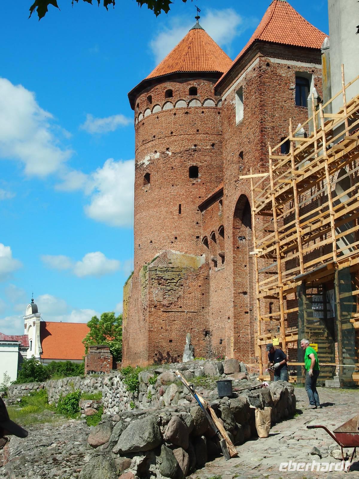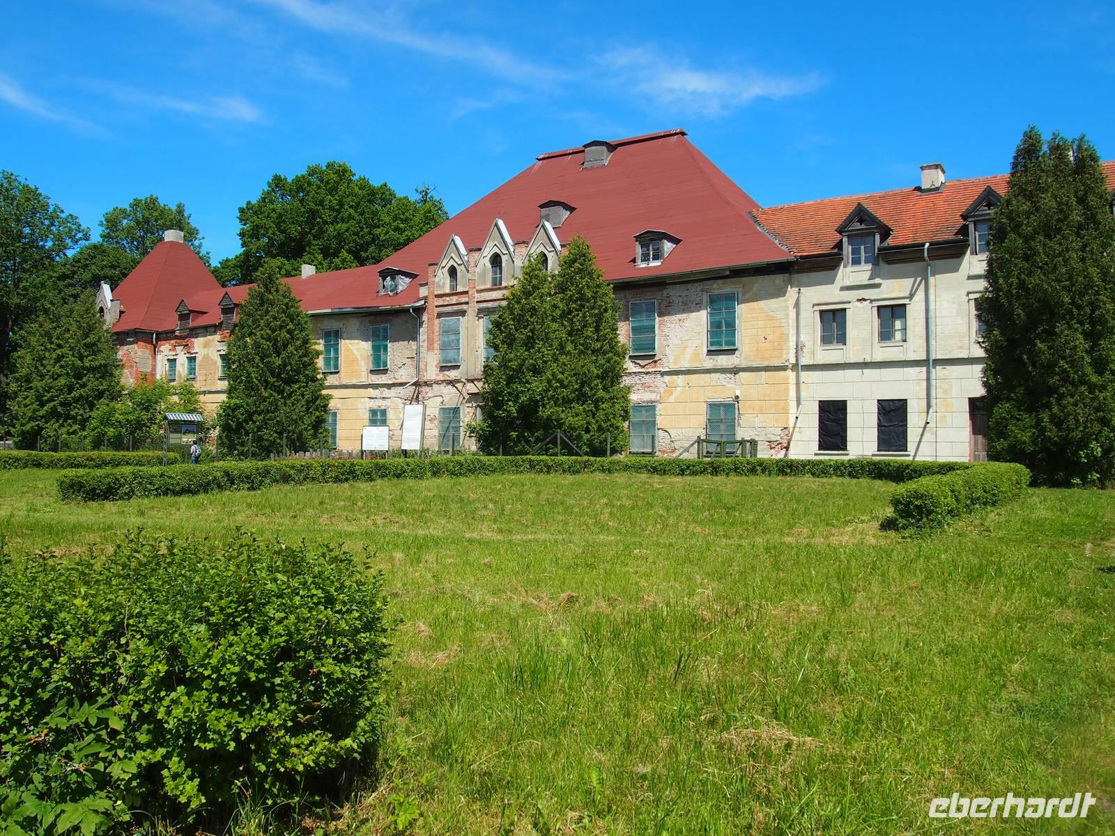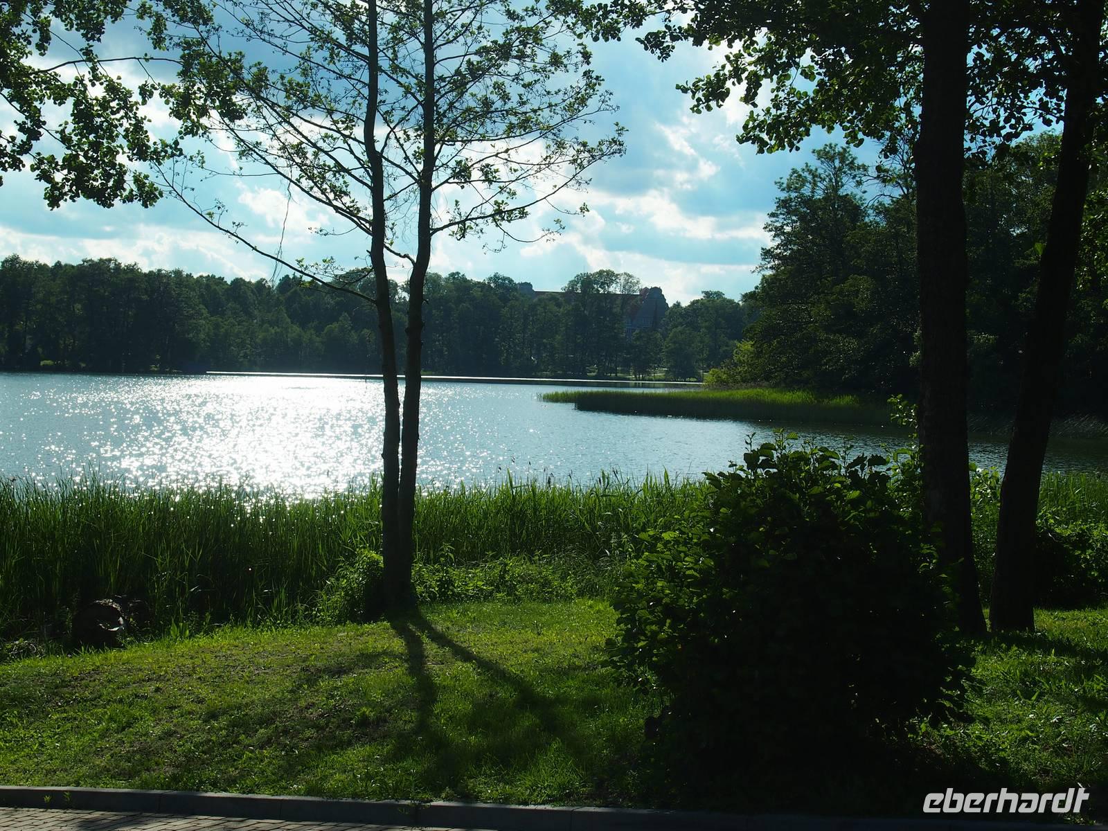 Um 8 Uhr wurden wir von Lukas am Hotel abgeholt. Das heutige Ziel war die Wolfsschanze, wo Stauffenberg das Attentat auf Adolf Hitler verübte. Wir hatten einen sehr fachkundigen Fremdenführer, der uns durch das Sperrgebiet Eins führte und uns an seinem Wissen teilhaben ließ. Wir besuchten die Stelle, an der nur durch Zufall das Attentat von Stauffenberg misslang. Nach diesem informativen und äußerst interessanten Stopp machten wir uns weiter auf dem Weg nach Steinort. Ein Großteil des Weges führte uns entlang des Doben Sees, vorbei an Feldern und Wiesen, teilweise auf sehr sandigem Untergrund. Auf den letzten Metern fuhren wir durch eine der ältesten Eichenalleen der Masuren. Einer Legende nach wurde jede einzelne Eiche für einen geborenen Sohn in der Umgebung gepflanzt. In Steinort wartete Ingo schon auf uns. WER IST INGO?? Nach einer kurzen Pause besichtigten wir das Schloss des Grafen Lehnhoff.
