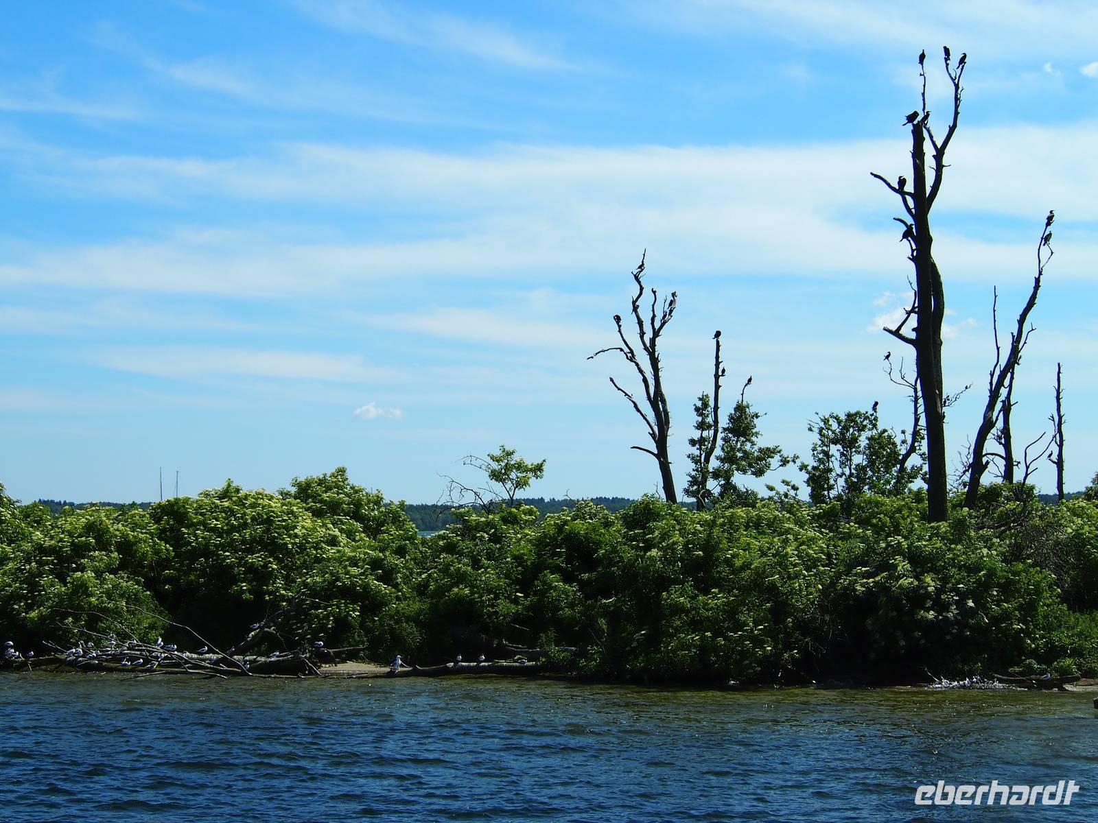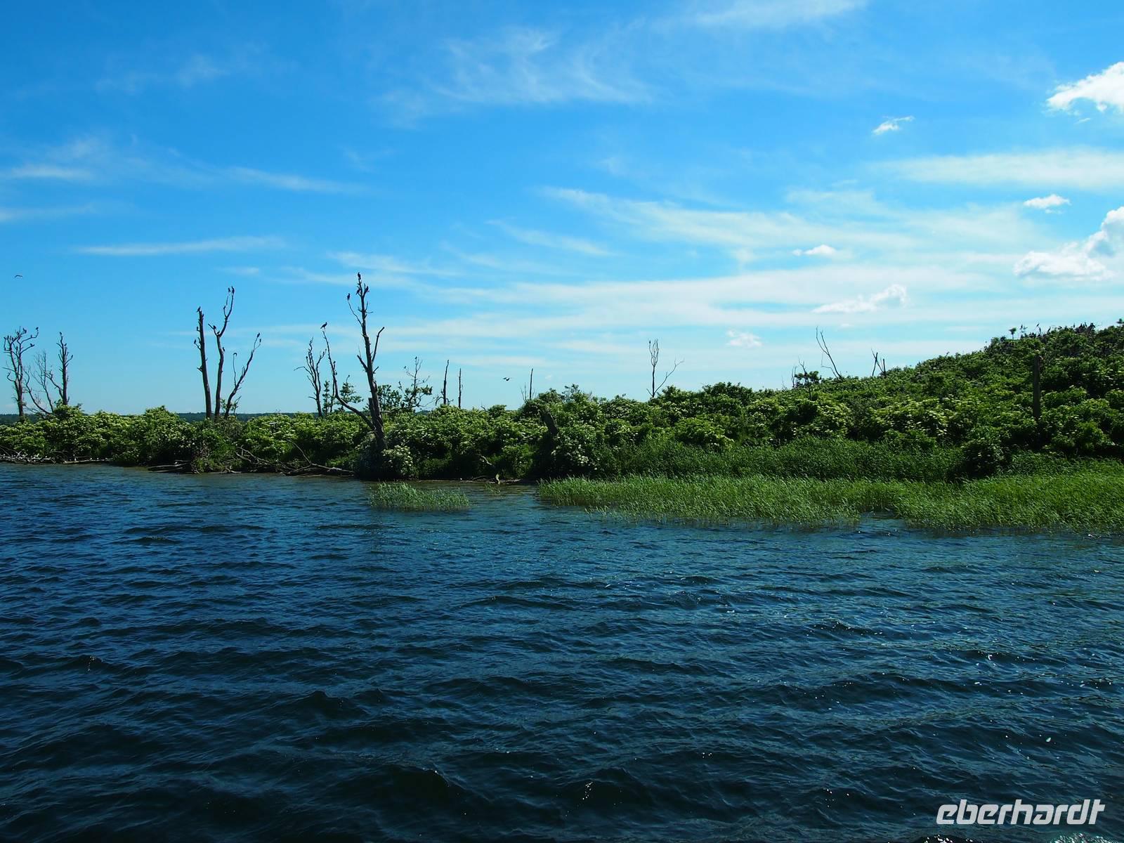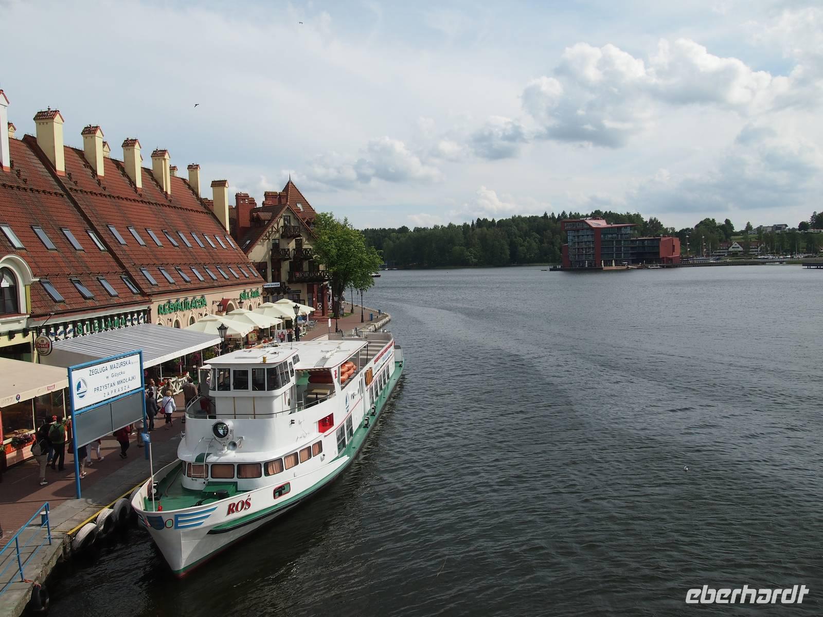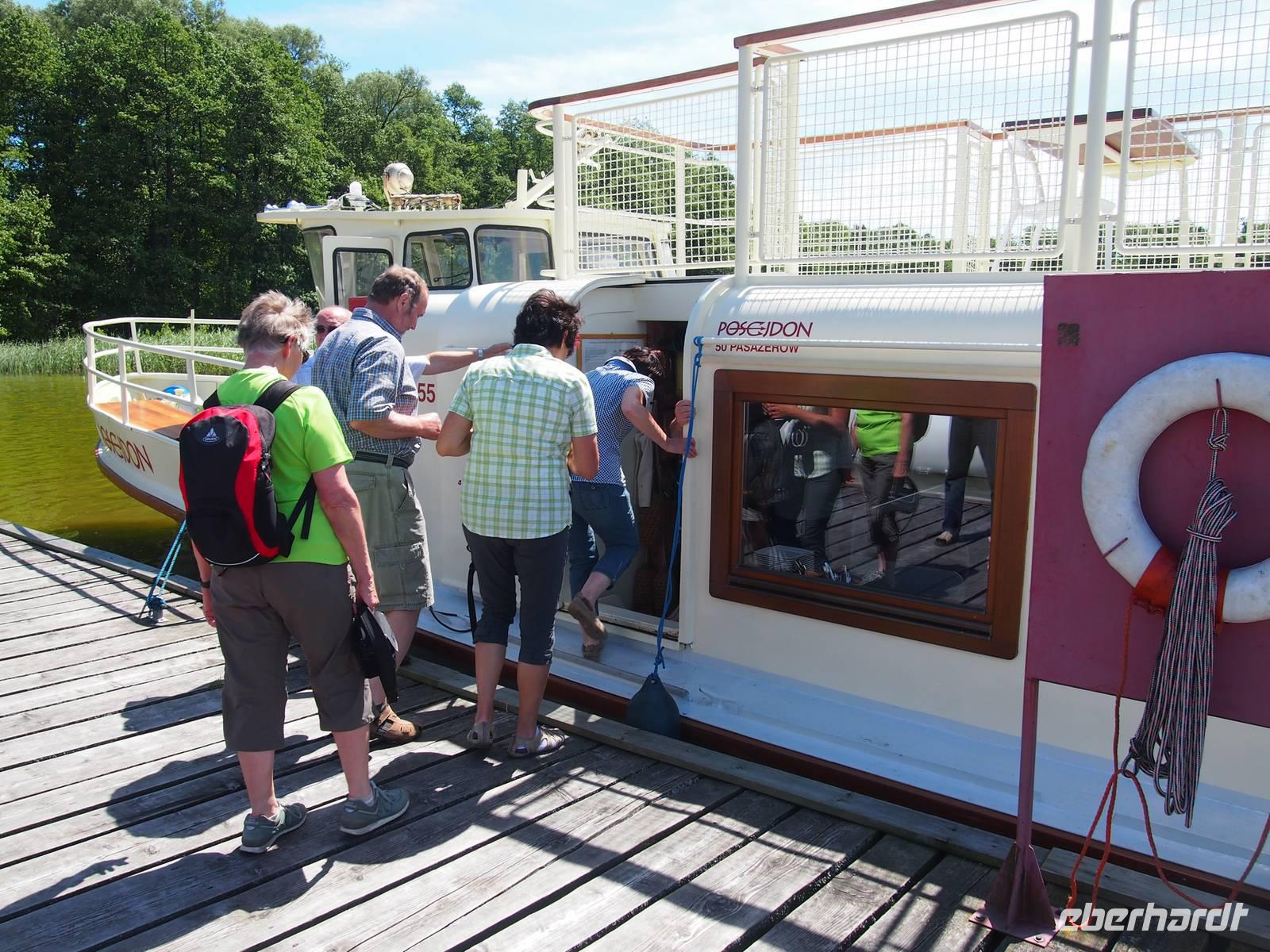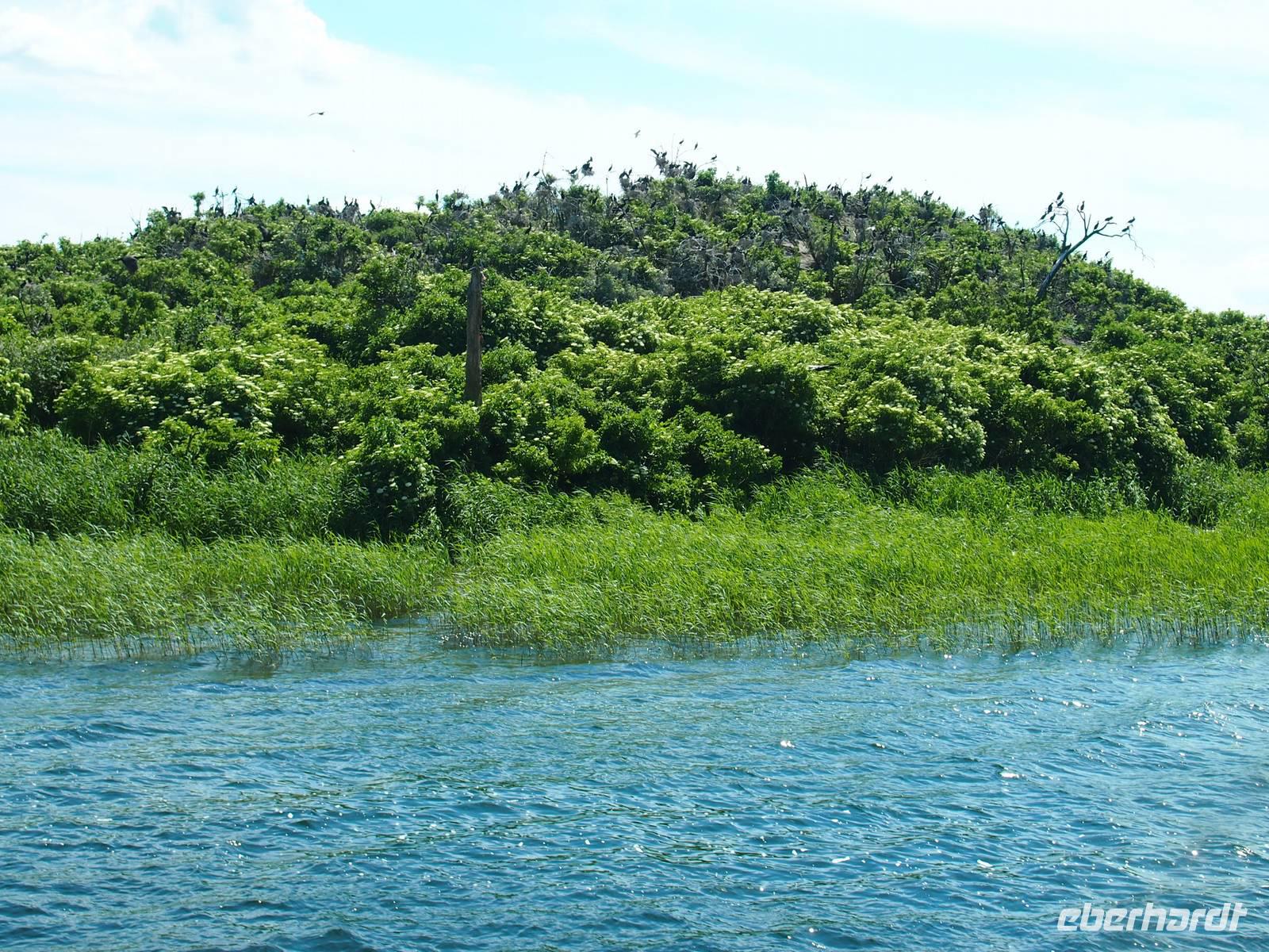 Anschließend folgte ein weiteres Highlight auf der Reise, die Schifffahrt nach Lötzen. Wir verteilten uns recht schnell auf dem extra für uns gecharterten Schiff. Einige bevorzugten das Deck, um etwas Sonne zu genießen, andere genossen unten den herrlichen Ausblick auf die Landschaft. Besonders beeindruckend war die Kormoraninsel.