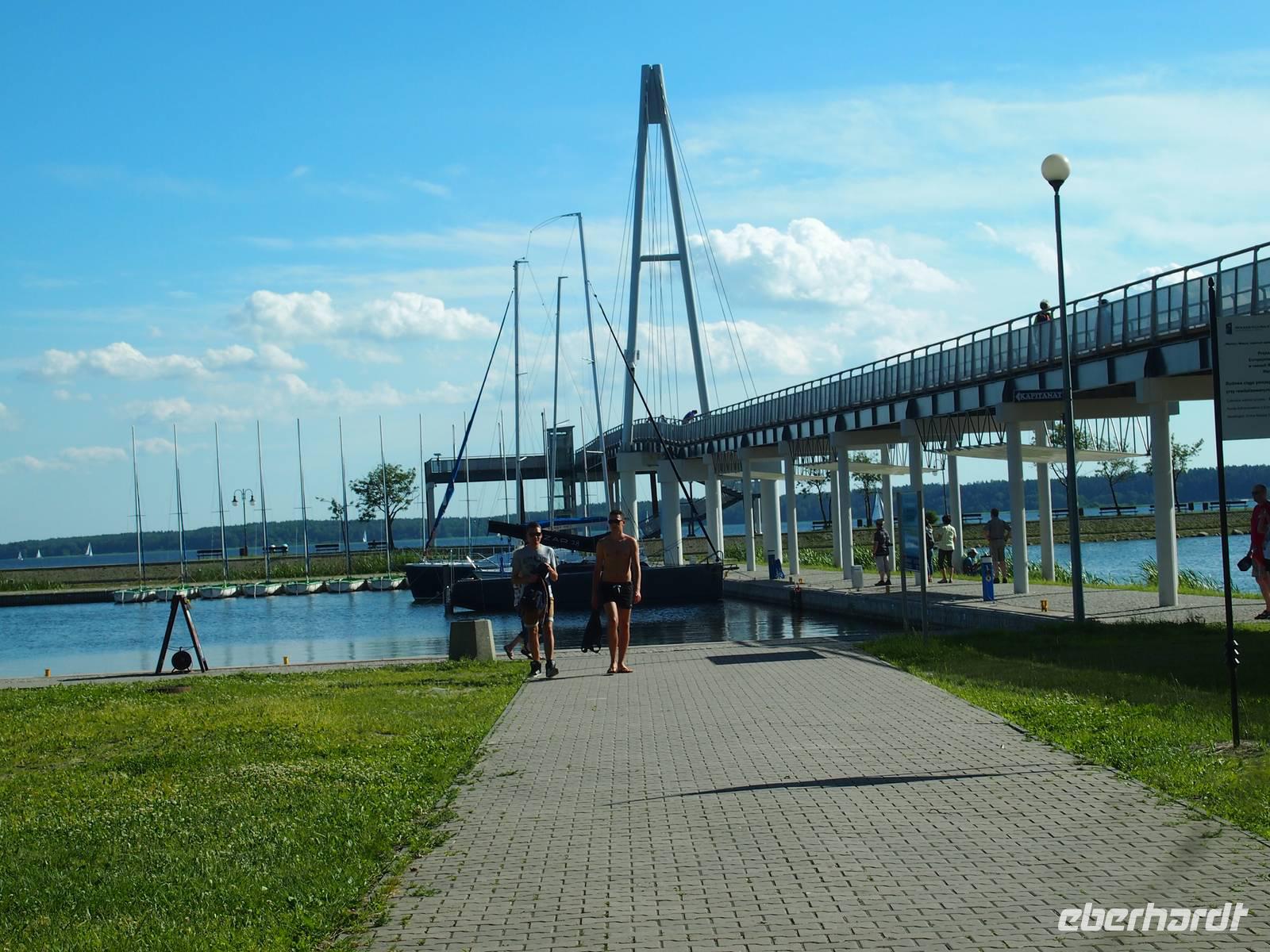 In der Zwischenzeit brutzelte schon der Zander in der Pfanne, wobei für die Nicht-Fischesser unserer Gruppe auch Fleisch angeboten wurde. Bedienen konnten wir uns an einem kleinen Buffet, an dem es zusätzlich noch Kartoffeln, Pfifferlinge, Salat und saure Gurken gab. In Lützen angekommen hatten wir noch etwas Zeit, um die kleine Hafenstadt zu erkunden. Bemerkenswert war vor allem die handbetriebene Drehbrücke. Viele von uns genossen ihre freie Zeit an der Promenade bei einem Eis. Nach dem kurzen Bummel ging es zurück zum Hotel. Nach dem Abendbrot nutzten einige die Zeit für einen kleinen Abendspaziergang. Andere packten schon ihren Koffer, denn es stand die letzte Nacht in Mrangowo an.