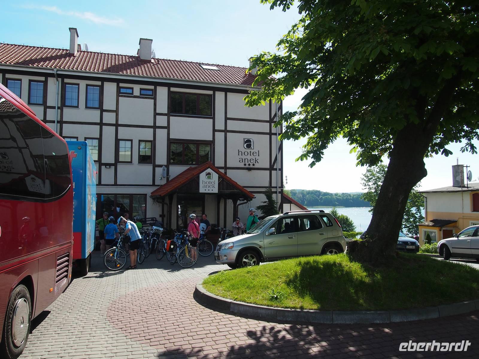 Die Lage des Hotels hat uns sehr beeindruckt, direkt am Czosee. Was kann es schöneres geben, um sich nach einer Fahrradtour zu erholen, als ein traumhafter Ausblick?! Die Zimmer waren schnell bezogen und so trafen wir uns anschließend im hauseigenem Restaurant, wo wir mit landestypischer Küche verwöhnt wurden. Nach dem Essen gingen viele von uns noch etwas am See spazieren, die anderen setzten sich gemütlich bei einem Glas Wein oder Bier gemeinsam auf die Terrasse.