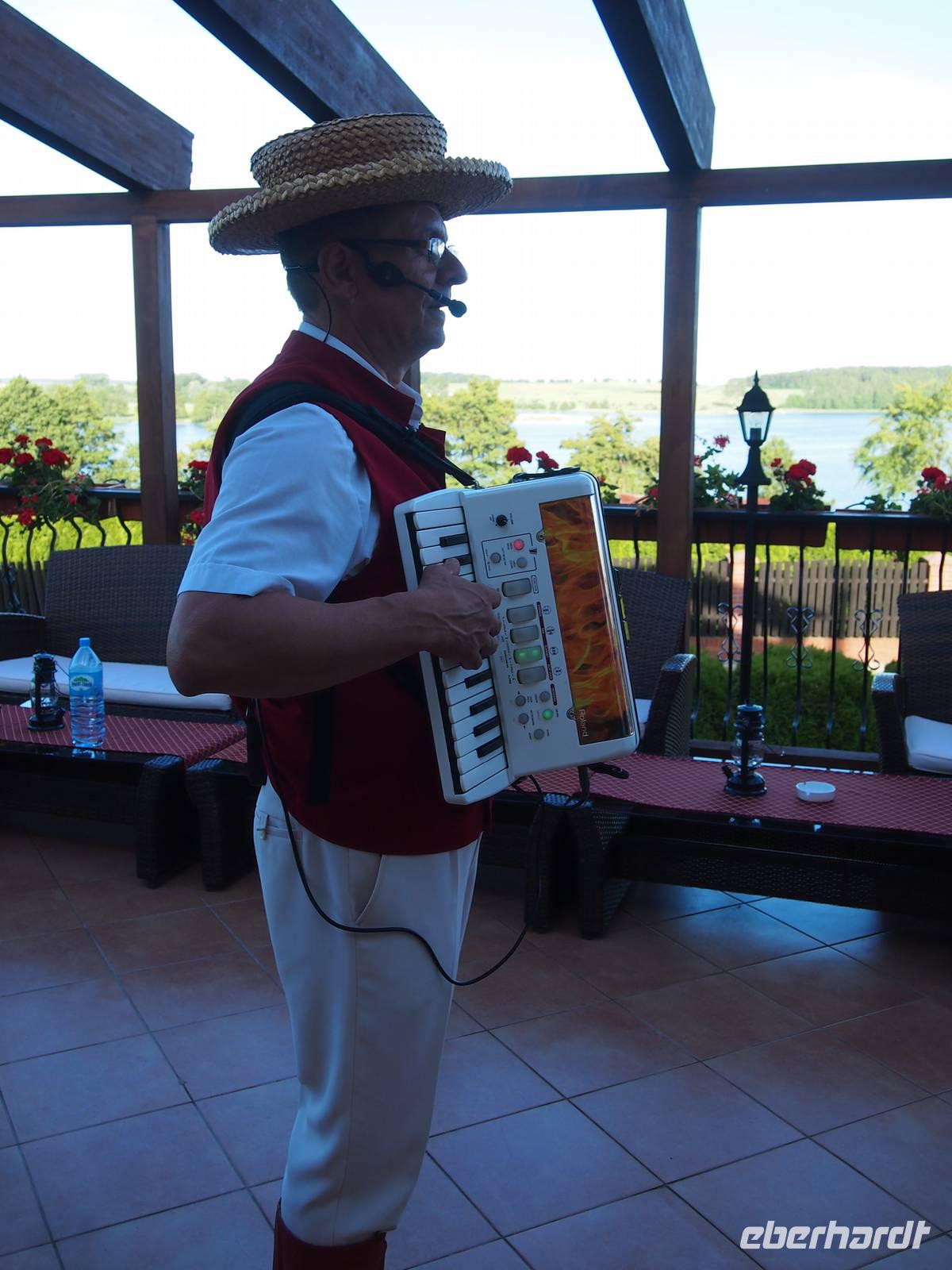 Ein Höhepunkt der Reise war der heutige Folkloreabend. An diesem Abend durfte so gut wie keiner von uns sitzen bleiben und wir haben zusammen gesungen und getanzt. Im Mittelpunkt stand heute vor allem unser masurischer Mann und Marielle, unsere masurische Frau. Für das leibliche wohl wurde auch gesorgt, es gab polnische Grillspezialitäten. Viele Gäste saßen noch lange bei dem ein oder anderen Glas Bier zusammen und ließen den schönen Tag gemeinsam auf der Terrasse ausklingen.