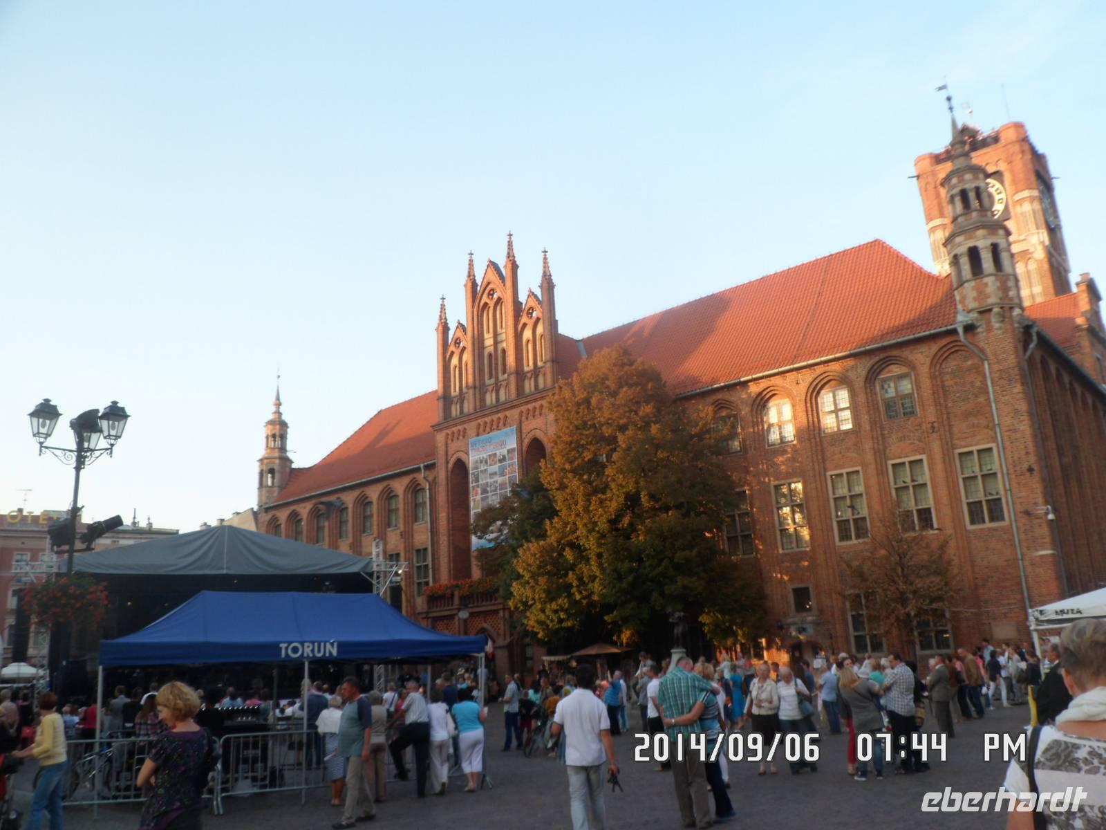 In Chemnitz, Röhrsdorf, starten wir 04.30 Uhr mit 9 Personen und 6 Rädern, 7 Leihräder waren schon im Hänger , nach Kesselsdorf zum Hotel "Quality". Dort nehmen wir 5 Gäste mit 3 Rädern auf. Weiter geht es zum Flughafen Dresden. 3 Gäste warten hier und 1 Rad. Nun fahren wir auf der A13 bis Lübbenau und nehmen 4 Gäste mit 2 Rädern auf . In Niederlehme wartet unser letzter Gast und wir nehmen die Fahrt bis Thorn( Torun) in Angriff. Geld tauschen wir ca 30km nach der Grenze und mit den vorgeschriebenen Pausen erreichen wir unser erstes Ziel 16.45 Uhr.Die Zimmerverteilung klappt problemlos . Ich treffe mich mit allen Gästen17.30 Uhr und wir laufen vom Hotel "Filmar" etwa 10 Min ind die Stadt.