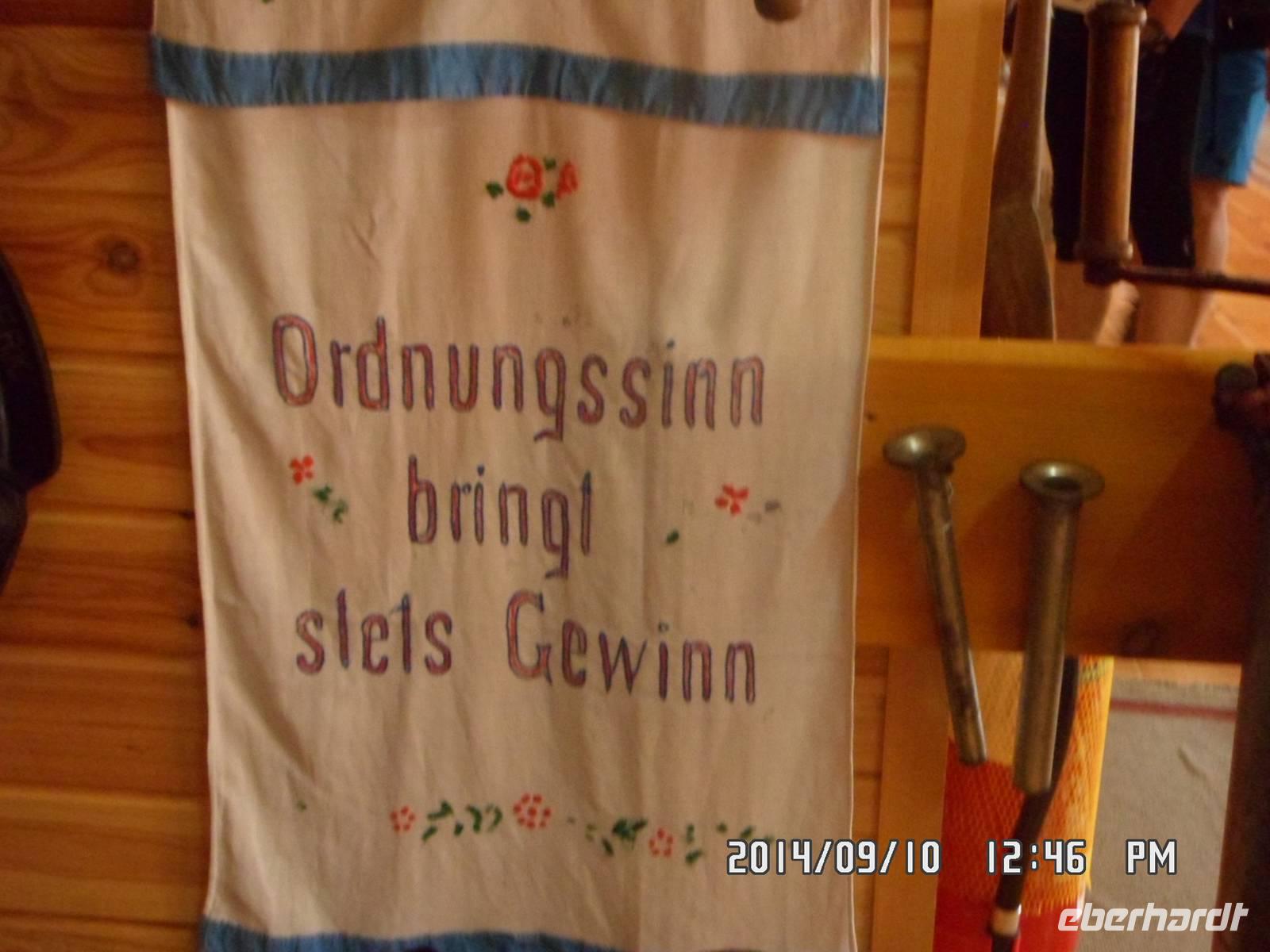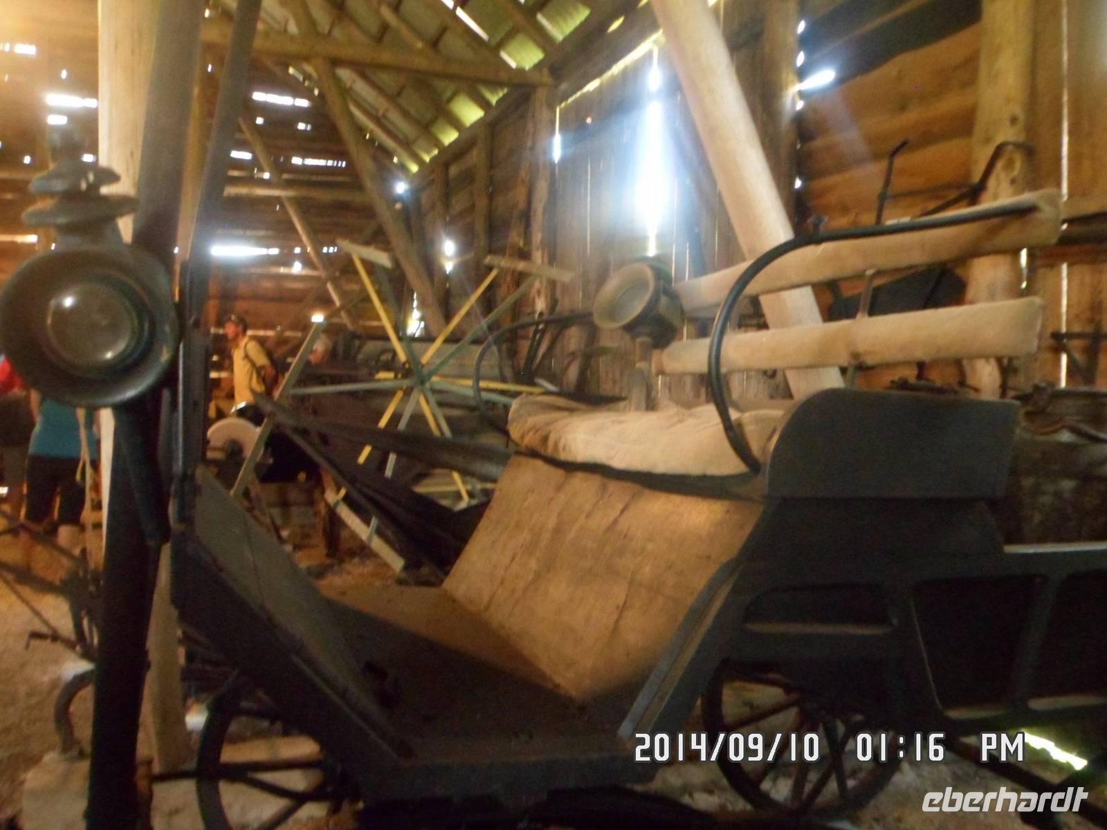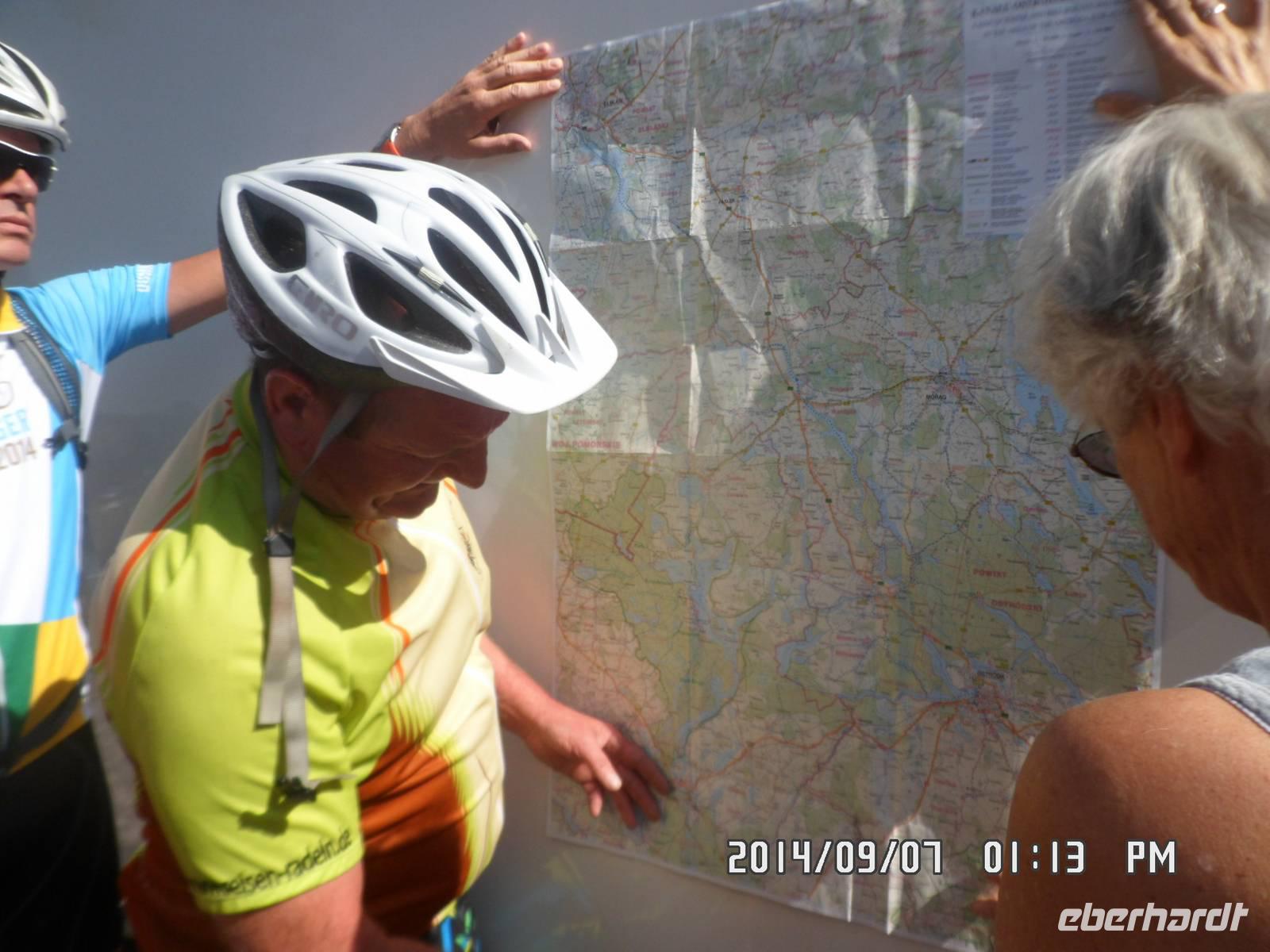 Ziemlich anstrengend ist die Fahrt, bergauf und ab. Aber Waldemar hat die Strecke gut gewählt und durch Wälder und Wiesen kommen wir ca 25km gut an. Es ist sehr warm und schwül. Wir besichtigen die verschiedenen Räume und hören interessiert der Inhaberin Christel zu, die uns ihre Geschichte erzählt.