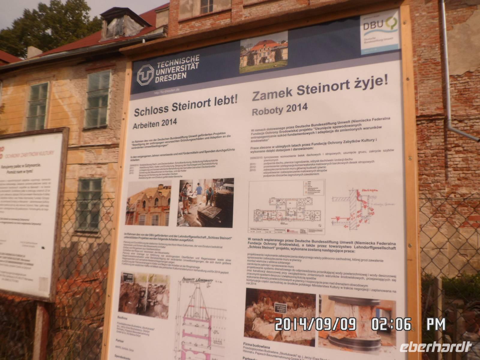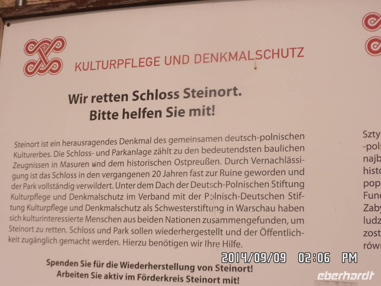 Waldemar und Frank hatten inzwischen die Räder ausgeladen und nach einer kurzen Pause radelten wir entlang des Doben-Sees nach Steinort. Am Herrenhaus des Grafen Lehndorff machten wir Halt und Waldemar erzählte uns die Familiengeschichte .