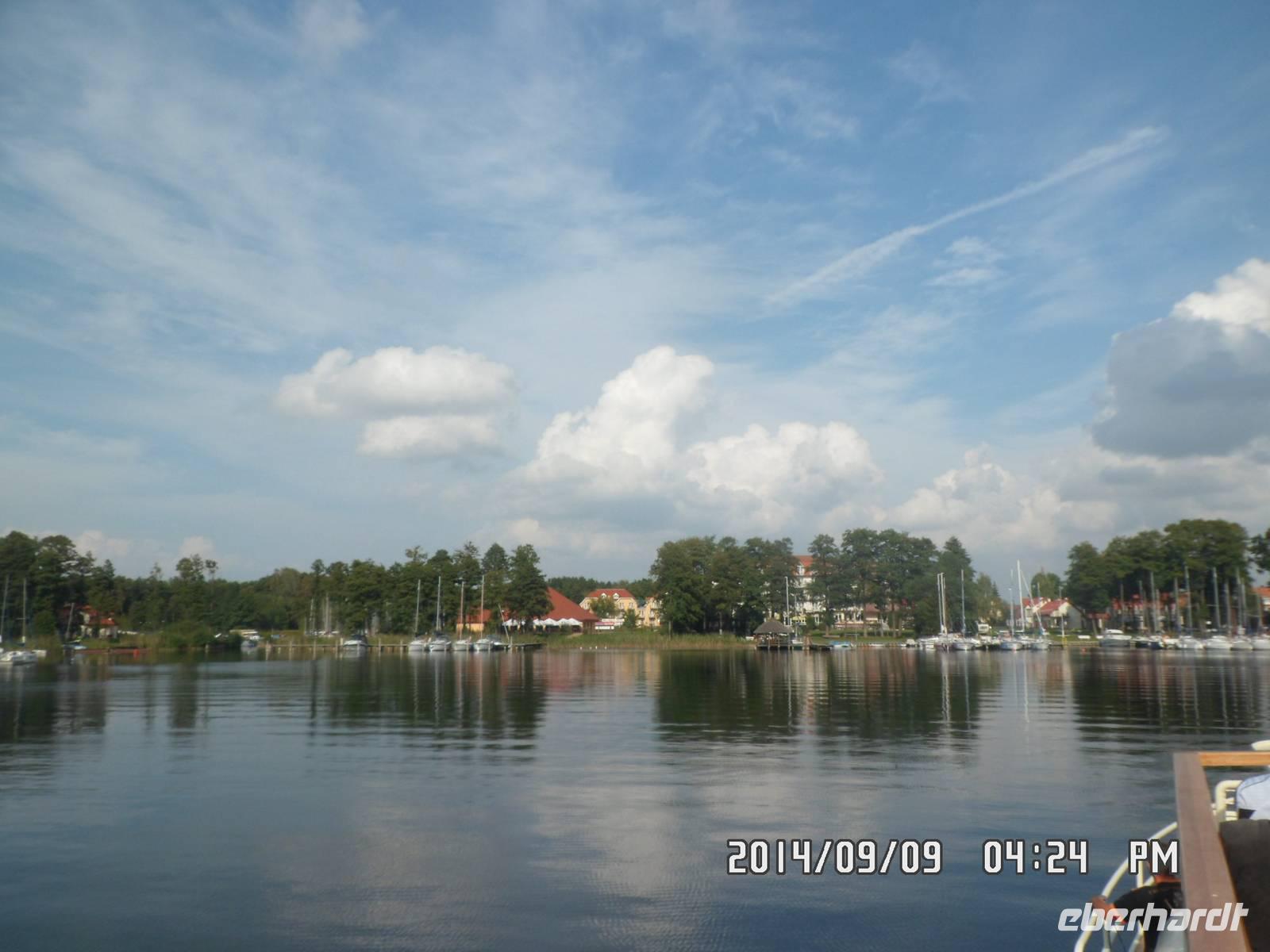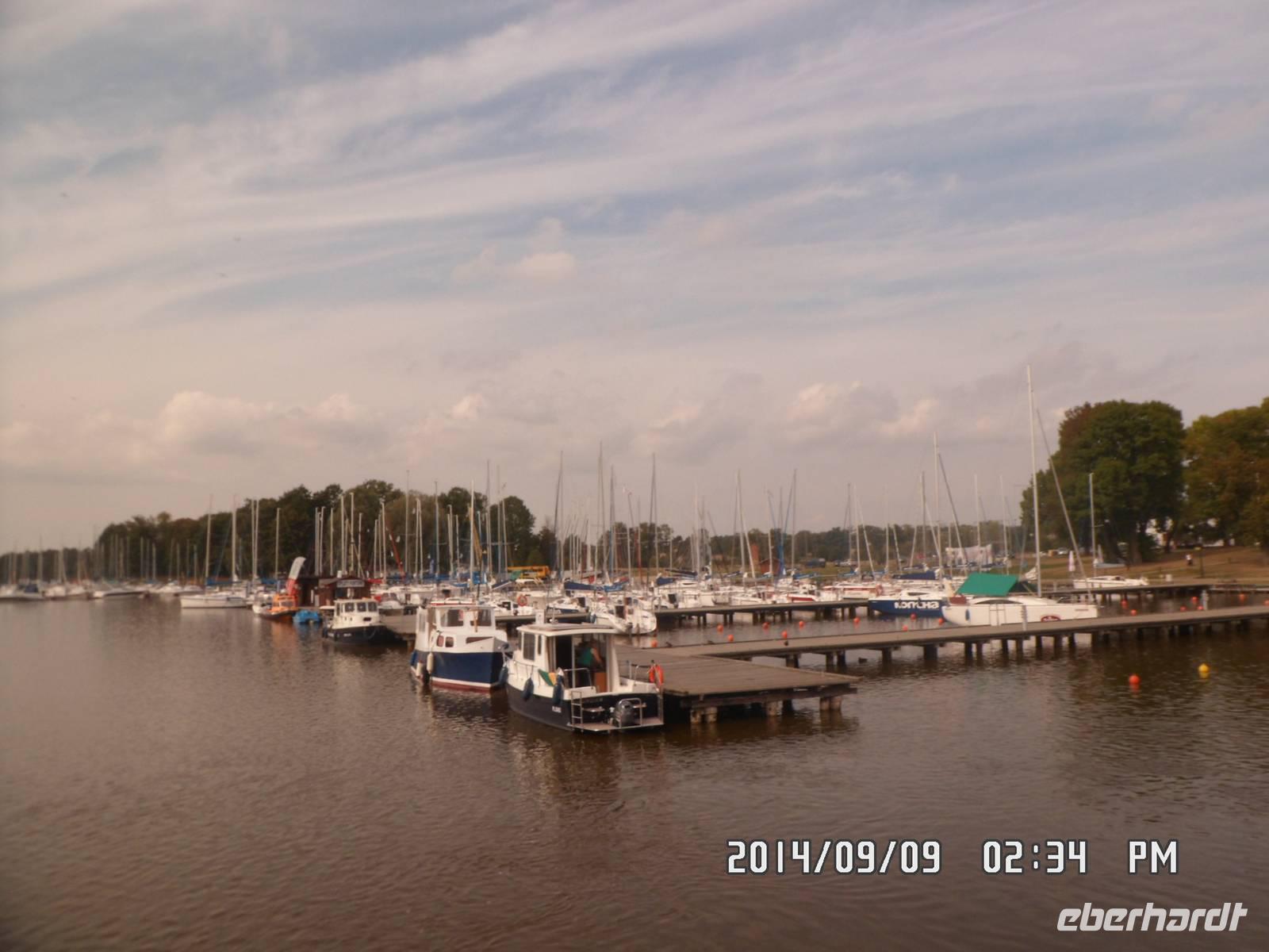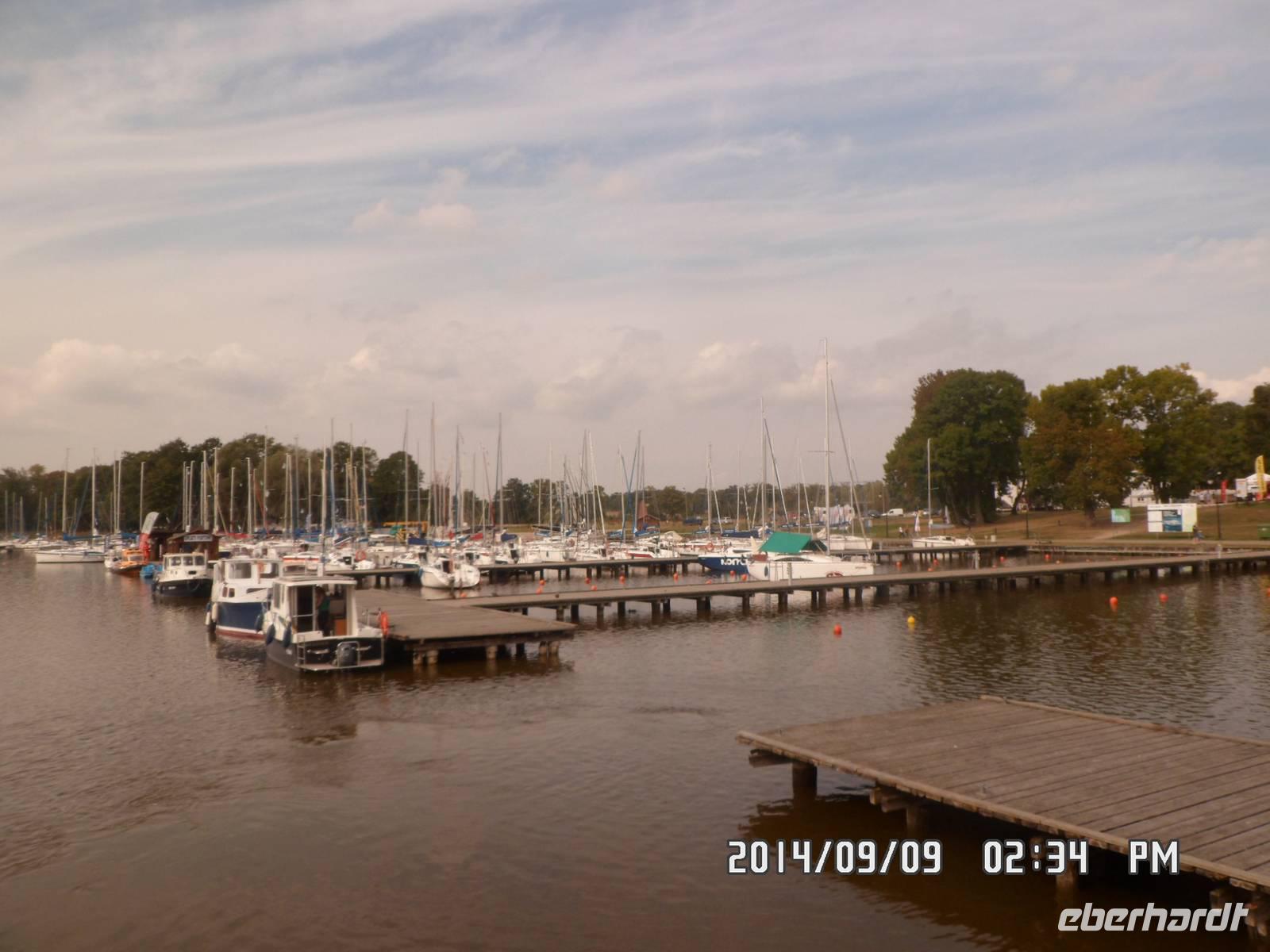 Nun verluden wir die Räder und bestiegen am schönen Hafen unser Schiff das uns nach Lötzen, der "Hauptstadt" der Masuren brachte. Bei Sonnenschein und sehr gutem Fischmittagessen , vorbei an der kahlen Komoraninsel glitten wir gemächlich über den glitzernden See wo auch Segelboote mit weißen Seegeln das Auge erfreute. In Lötzen wanderten wir bis zur Drehbrücke und schauten 16.00 Uhr dem Prozedere zu. Dann ließen wir uns noch ein Eis schmecken bevor es auf die Heimreise nach Mragono ging. Ein traumhafter Tag.