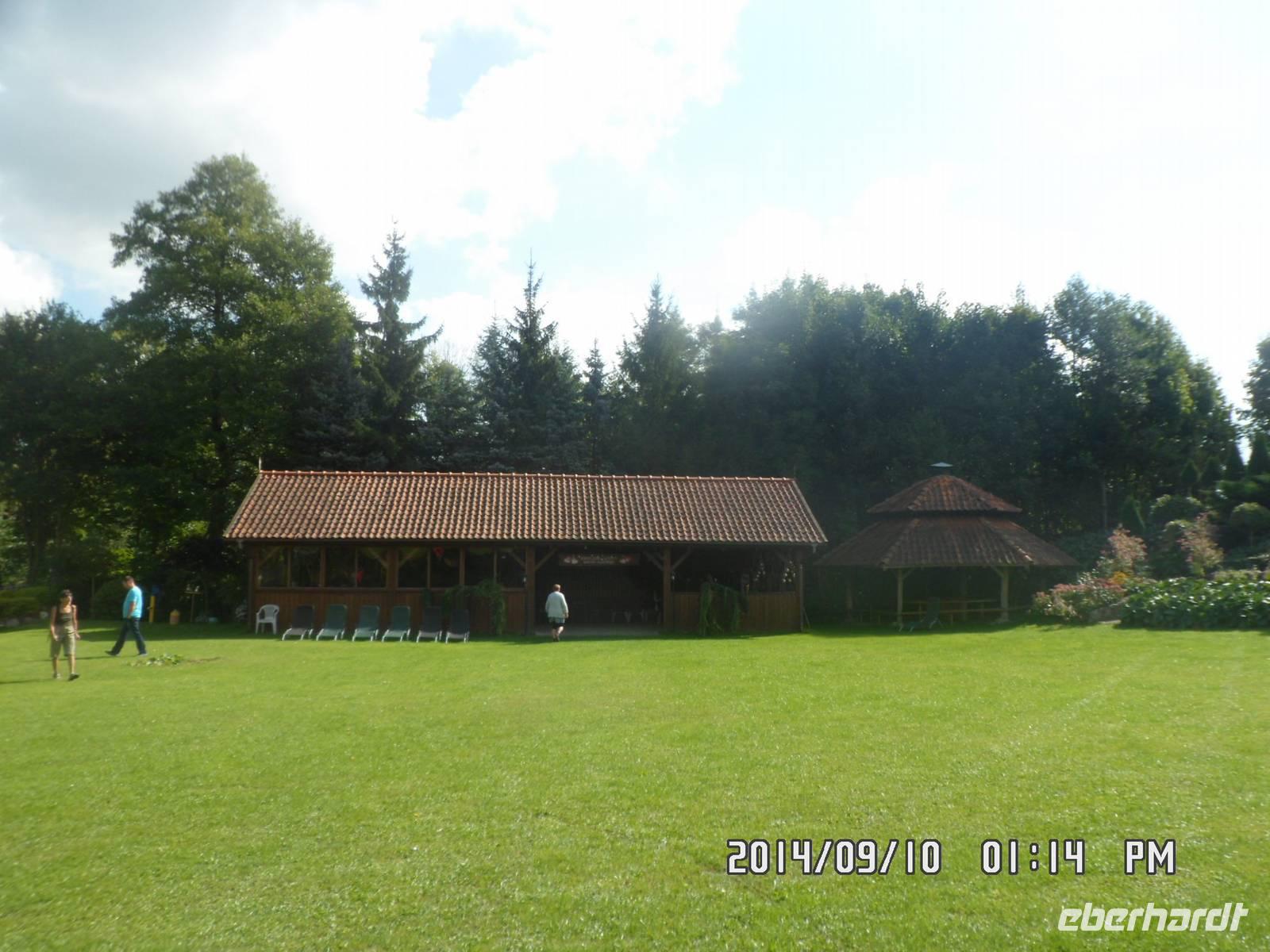 Schon 18.30 Uhr beginnt unser masurischer Abend an der Grillhütte des Hotels und pünktlich 19.00 Uhr beginnt es zu schütten. Aber bei Folkloremusik, Gesang, Tanz und Spiel macht uns das überhaupt nichts aus. Wir essen die gegrillten Speisen und Zutaten mit Genuß und tanzen die Kalorien weg, toller Abend.....