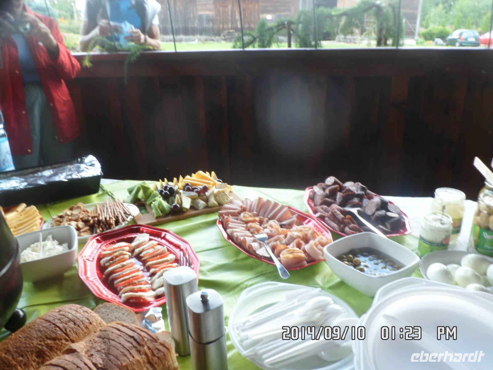 Hier nehmen wir ein wunderbares Picknick ein das uns Eberhardt spendiert. Leider ist es so reichlich aber sooo lecker das wir noch nicht wissen wie wir wieder auf die Räder kommen. Naja.... es geht. Am wunderschönen Nikolaiken, dem Venedig der Masuren kommen wir nur vorbei und radeln zum Hotel "Mazurski Dworek" etwa 5km von der Stadt entfernt. Hier werden die Räder in den Hänger geladen und wir checken ein. Wieder nur ein paar Schritte vom Talter- See entfernt. Einige gehen baden, einige fahren mit Taxi oder Rad in die Stadt. Abendessen gibt es 19.00Uhr, Menü , sehr reichlich und wieder seeeeeehr gut.