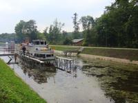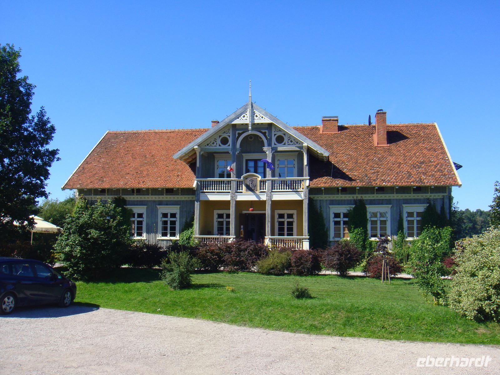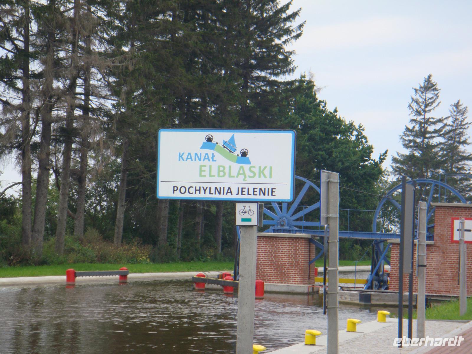 Auch heute geht es wieder früh aus den Federn. Nach dem Frühstück brechen wir in Richtung Osterode auf. Wie verabredet steigt dort unser Reiseleiter Sigi zu. Nur kurze Zeit später sitzen wir auch schon auf unseren Rädern und genießen die frische Luft. Vorbei an Maisfeldern und Wiesen treffen wir am Oberländer Kanal ein. Die Räder gut geparkt, können wir das „Verschiffen" der Touristenboote beobachten. Die Besonderheit des Verschiffens besteht darin, die Wasserverbindung nicht durch Wehre abzusenken sondern die Boote auf Landschienen komplett aus dem Wasser zu heben und diese in das nächste Gewässer zu ziehen. Wir sind begeistert von dieser Technik. Wir setzten unsere Radtour entlang des Kanals fort. Am Ende begrüßt uns Frank und wir verladen die Räder. Wir stärken uns bei einem kleinen Imbiss von der Bordküche und fahren nach Mragawo (Sensburg) zu unserem nächsten Hotel.