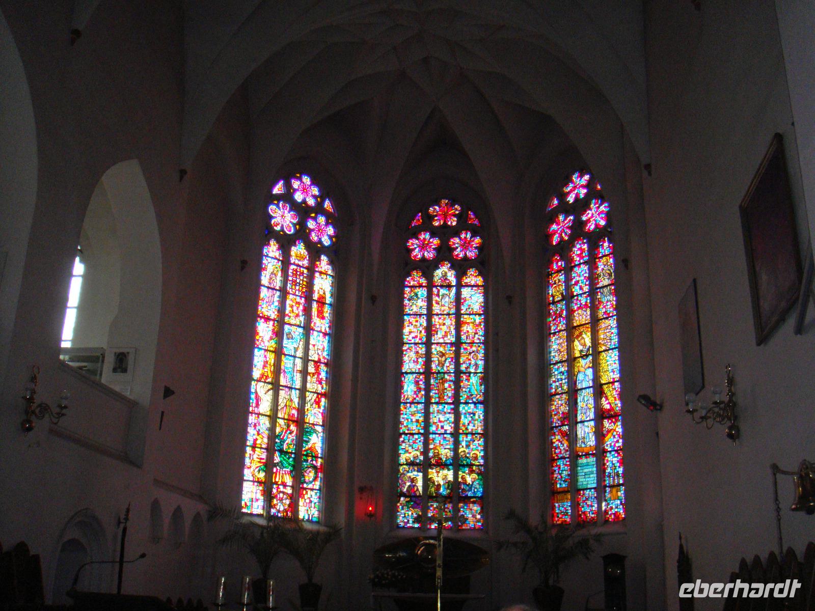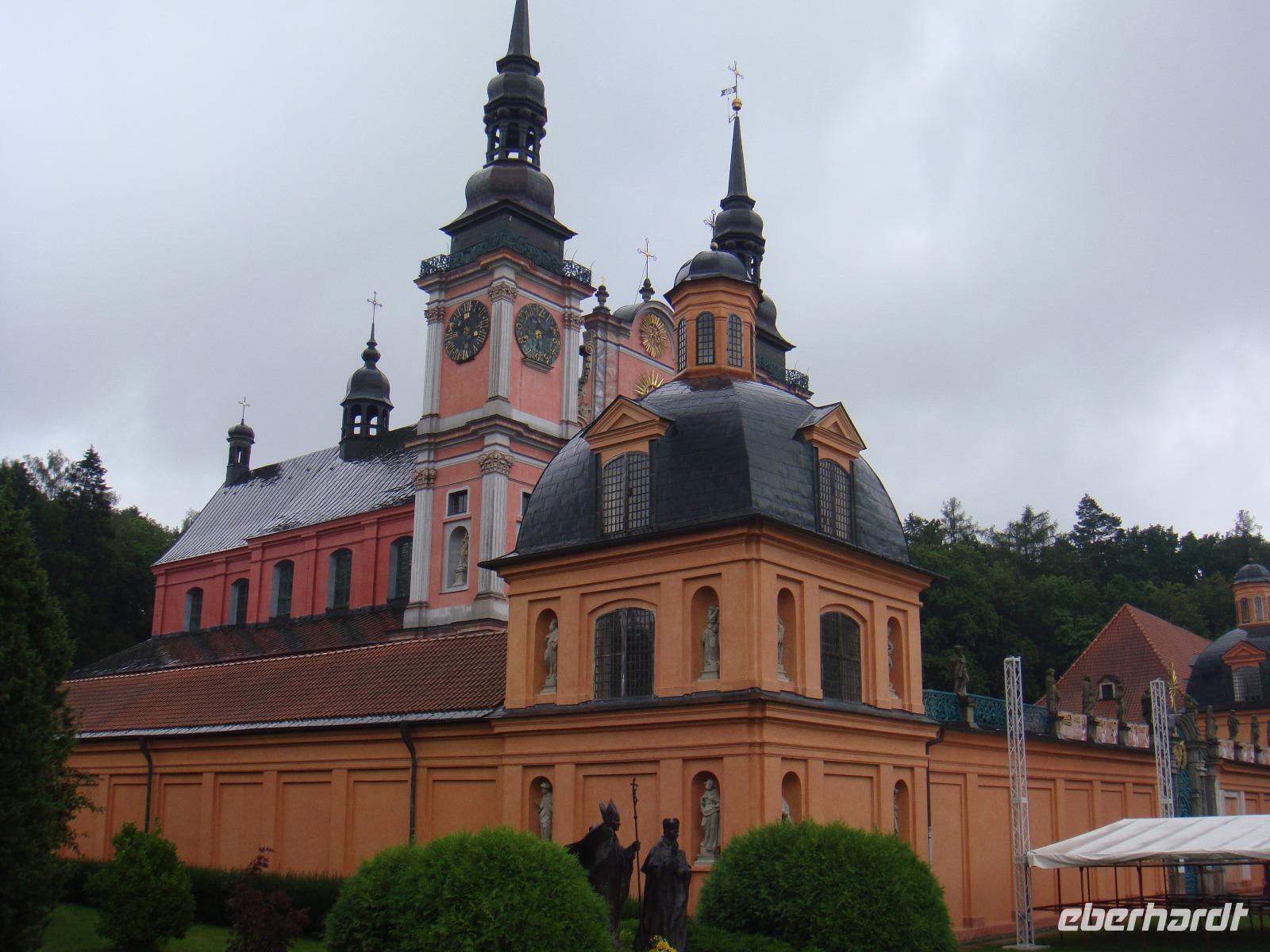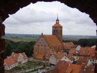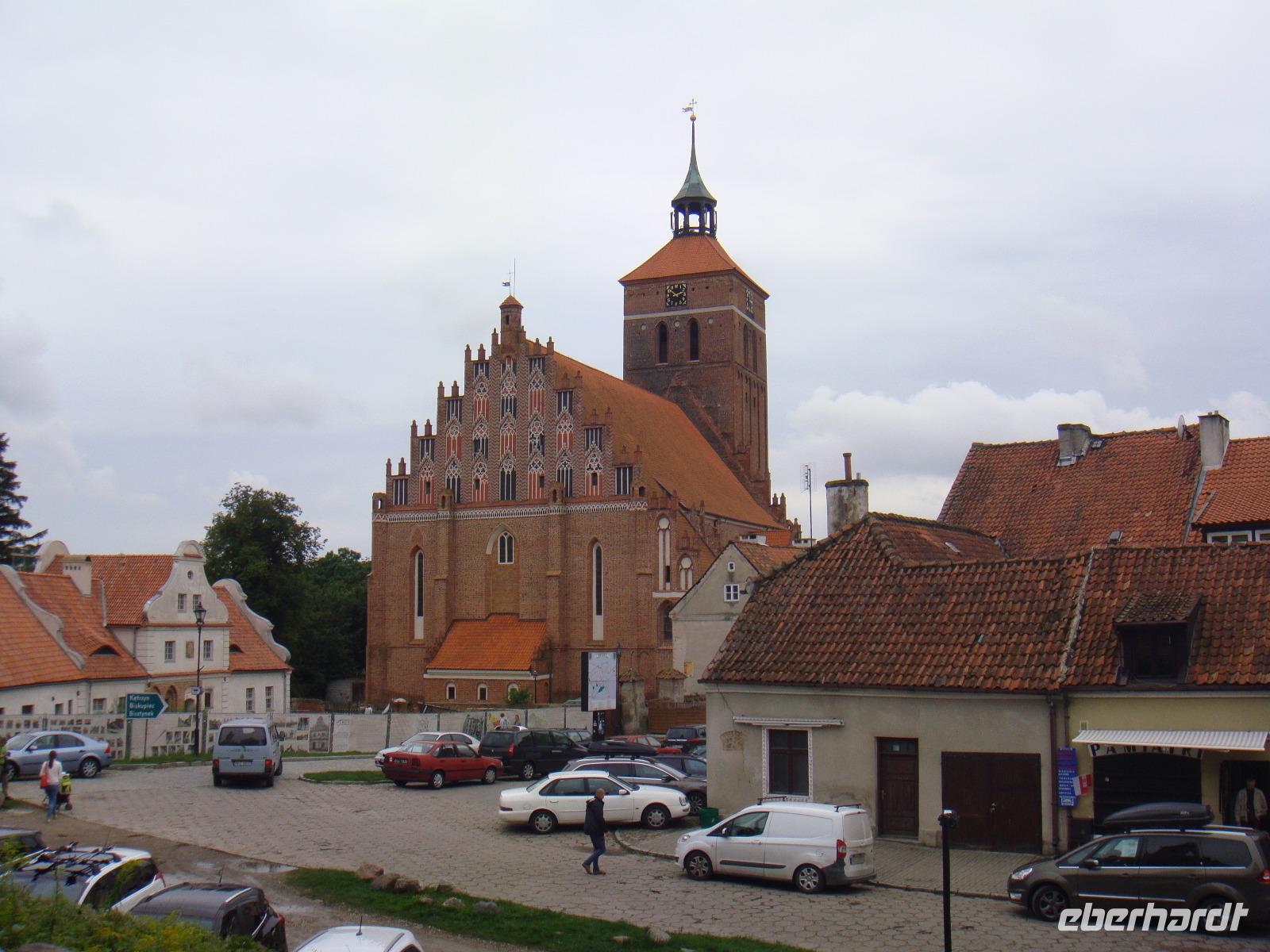 Heute hält der Wetterbericht was er verspricht. Die Sonne schläft aus und lässt dafür die Wolken raus. Bei starkem Regen fahren wir mit Sigi nach Rastenburg und besichtigen die St. Georgskirche. Sigi erzählt uns Wissenswertes über die zwischen 1359 und 1370 entstandene Kirche. Von der Spitze des Turmes haben wir einen schönen Blick über die Stadt. Der Regen will einfach nicht aufhören uns so fahren wir weiter nach „Heiligen Linde"(Swieta Lipka). Kaum haben wir den Wallfahrtsort erreicht hört es auf zu regnen und unsere Hoffnung doch noch auf unsere Räder steigen zu können, steigt. Vor der Mittagspause schlendern wir ein wenig herum bevor wir uns für die Besichtigung stärken.