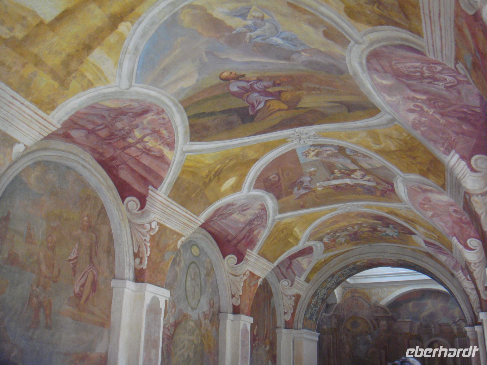 Die aus dem 16.Jahrhundert stammende Barock-Kirche beindruckt uns mit ihrer prunkvollen Art. Wir spazieren über den Kreuzgang zum Inneren der Kirche um später dem Orgelkonzert Gehör zu leisten.