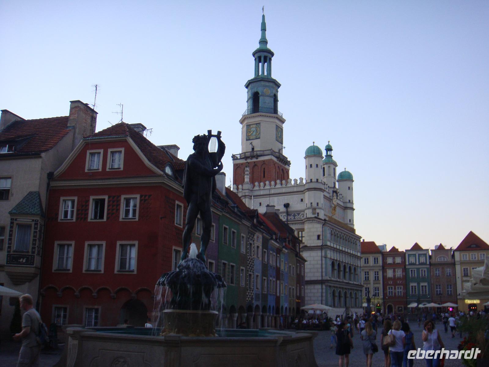 Nach der 3. Pause erreichen wir Poznan am späten Nachmittag. Das Abendessen nehmen wir schon etwas eher zu uns. Anschließend geht es gemeinsam mit der Straßenbahn in die Altstadt. Schon in 10 Minuten sind wir da. Es ist mit 27 Grad immer noch sehr warm und wir freuen uns über diesen wunderbaren Sommerabend bei herrlicher Kulisse.