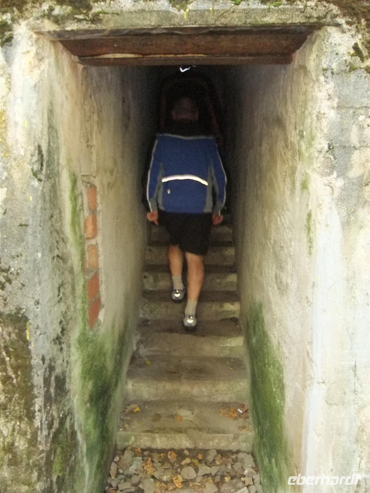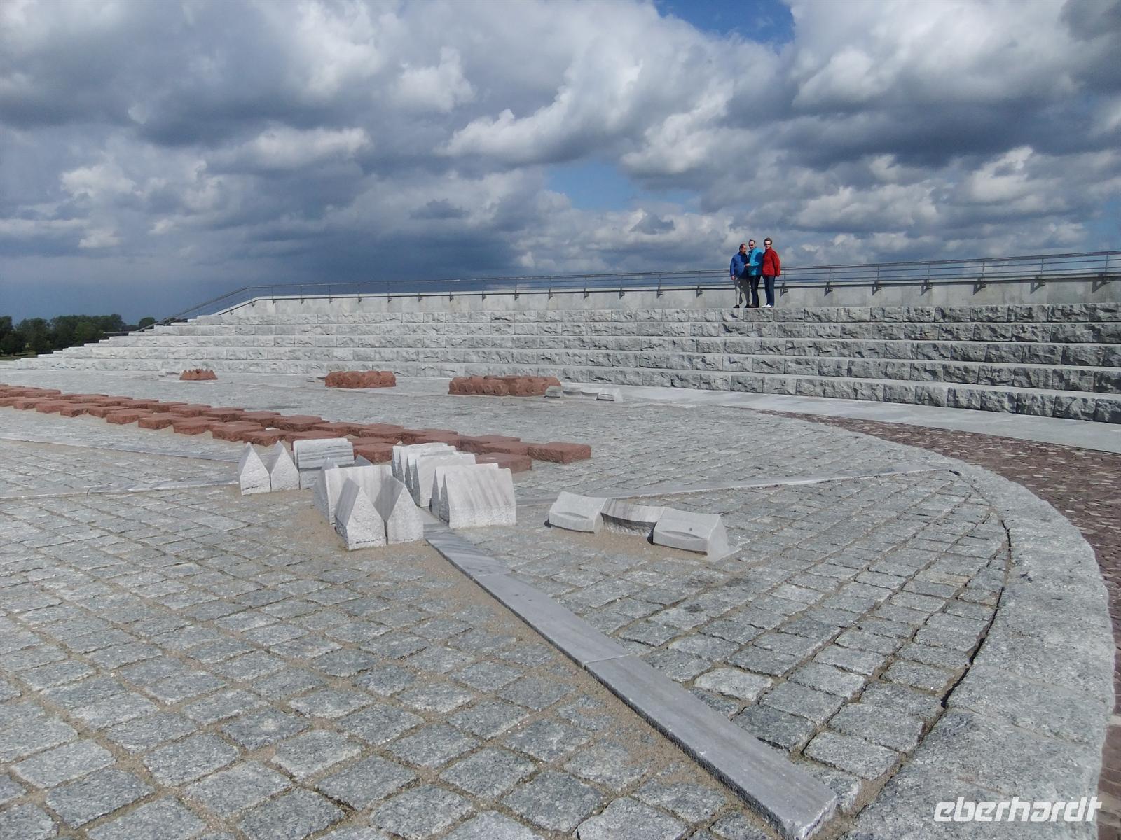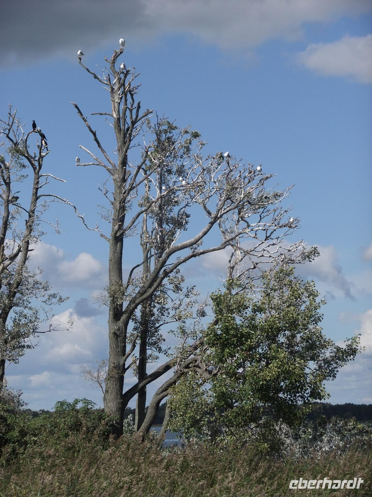 Am nächsten Tag fuhren wir mit dem Bus zunächst zur Wolfsschanze. Dort erwartete uns ein örtlicher Führer und erklärte uns alles Wissenswerte zum Hauptversteck Hitlers. Die angekündigten Mücken verkrochen sich vor lauter Kälte und so konnten wir ohne viel Geklatsche auf den Spuren geschichtsträchtiger Personen wandeln. Nach einer interessanten Führung starteten wir unsere heutige Etappe mit dem Rad. Wieder entlang von allerlei sandigen Wegen, aber auch Asphaltstraßen radelten wir heute ca. 21 km bis nach Steinort. Während Ingo (unser Busfahrer und ich) unsere Räder einluden, erläuterte Gosia zunächst den dortigen Herrensitz, bevor wir kurze Zeit später unser für heute gemietetes Boot/Schiff enterten. Wir schipperten dann ca. 2 Stunden auf dem Doben-See vorbei an der Komoraneninsel und genossen neben der herrlichen Sonne auch den leckeren Zander als Mittag. Gut gestärkt, unter anderem auch mit leckeren Kruppnik/Bärenfang, landeten wir in Lötzen. Unser Bus holte uns ab und chauffierte uns direkt in das Zentrum. Hier hatten wir noch ein wenig Freizeit zum Bummeln, bevor es zurück ins Hotel Anek nach Sensburg ging.
