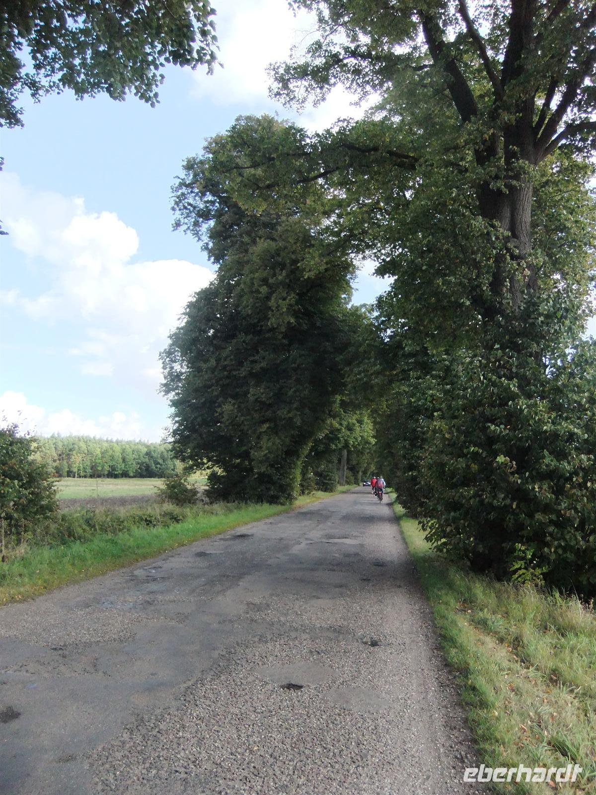 Anschließend ging es zügig weiter. Ca. 5 km vor dem Ziel hatte ein Gast eine Reifenpanne, an einer sehr stark befahrenen Straße - wohl gemerkt unsere einzige! So beschlossen Gosia und ich, das der Ungklückliche, ein weiterer Gast und ich das Rad reparieren und die restliche Gruppe wie gewohnt weiter fährt. Mit nur wenigen Handgriffen war das Problem gelöst und im Eiltempo radelten wir die 5 km zum Ziel - Krutinnen. Dort wartete schon der Bus auf uns. Während Ingo und ich die Räder einluden, ließ sich die Gruppe das Mittagessen schmecken - leckere Eierkuchen mit Heidelbeeren und Quark.