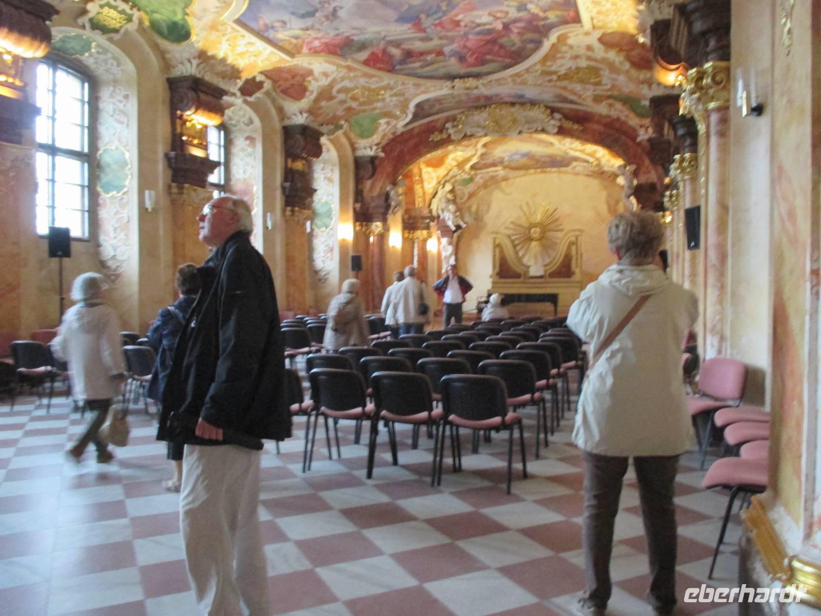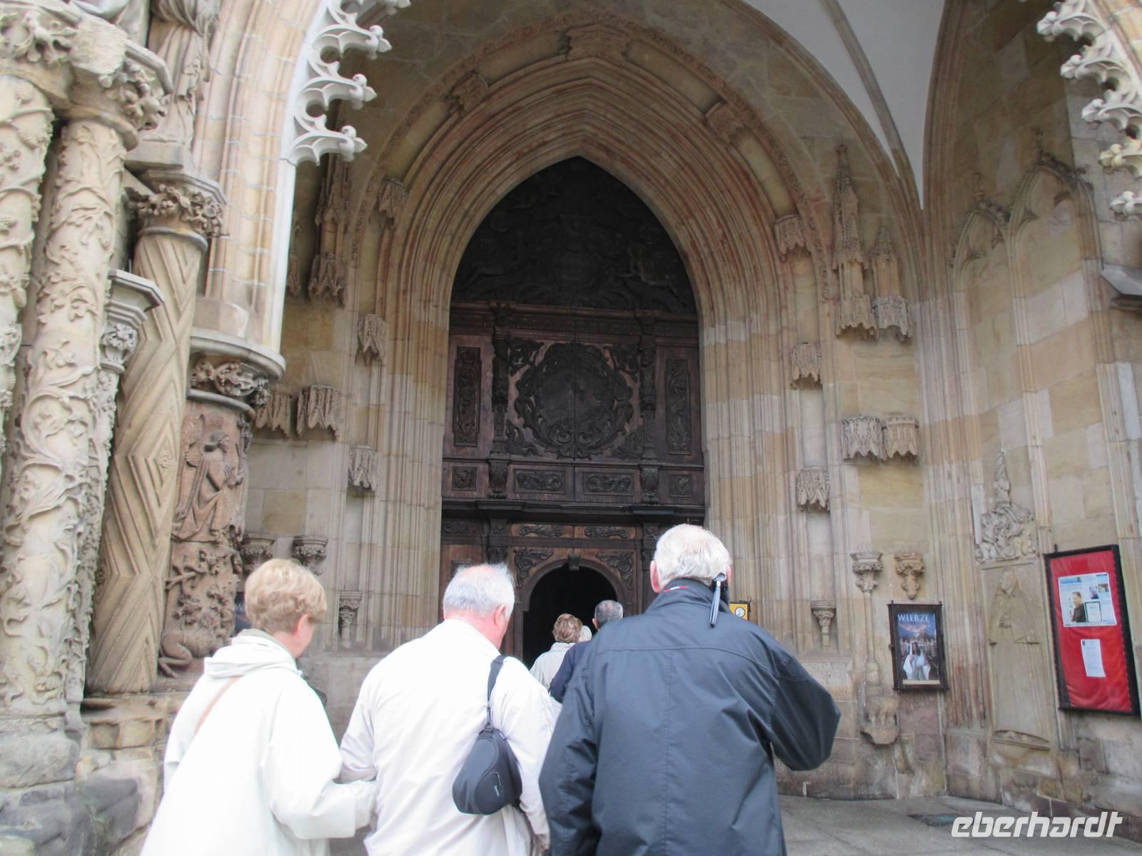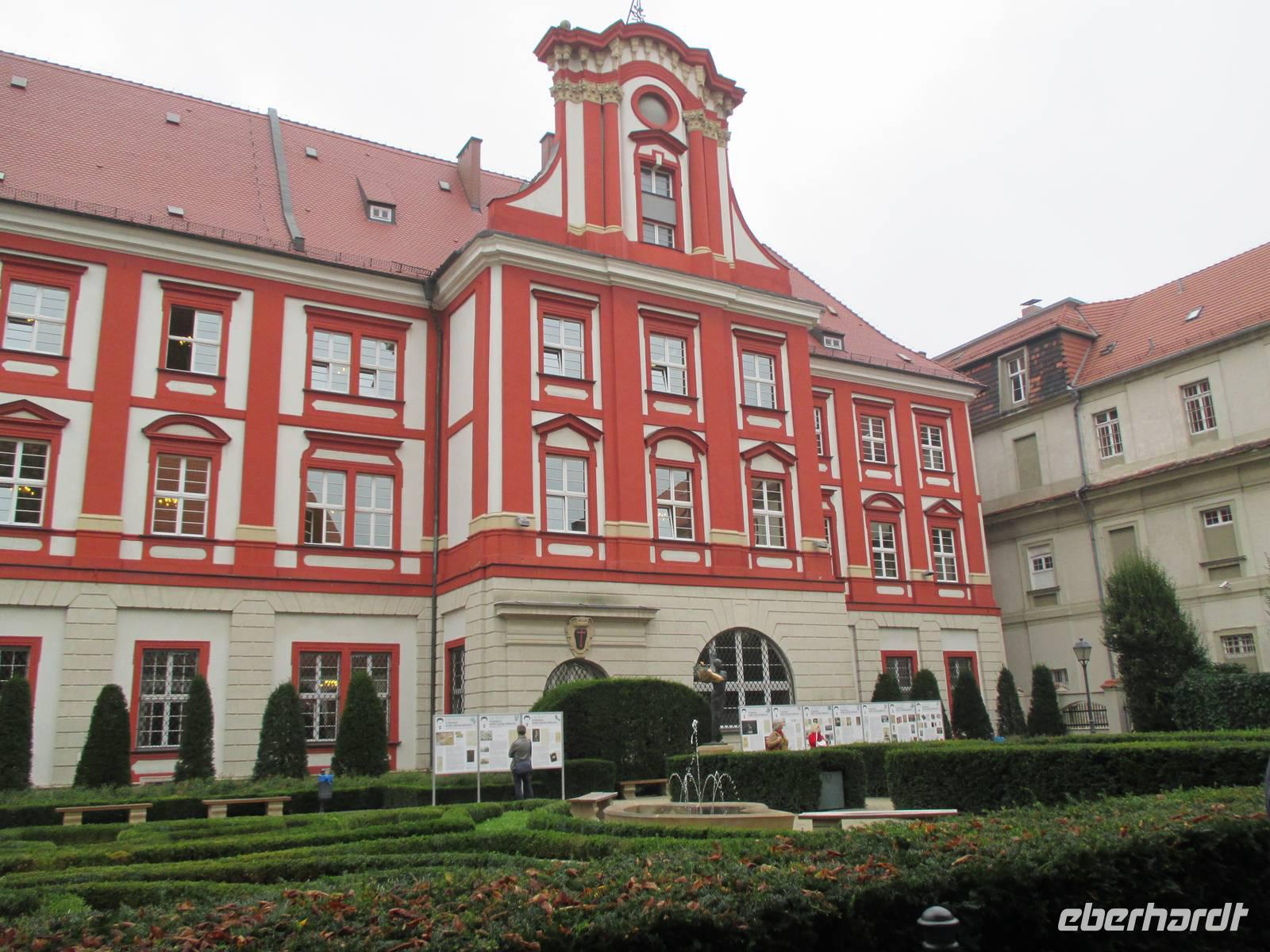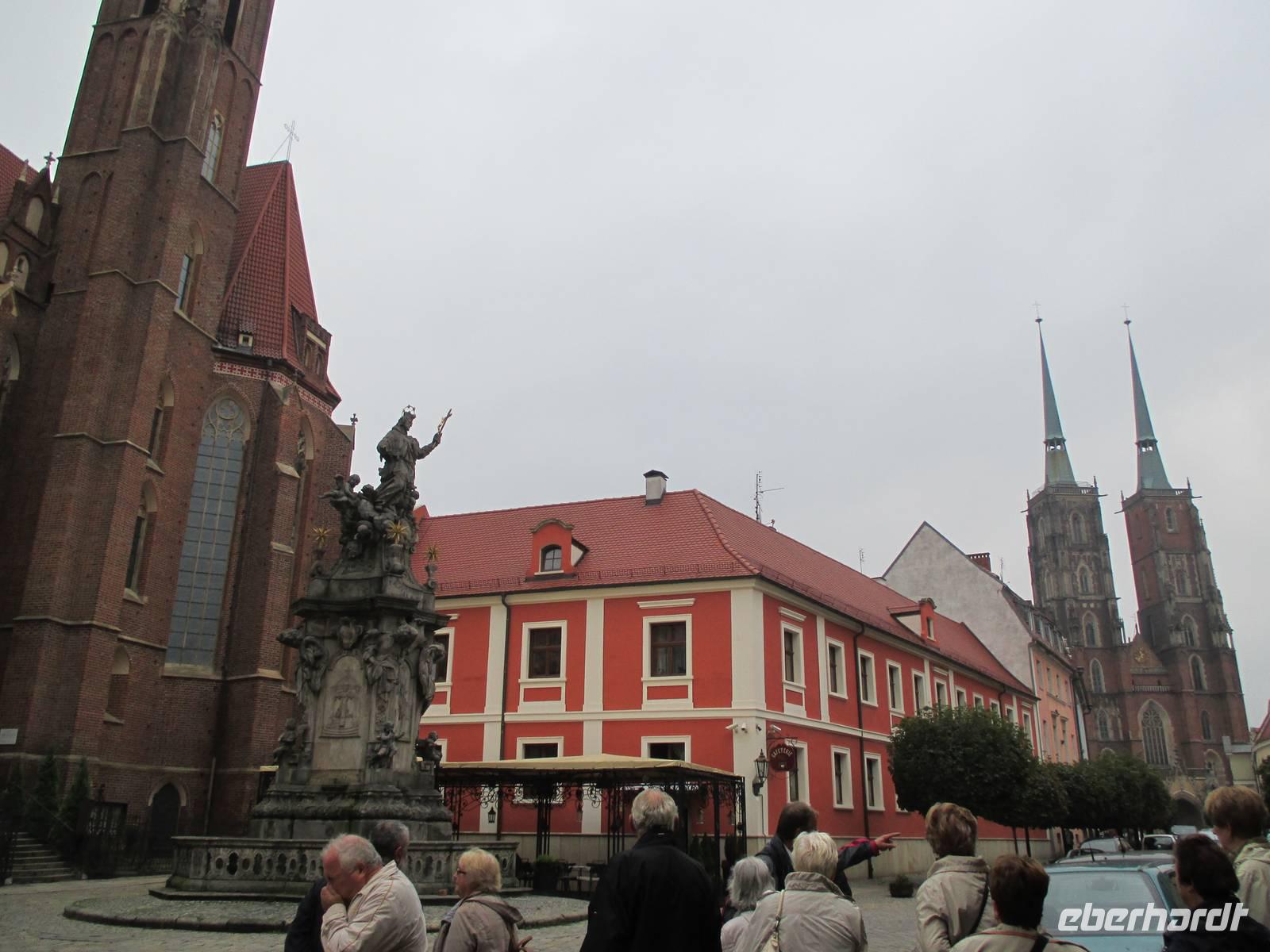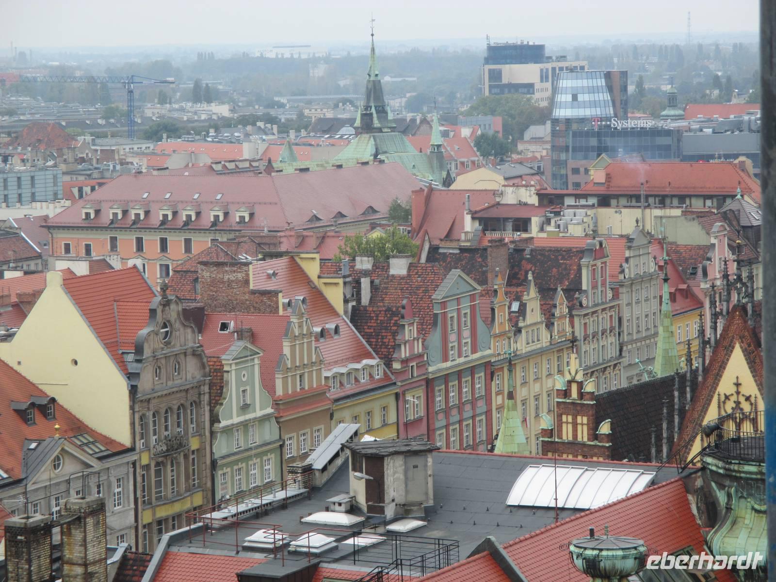 Um 9:00 Uhr begann der Stadtrundgang mit dem einheimischen Reiseführer Krystof, der viel zur Geschichte und zur Architektur der Stadt erzählen konnte. Die Elisabethkirche direkt am Hotel war die erste Station. Anschließend spazierten wir über den Ring, den Rynek, mit seinen liebevoll wieder aufgebauten oder restaurierten Bürgerhäusern, in denen heute Kneipen und Restaurants in Hülle und Fülle untergebracht sind. Krystof zeigte uns die 2 Rathäuser und den Eingang zum Schweidnitzer Keller, eine der ältesten Gaststätten in ganz Europa. Der Weg führte zur Universität, in der besonders die Aula mit ihrer barocken Ausstattung überrascht hat. Hier konnten wir auch die ersten Zwerge entdecken, Symbole für die Beteiligung der Breslauer Bürger und Studenten an der Solidarnosc-Bewegung.
