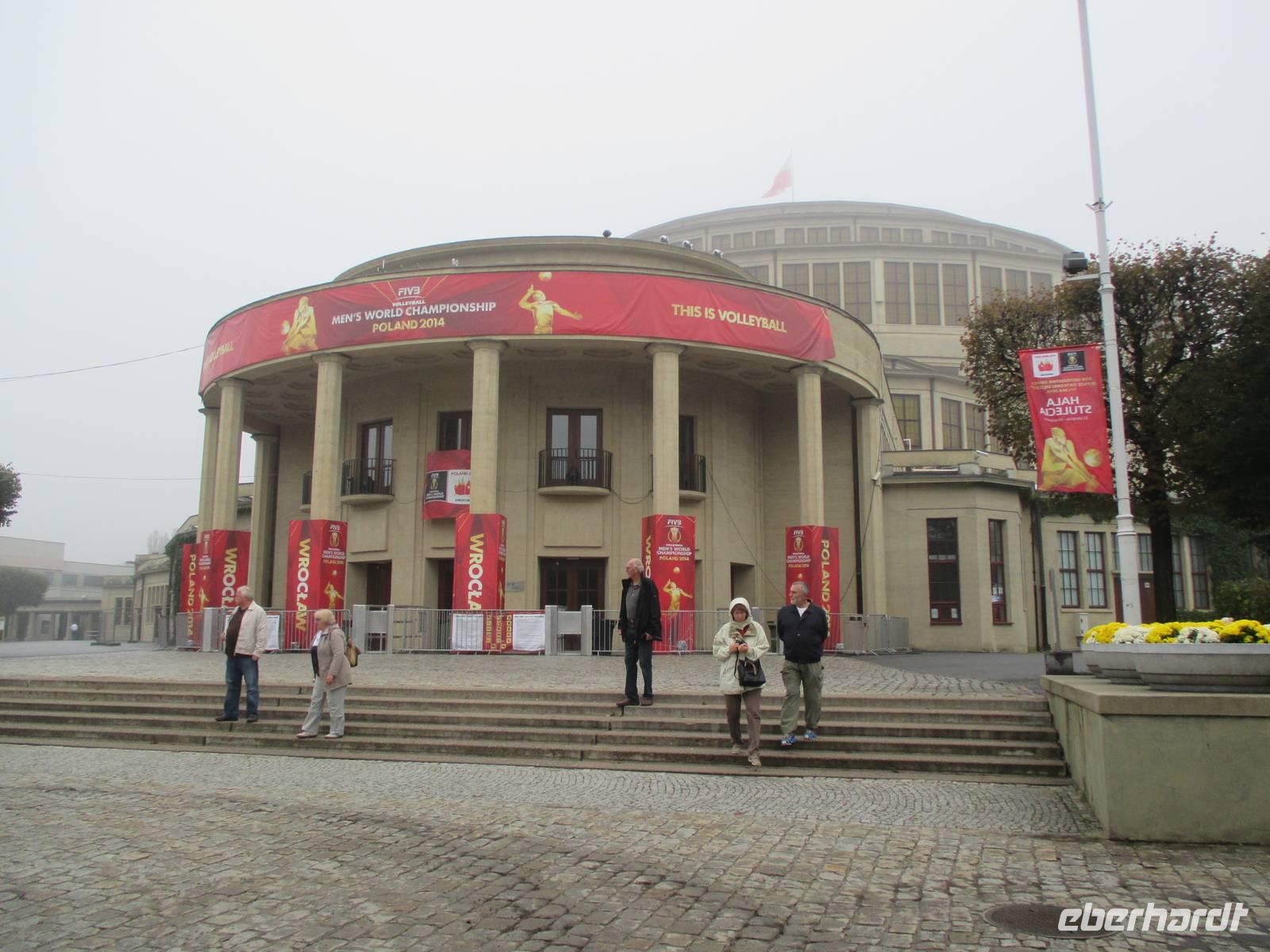 Ein Teil der Reisegruppe begab sich mit der Straßenbahn zur "Jahrhunderthalle", einer imposanten Veranstaltungsarena, die zum Zeitpunkt ihres Baus 1913 ein herausragendes Zeugnis für die Architektur dargestellt hatte. Leider war ein Besuch im Inneren wegen der derzeit stattfindende WM im Volleyball nicht möglich. Aber auch die Außenbereiche, wie die Pergola, die Wasserspiele und die Parkanlagen waren sehr beeindruckend. Ein Besuch des japanischen Gartens zeigte die idyllische Seite der Stadt. Am Nachmittag stand das "Panorama von Raclawice" auf dem Programm. Das über 115 m lange und 15 m hohe Gemälde war vor dem Krieg in Lemberg zu sehen und wurde von den umgesiedelten Bürgern mit nach Breslau gebracht. Hier durfte es in sozialistischer Zeit nicht gezeigt werden, da es den Sieg polnischer Bauern und Soldaten in einer Schlacht über die russische Armee darstellt. Erst in den achtziger Jahren wurde ein entsprechendes Gebäude errichtet und seitdem ist es eine der meist besuchten Attraktionen in Breslau. Der weitere Nachmittag und der Abend standen wieder für individuelle Entdeckungen zur Verfügung. Der Tag auf dem Rynek war geprägt durch die Ehrung der Absolventen der Offiziersschule der polischen Armee an diesem Tag.