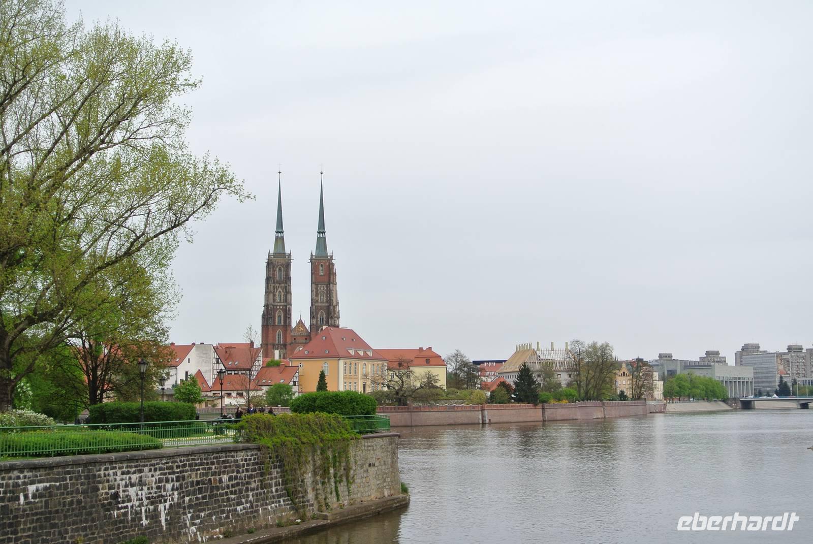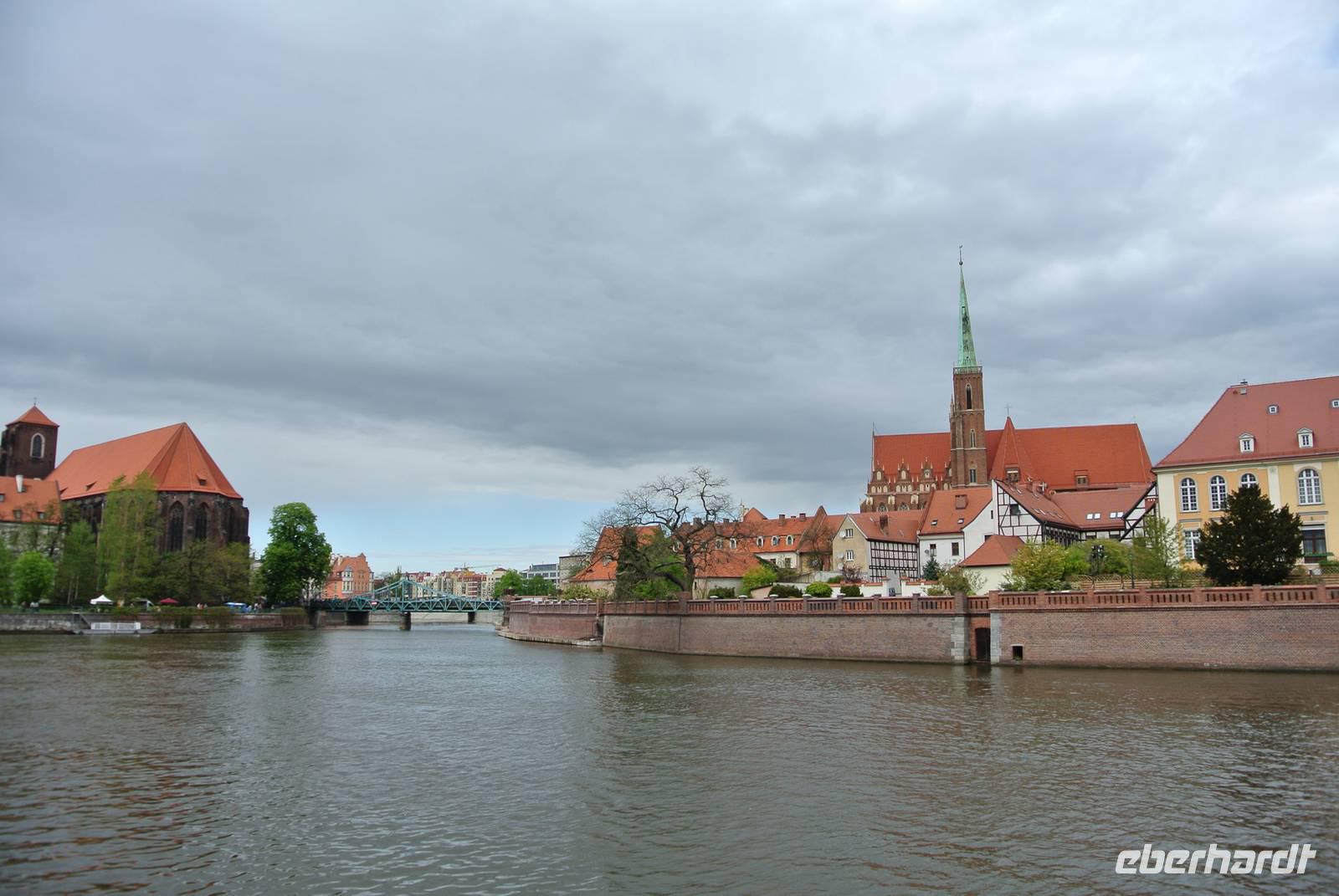 An den Markthallen an der Oder stiegen wir aus der Straßenbahn aus und machten bei leichtem Regen einen Spaziergang zur Dom-Insel, wo wir bis zur Abfahrt unserer Schiffes für die Oderfahrt um 13:00 Uhr verweilten.