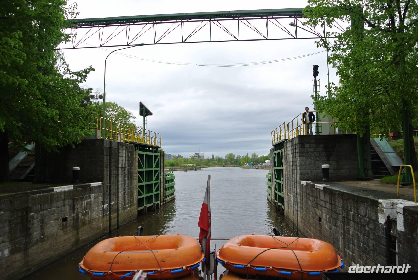Um 13:15 hieß es dann „Leinen los" und „Schiff ahoi" für unsere lustige und erlebnisreiche Schifffahrt auf der Oder bis zur Jahrhunderthalle und zurück. Dass wir während der 1 ½ Stunden auch 2 Mal die Schleuse durchfuhren, macht besonders den Herren großen Spaß.