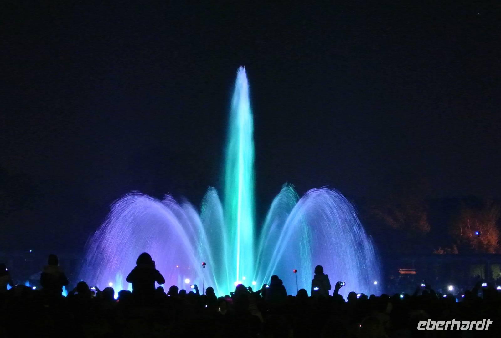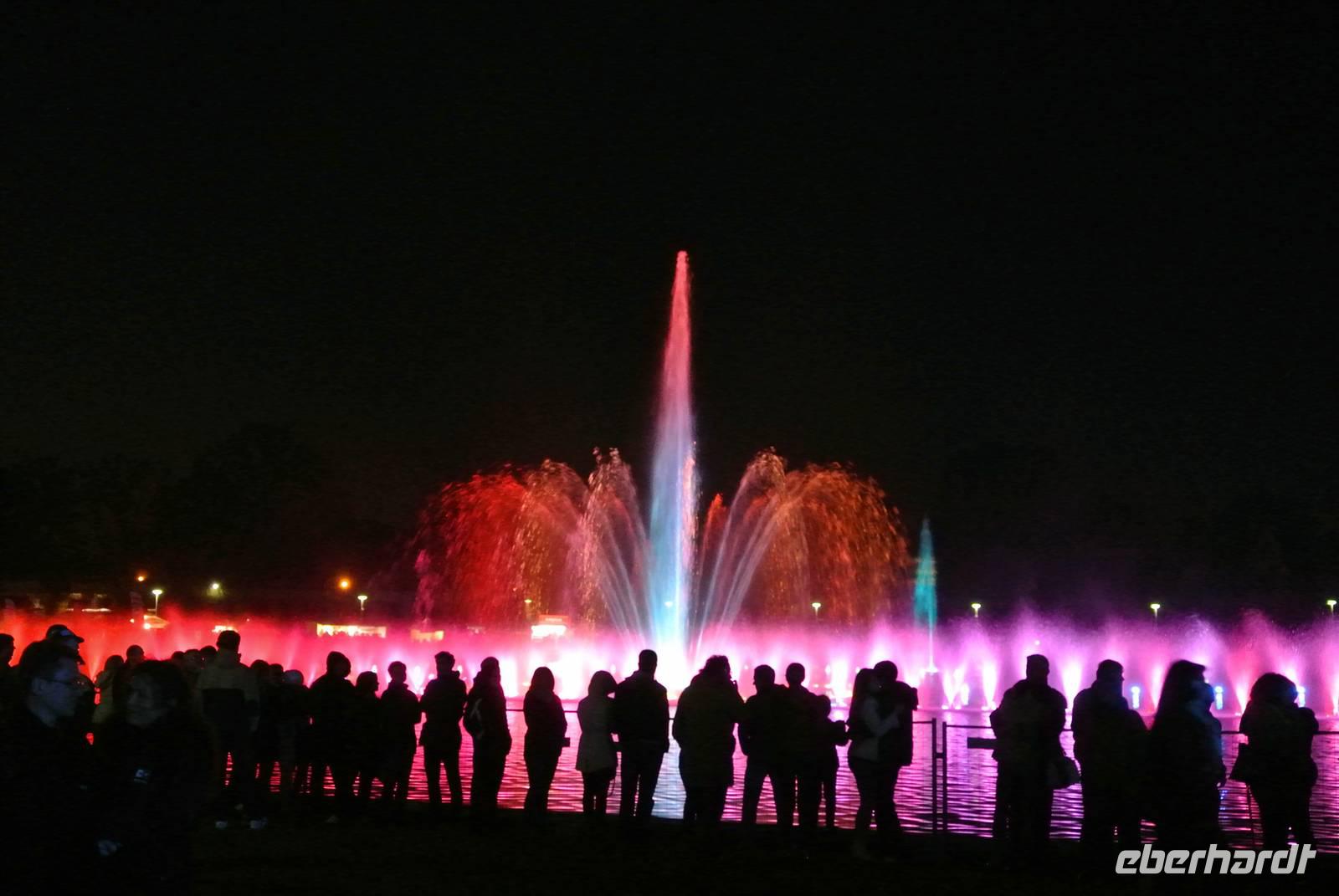 Hier erwartete uns ein eindrucksvolles Schauspiel. Das erste Mal im Jahre 2015 begann am großen Springbrunnen an der Jahrhunderthalle, der Fontana" um 21:45 Uhr am 01. Mai 2015 die größten Wasserspiele Europas mit einer einzigartigen Licht- und Ton Show.