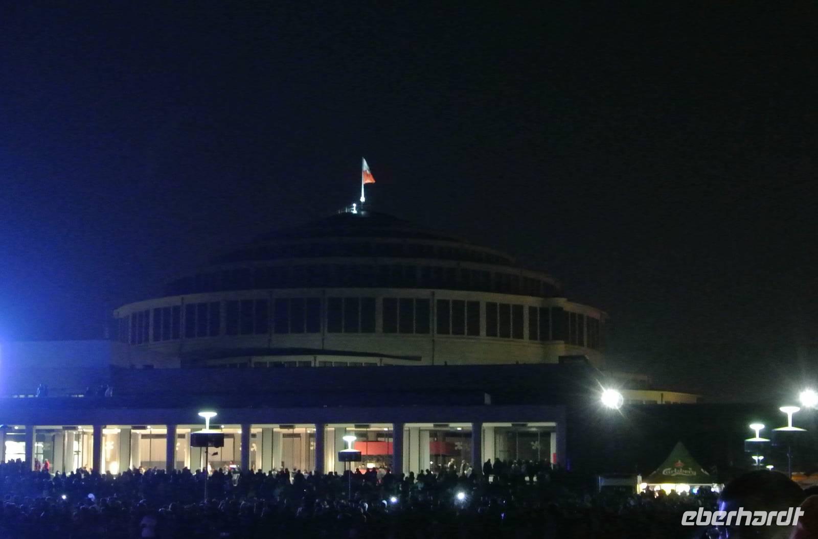 Um 21:15 Uhr erreichten wir das UNESCO Welterbe, die im Jahre 1911 erbaute Jahrhunderthalle in einer stimmungsvollen Nachtstimmung.