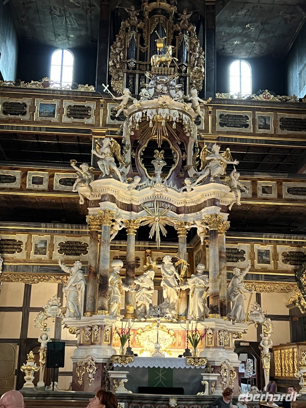 Der Ausflug führte uns heute ins Waldenburger Land. Das Ziel war das größte Schloss Schlesiens. Fürstenstein thront auf einem Hügel, mitten in einer waldreichen Landschaft. Bei der Besichtigung erhielten wir viele Infos wechselvolle Geschichte des Schlosses. Anschließend hatten wir Zeit für die Parkanlagen. Auf dem Heimweg noch ein kurzer Stopp an der Friedenskirche von Schweidnitz. Von außen eher schlicht – aber im Inneren die volle Pracht des Barocks.