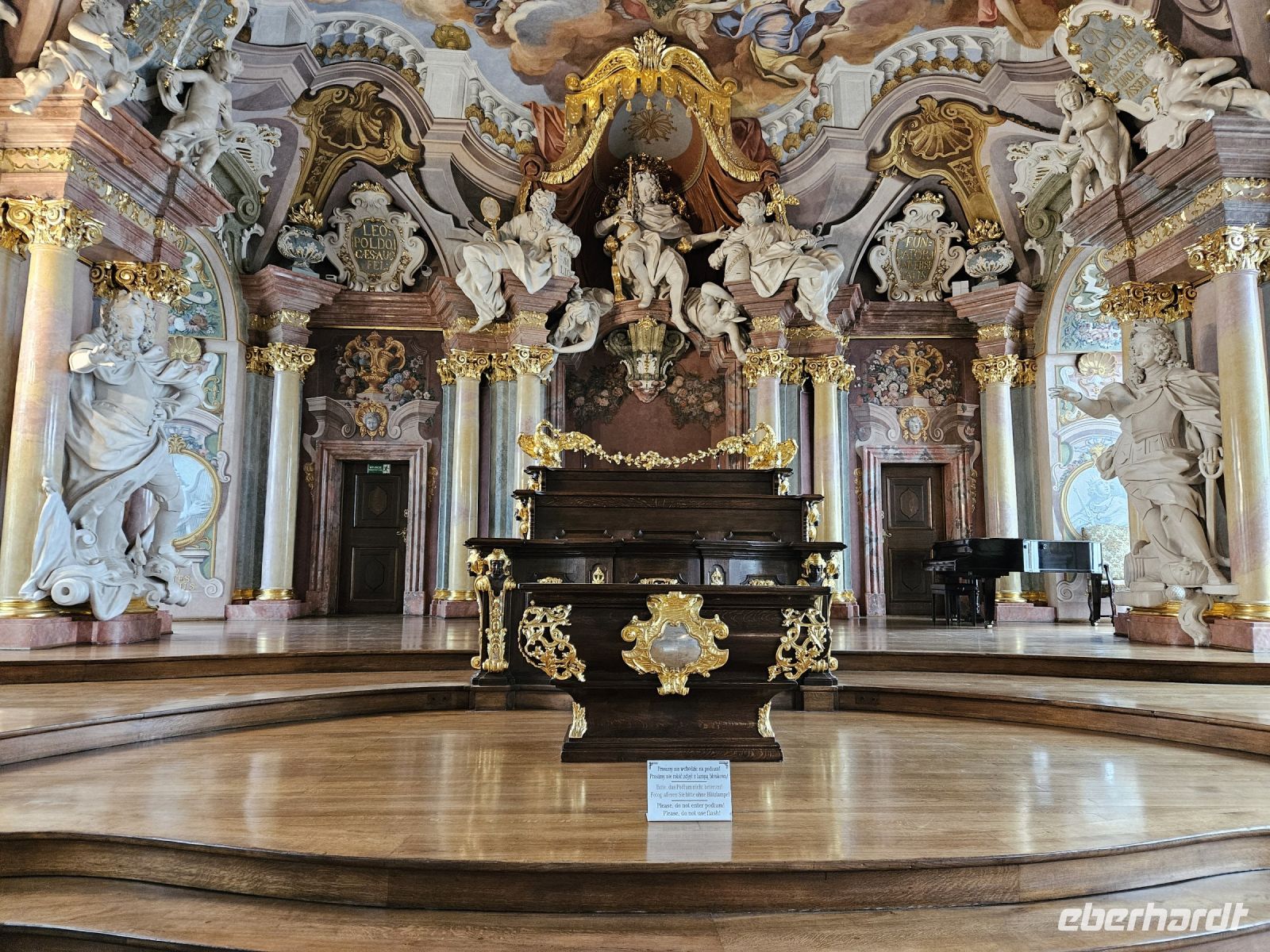 Im Anschluss an die Schlossbesichtigung, warfen wir auch einen Blick in den Festsaal. Hier fand gerade eine Generalprobe für die Auszeichnung der besten Grundschüler in den Bereichen Sport, Kunst und Musik statt.