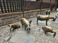 Auf dem Weg zum Rynek machten wir noch Halt am Gefängnis und an den Schlachtbänken. In dieser Gasse wird Kunsthandwerk verkauft und gleich am Eingang der Gasse ist den Schlachttieren zu Ehren ein Denkmal von seinen Verbrauchern erbaut worden.