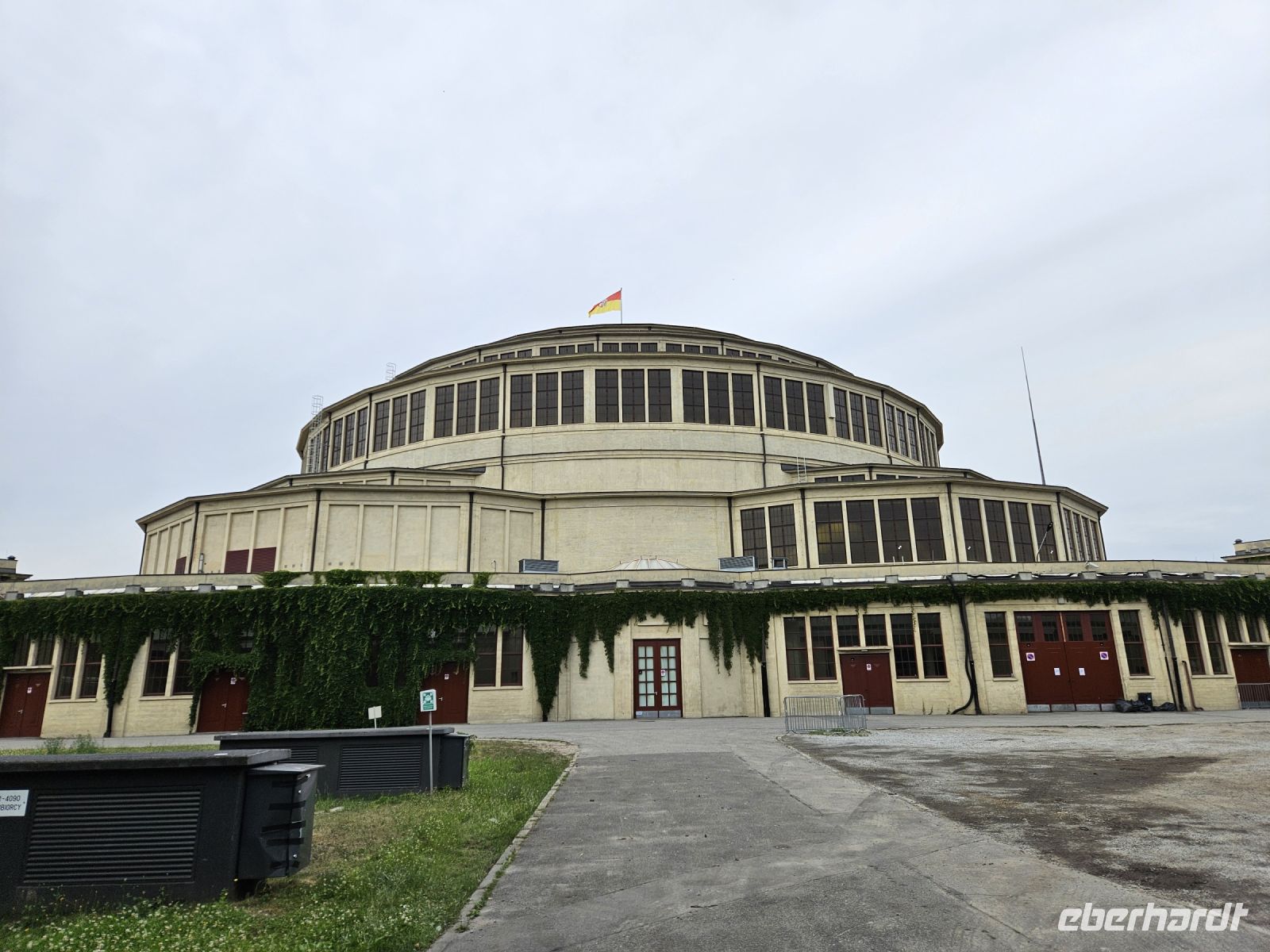 Im Anschluss fuhren wir weiter zur Jahrhunderthalle, die sich genau gegenüber dem Breslauer Zoo befindet. Bei der Jahrhunderthalle handelt es sich um das einzige Gebäude Breslaus, das als UNESCO Weltkulturerbe eingetragen ist. Die imposante Halle wurde 1913 für die Jahrhundertfeier zur Erinnerung an den Breslauer Aufruf des preußischen Königs Friedrich Wilhelm III in einer Rekordzeit von nur zwei Jahren aus Stahlbeton erbaut. Die Pläne des Baumeisters und Breslauer Stadtbaumeisters - Max Berg - sorgten damals für viel Furore. Die freitragende Kuppel erreicht eine Spannweite von 65 Metern. Darek erklärte uns, dass beim Bau dieser Kuppel sogar berücksichtig wurde, dass Beton sich ausdehnt und sie deswegen unter Rollen erbaut wurde. Vor der Jahrhunderthalle ragt die hundert Meter hohe Stahlkonstruktion „Iglica“ – zu deutsch die Nadel – in die Höhe.