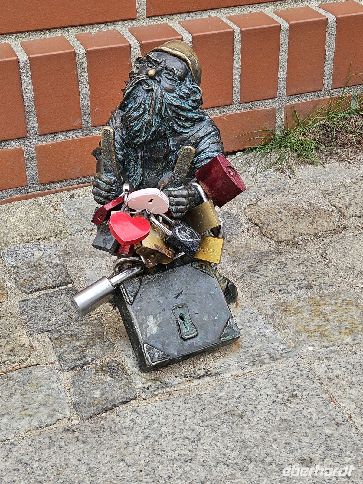 Während des Spaziergangs, fällt unser Blick immer wieder auf die Erde, wo sich die kleinsten Mitbewohner Breslaus verstecken – die Zwerge.