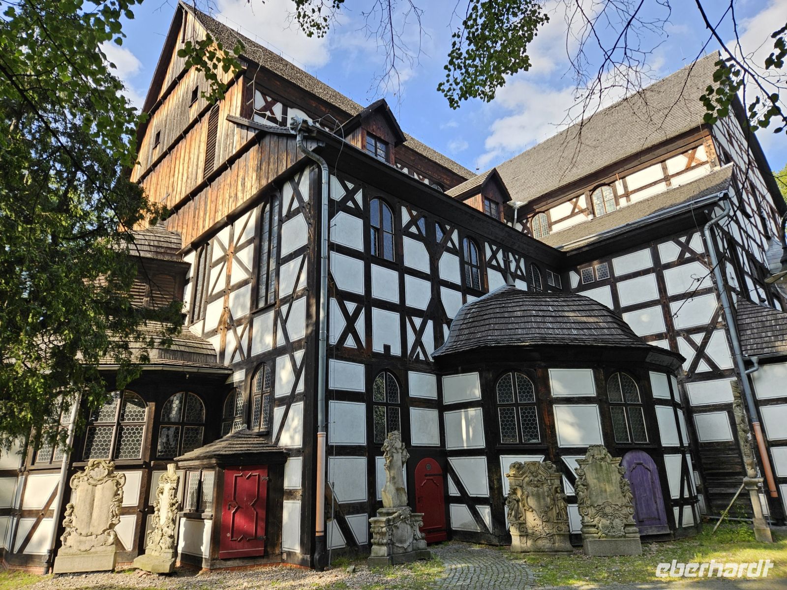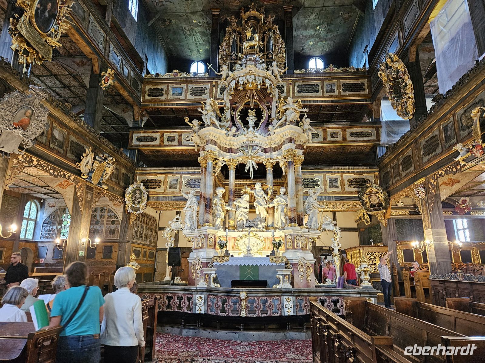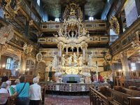 Als letzte Besichtigung heute stand die Friedenskirche Schweidnitz auf dem Programm. Ab 1526 wurde Schlesien 200 Jahre lang von den Habsburgern regiert. Zu diesem Zeitpunkt waren 90 % bereits zum evangelischen Glauben übergetreten. Die Habsburger versuchten die Schlesier zu rekatholisieren -machten aber auch Zugeständnisse und den Schlesiern wurden drei evangelische Kirchen zugestanden: in Glogau, Jauer und Schweidnitz.