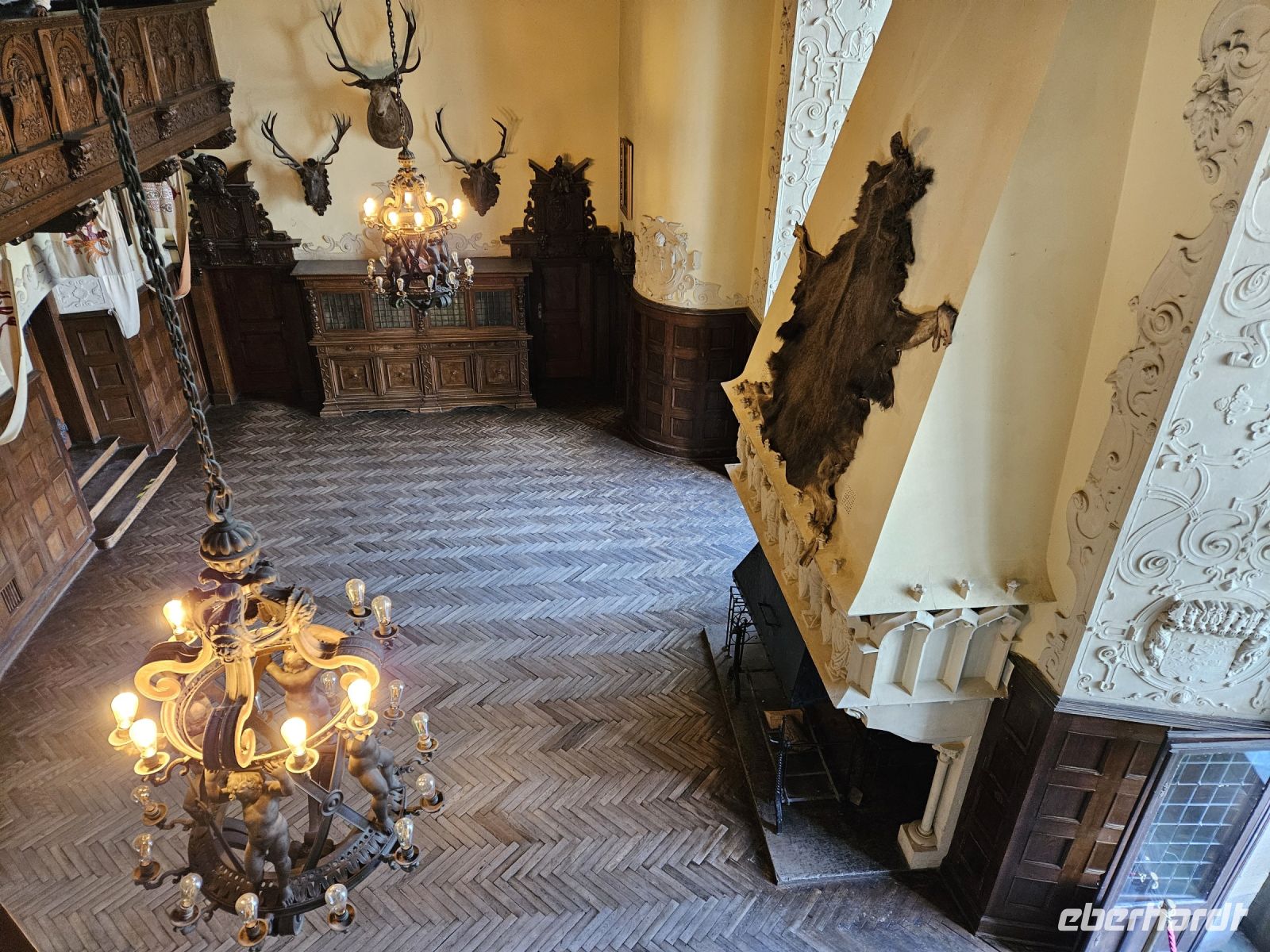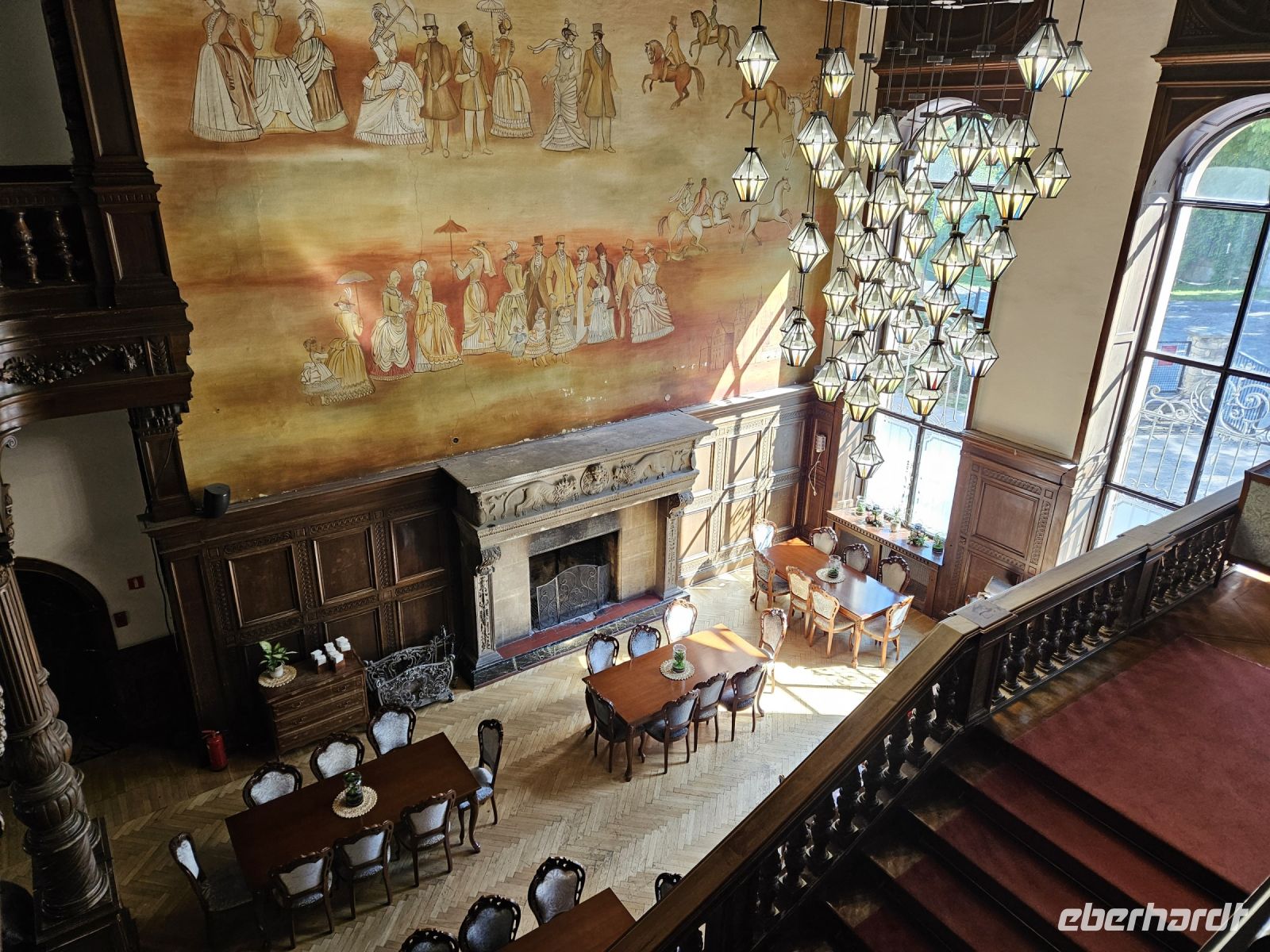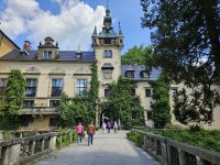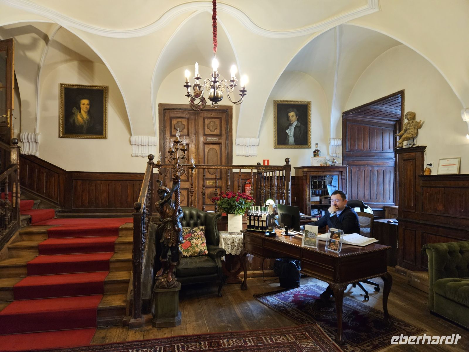 Heute beherbergt das Schloss auch ein Schlosshotel. Der Wellness-Bereich ist im ehemaligen Pferdestall untergebracht. Während des Rundgangs wurden uns ein Hotelzimmer, der Theatersaal, der französische Salon, das Ritter Museum im Keller des Schlosses und viele weitere interessante Räumlichkeiten gezeigt.