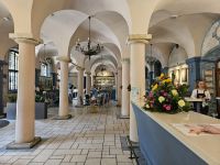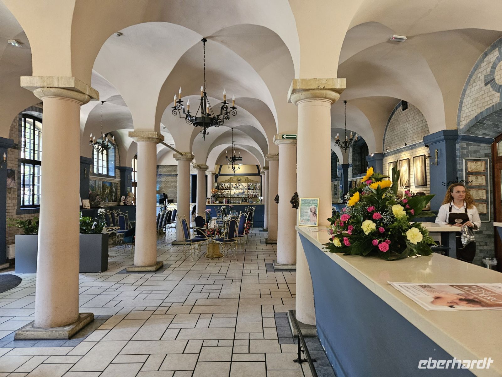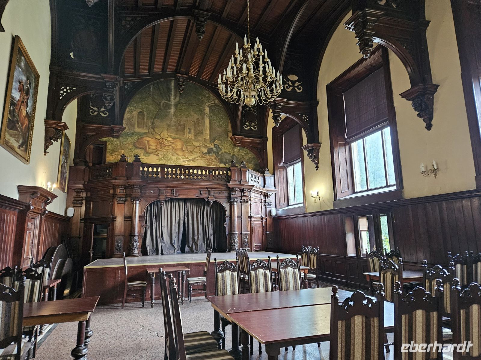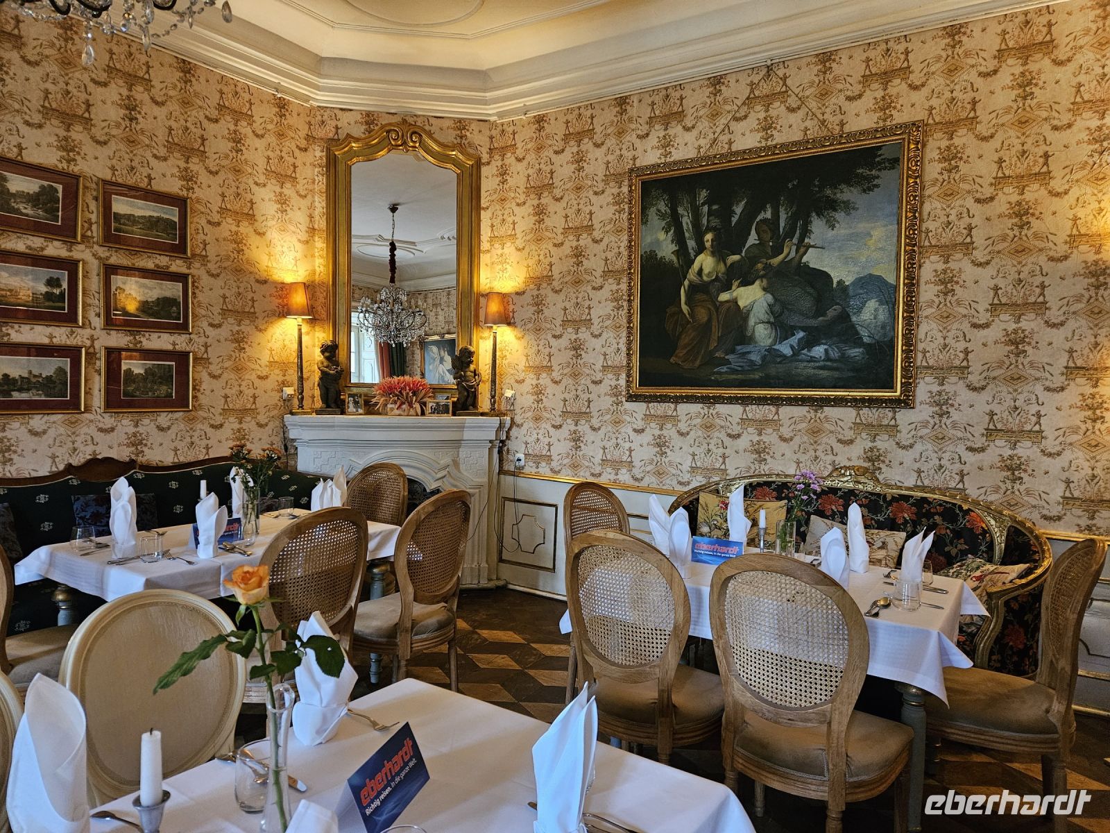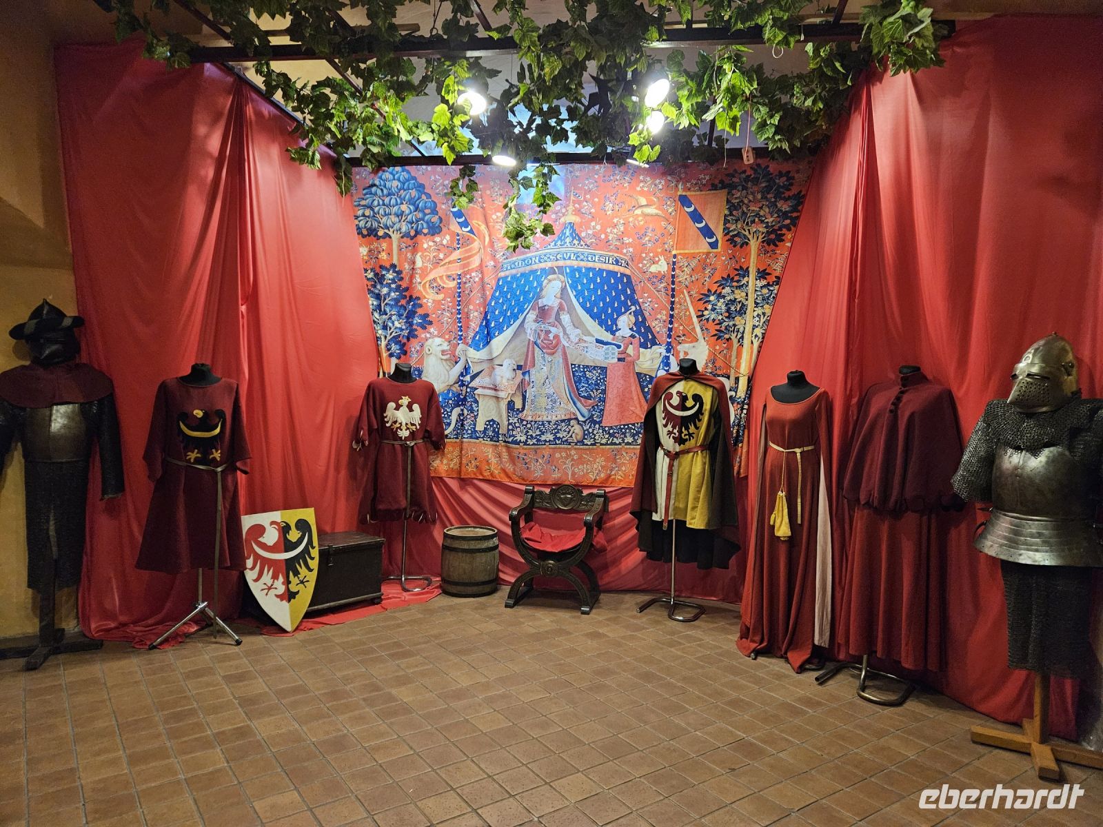 Heute beherbergt das Schloss auch ein Schlosshotel. Der Wellness-Bereich ist im ehemaligen Pferdestall untergebracht. Während des Rundgangs wurden uns ein Hotelzimmer, der Theatersaal, der französische Salon, das Ritter Museum im Keller des Schlosses und viele weitere interessante Räumlichkeiten gezeigt.