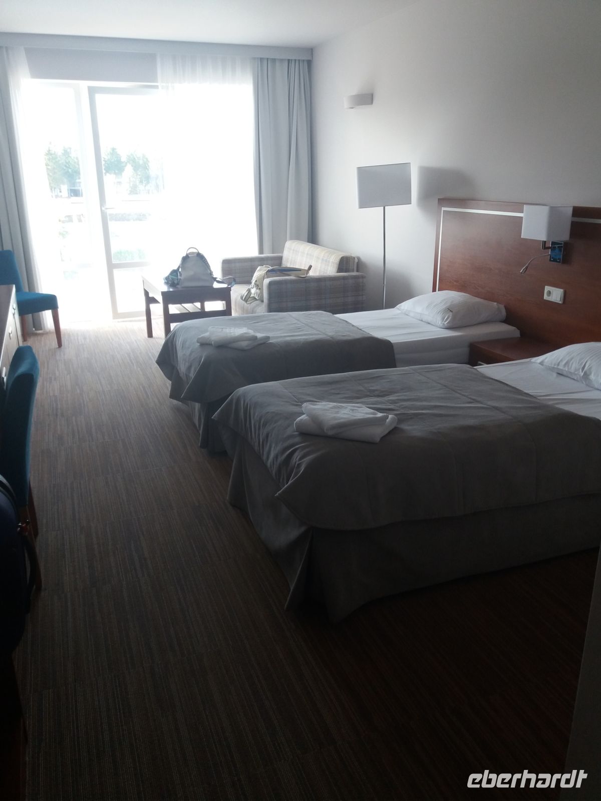 Schon gegen 14 Uhr erreichten wir unser Hotel. Das Ikar Plaza, nur wenige Meter vom Strand entfernt.