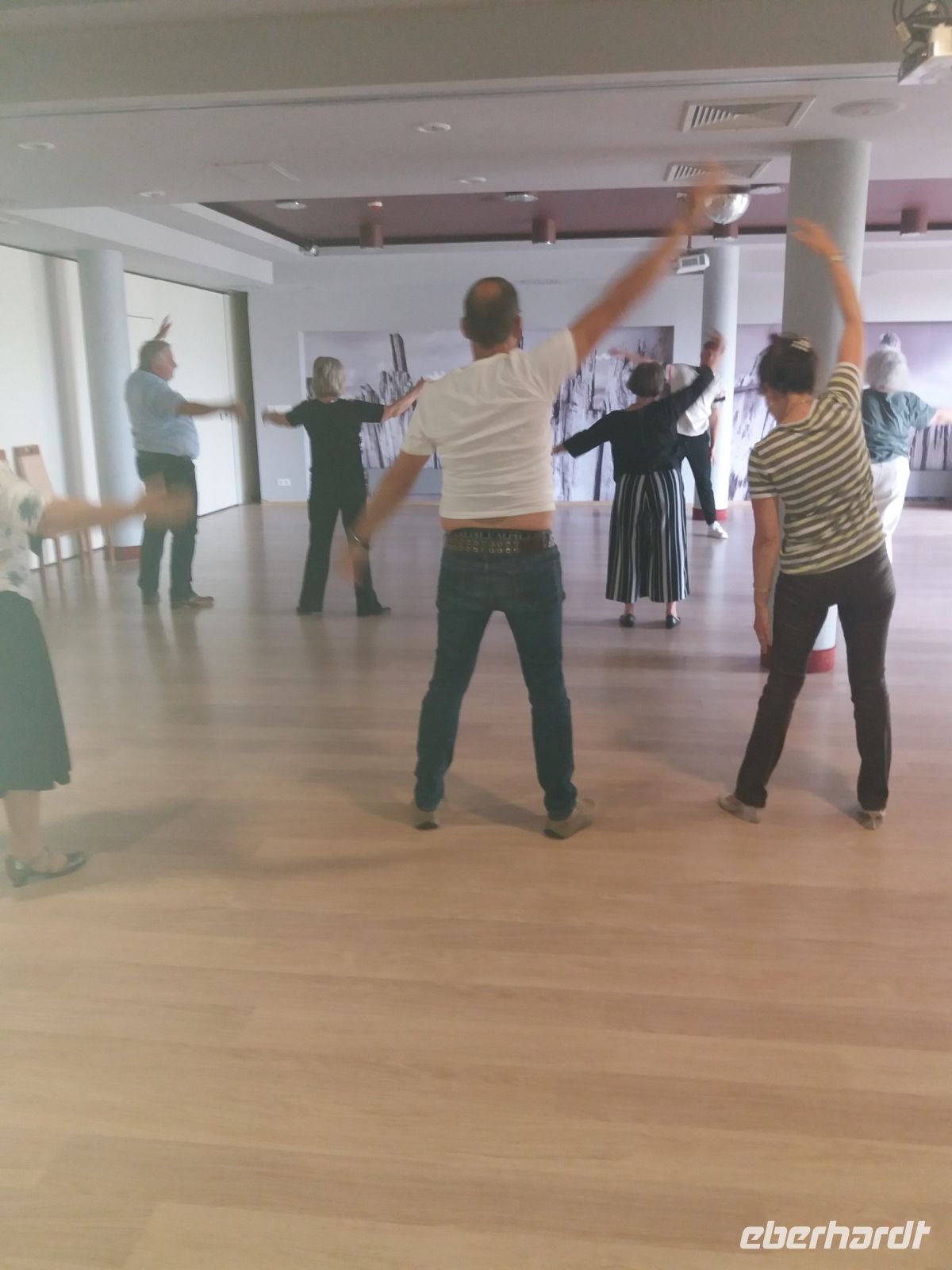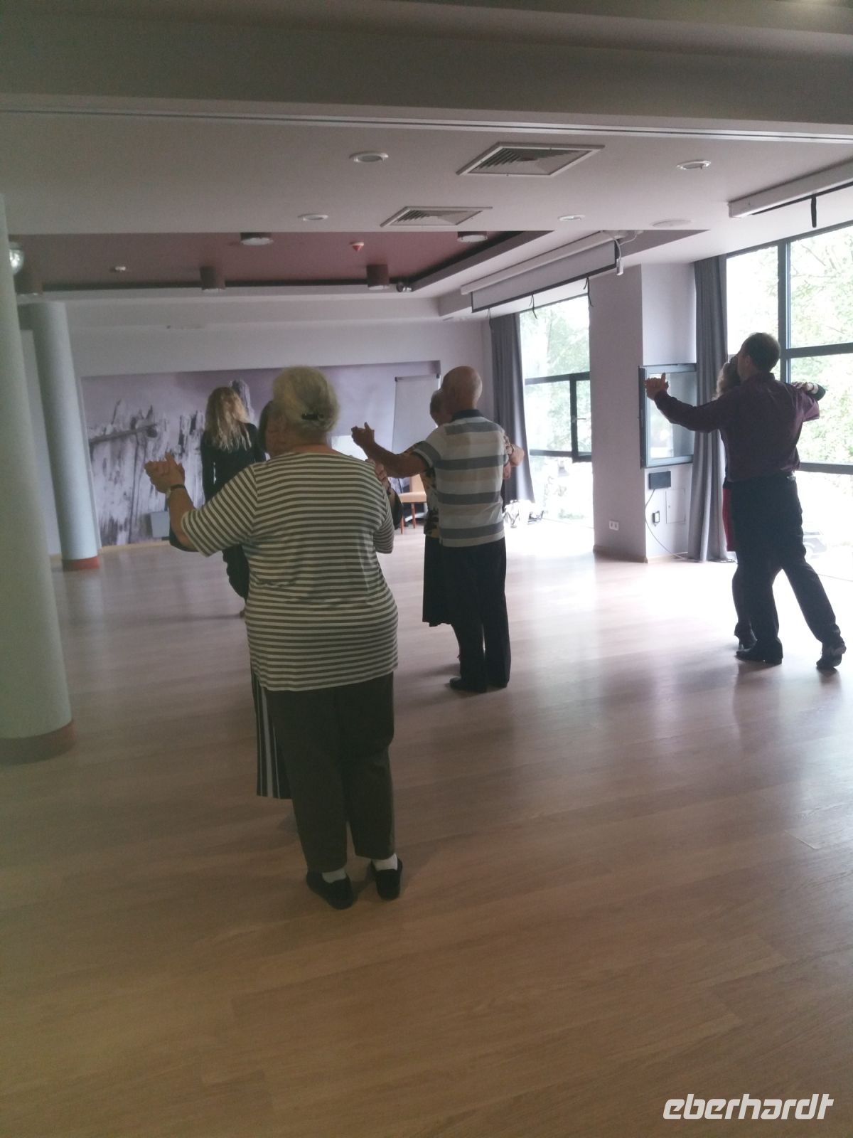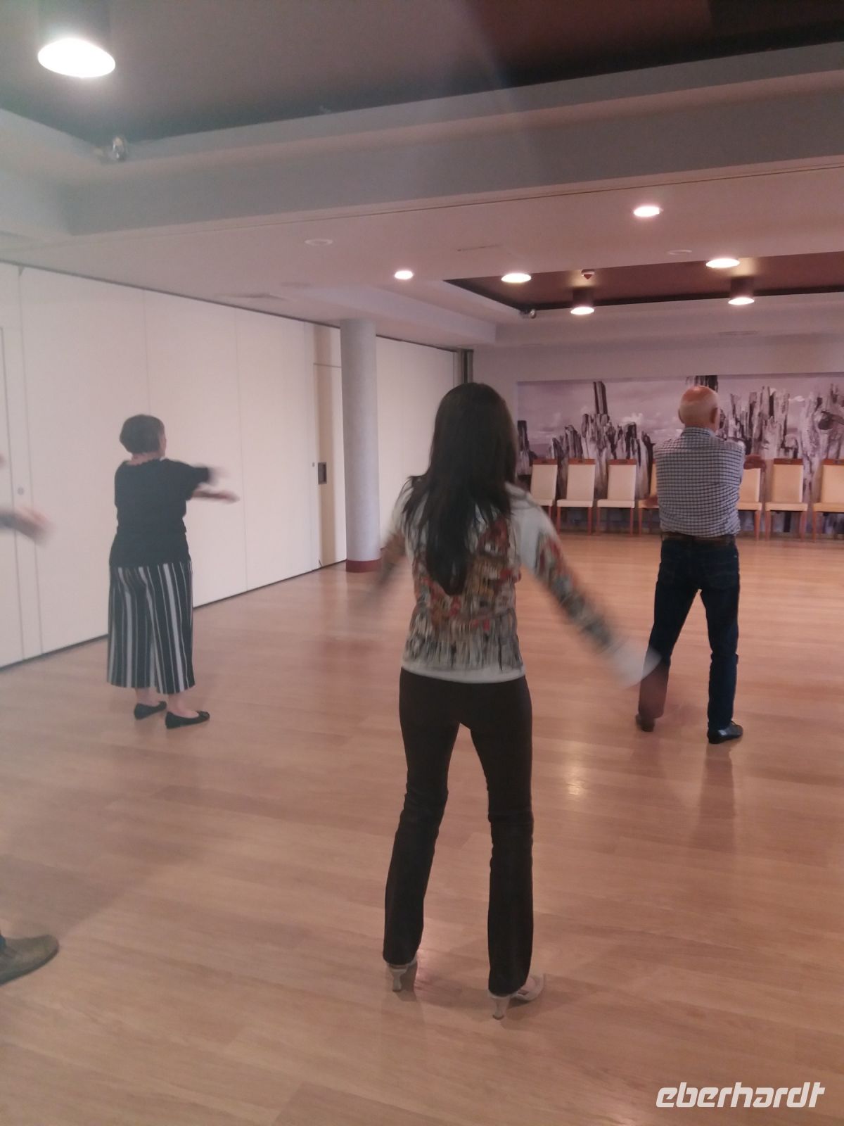 Lustig, denn manchmal verwechselt man links mit rechts. Langsam tanzen wir uns
