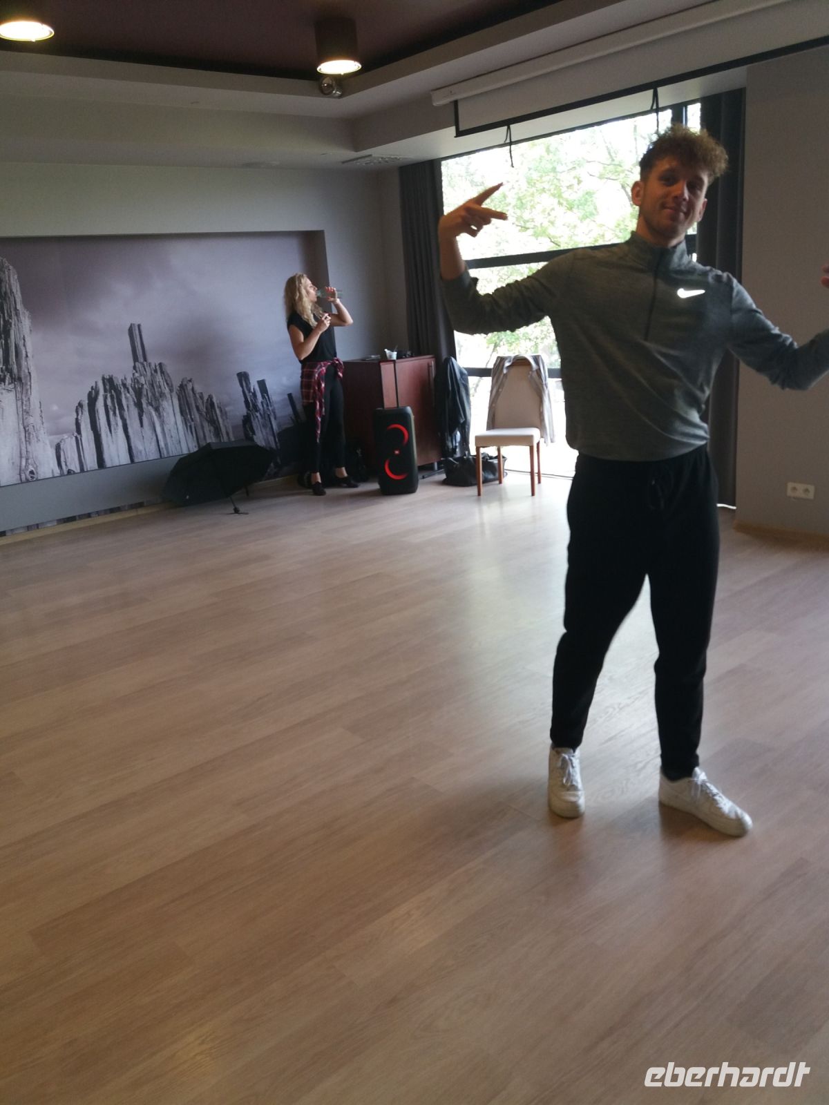 Heute starten wir unseren Tanzkurs. Nach dem Frühstück lernen wir unsere zwei Profitänzer kennen.