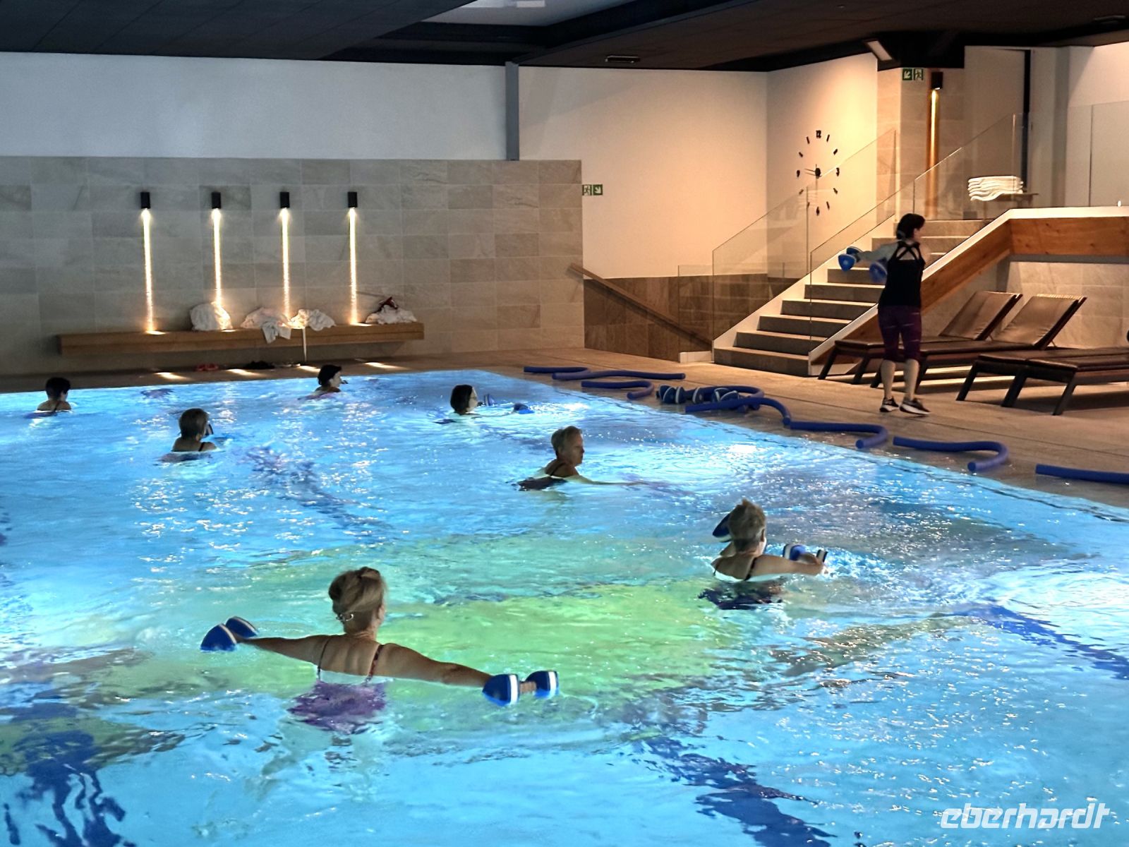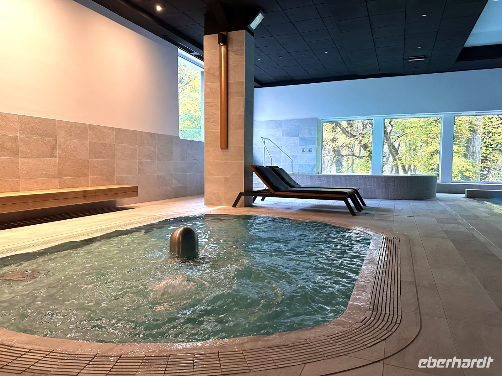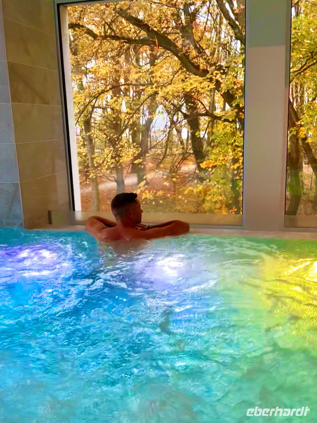 Während unseres Aufenthaltes in Kolberg genießen wir ein hervorragendes Erholungsprogramm, welches uns binnen weniger Tage völlig abschalten lässt. Ausgeschlafen treffen wir uns morgens zum gemeinsamen Frühstück, manche waren bereits zuvor am Strand spazieren und berichteten uns von ihren Erlebnissen. Anschließend starteten wir zu unserer täglichen Sporteinheit. Diese wechselte täglich zwischen Aqua-Fitness und Pilates. Man mag denken, das is ja pillepalle – aber wir wurden da teils eines besseren belehrt und hatten demnach auch unseren Spaß wenn die eine oder andere Übung uns vor kleine Herausforderungen stellte, die aber von mal zu mal im laufe der Woche auch immer machbarer wurden. Nach getaner Arbeit heißt es für die meisten ab in den Whirlpool, von dem aus man einen tollen Blick in die Natur hat.