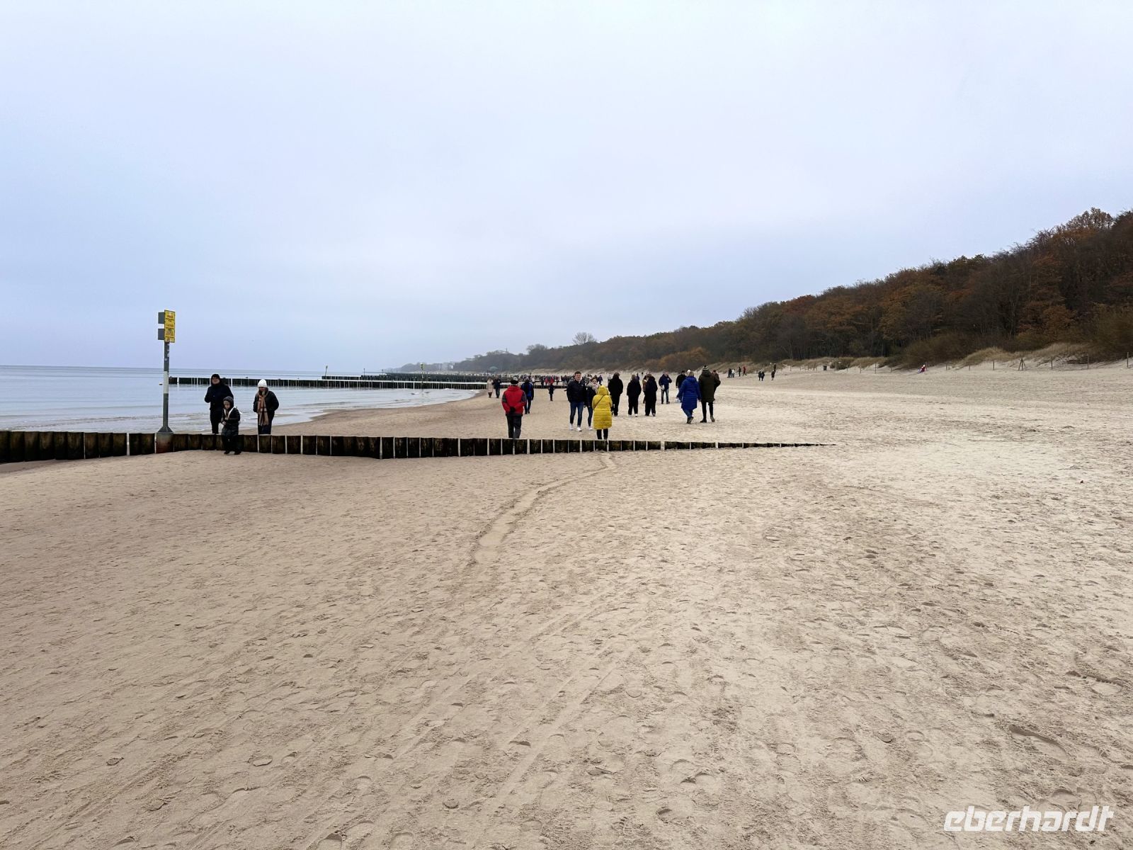 In Kolberg wurden wir durch herrlichen Sonnenschein empfangen, so dass wir unsere Koffer nur schnell im Hotel abstellen und direkt zur ersten Wanderung am Strand aufbrechen. Die Seebrücke im Blick genießen wir diesen sonnigen Novembertag am schönen Ostseestrand und erkunden die Gegend.