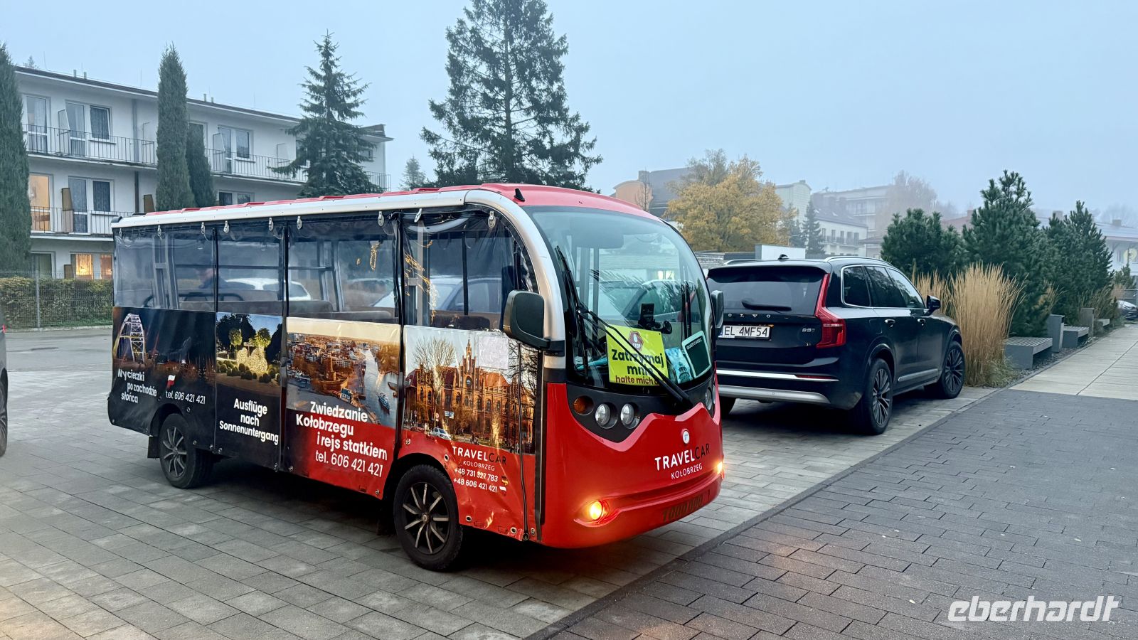 Unterwegs waren wir mit einem CityCar, einem kleinen offenen Elektrofahrzeug, das sich ideal für entspannte Stadtrundfahrten eignet. Es fährt leise, ist wendig und ermöglicht eine angenehme, entschleunigte Art, Kolberg zu entdecken – ohne lange Fußwege und mit freiem Blick auf Sehenswürdigkeiten.