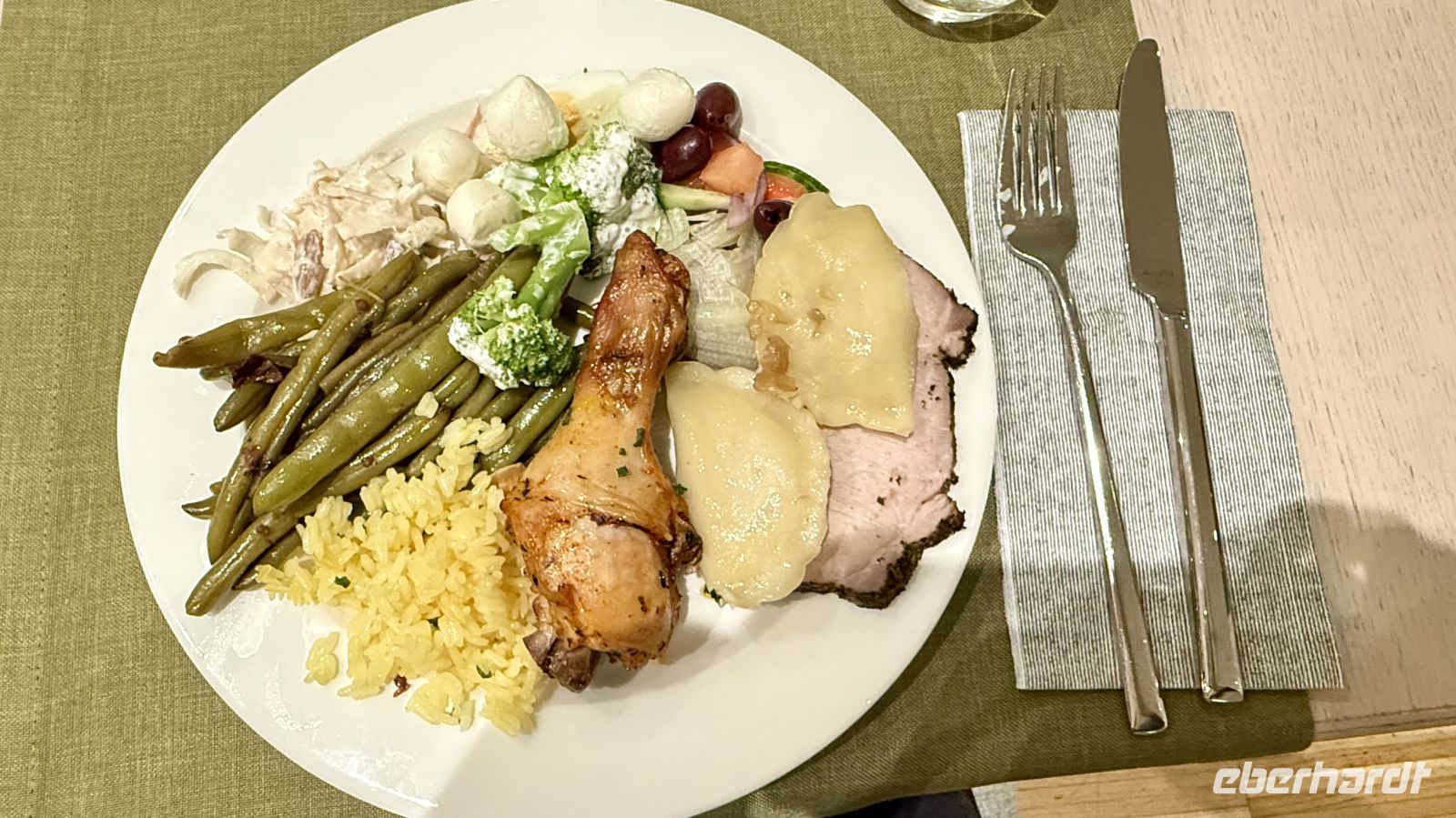 Heute stand noch einmal ein letzter Aqua-Fitness-Kurs auf dem Programm – ein schöner, belebender Start in den Tag. Leider war es auch unsere letzte Yogastunde. Wir verabschiedeten uns herzlich von Tadeusz und bedankten uns für die vielen wohltuenden und liebevoll angeleiteten Yogaeinheiten, die unsere Reise so besonders gemacht haben.