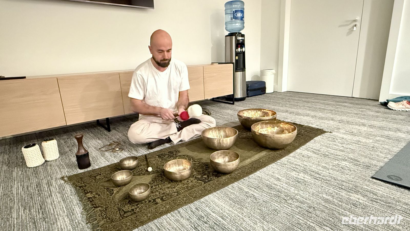 Am Abend, nach einem wohlschmeckenden Essen im Hotel, erwartete uns noch eine Einheit Entspannungsyoga mit Tadeusz. Besonders schön war, dass er seine Klangschalen mitgebracht hatte. Klangschalen werden traditionell aus einer Metalllegierung gefertigt und erzeugen beim Anschlagen oder Anreiben sanfte, schwingende Töne. Diese Klangvibrationen können helfen, Stress abzubauen, den Geist zu beruhigen und eine besonders tiefe Entspannung zu fördern. Die harmonischen Klänge erfüllten den Raum und ließen uns ganz zur Ruhe kommen.