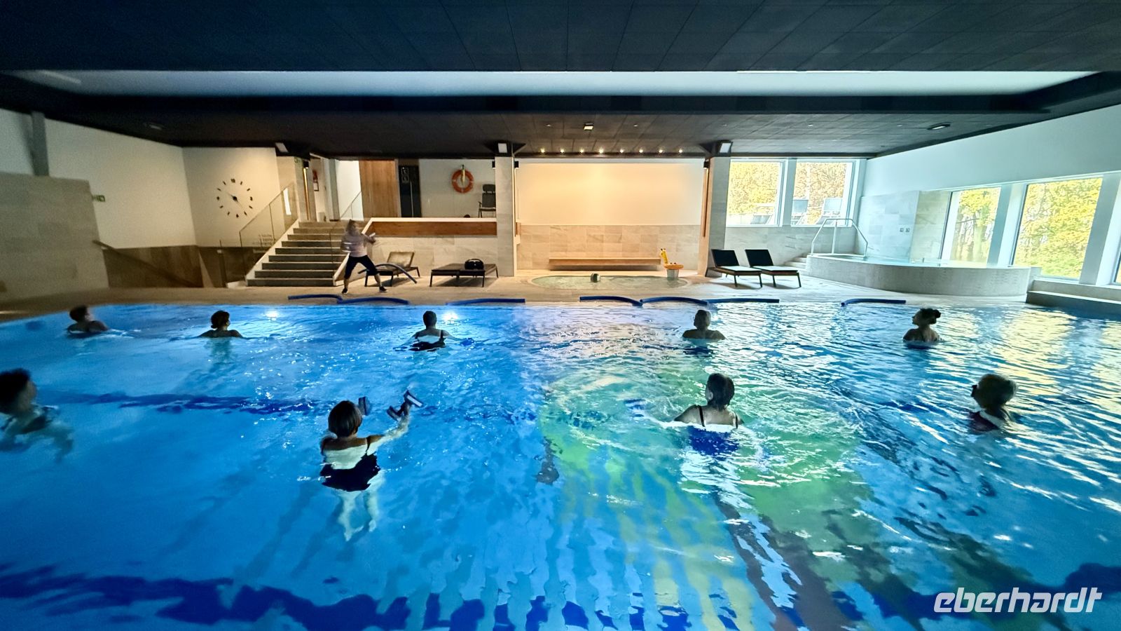 Heute begann der Tag wieder mit einem leckeren Frühstück, das uns viel Energie für die bevorstehenden Aktivitäten schenkte. Die frisch gewonnenen Kräfte konnten wir direkt beim Aqua-Fitness gut gebrauchen. Das rhythmische Bewegen im warmen Wasser machte nicht nur Spaß, sondern war auch wunderbar gelenkschonend. Anschließend ließen wir uns im warmen Whirlpool treiben und genossen die wohltuende Entspannung.