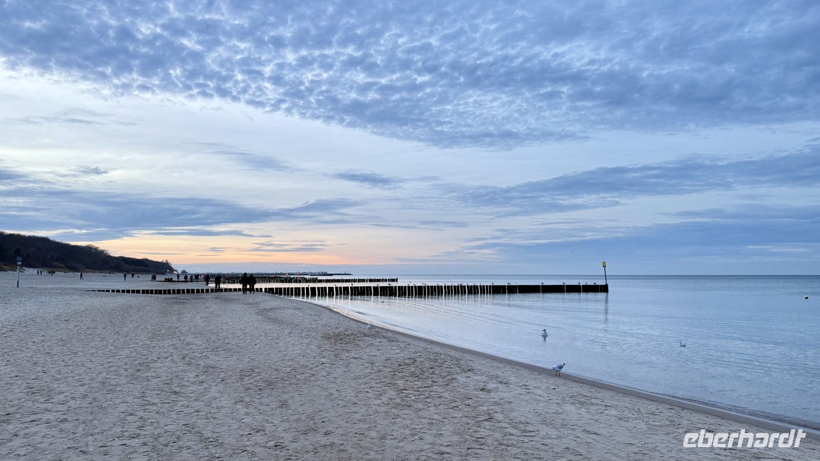 Einige Gäste nutzten die ruhigen Abendstunden noch für einen ersten Spaziergang an den Strand, um richtig anzukommen und die frische Brise der Ostsee einzuatmen.