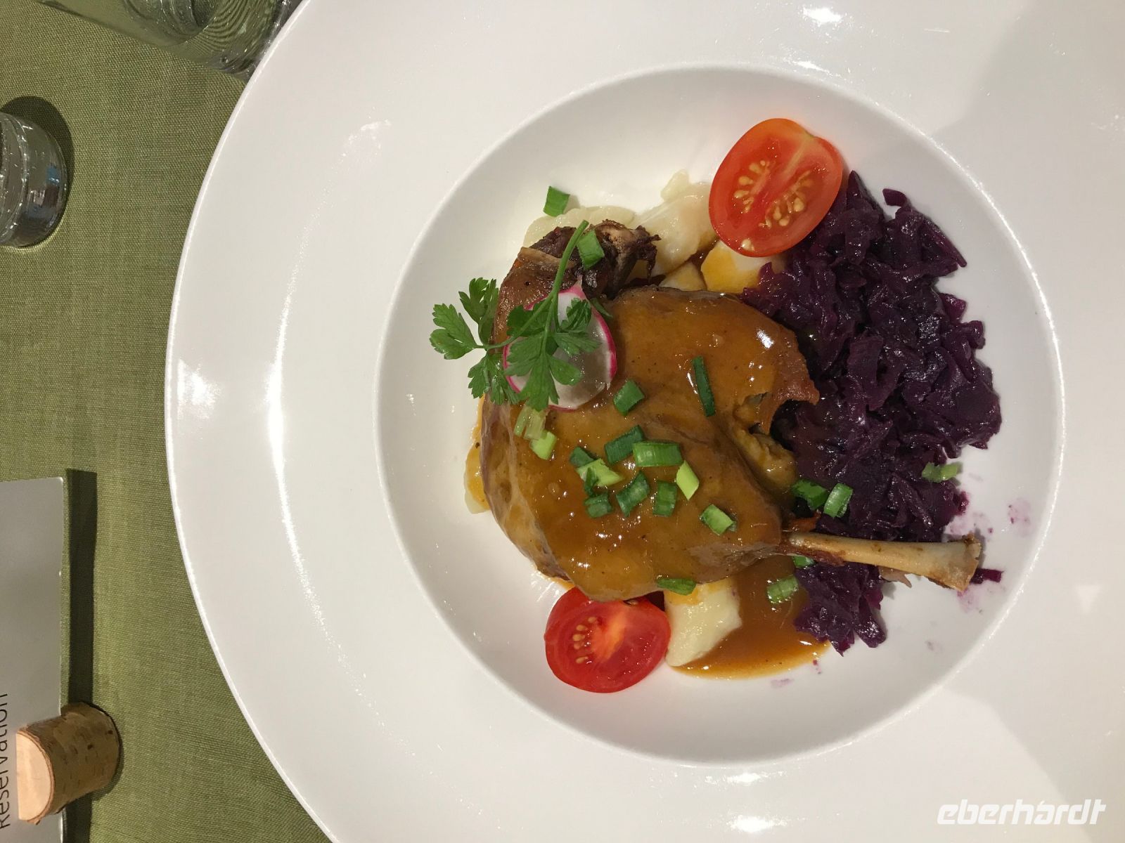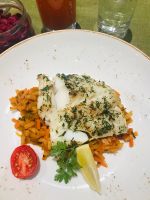 Nach zwei Tagen Detox mit rohem Blumenkohl und Brokkoli, Sauergurken-Cocktail, Sauerteig aus Roter Beete u.v.m., entscheiden wir uns nun doch für die "normale" Variante und stellen unseren Plan um, so dass wir morgens vom Frühstücksbuffet essen und abends eine Auswahl aus drei Gerichten. Alle sind froh und erleichtert über diese Lösung. Dazu muss man sagen, dass auch alles andere in diesem Hotel sehr gesund ist. Wer allerdings wirklich eine Entgiftung mit Detox machen möchte, der ist hier auch richtig. Wir haben uns dagegen entschieden und so stehen nun auch mal Gerichte wie Ente mit Rotkohl, Zander mit Reis oder Brathähnchen mit Gemüse auf dem Speiseplan. Ein Dessert darf natürlich auch nicht fehlen.