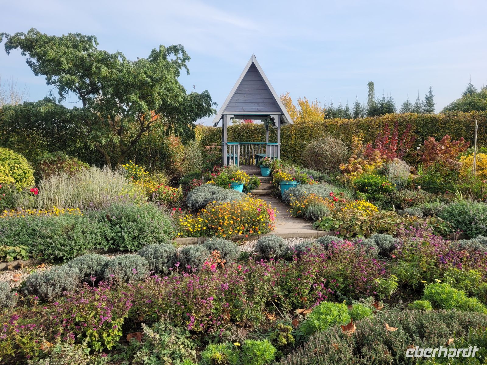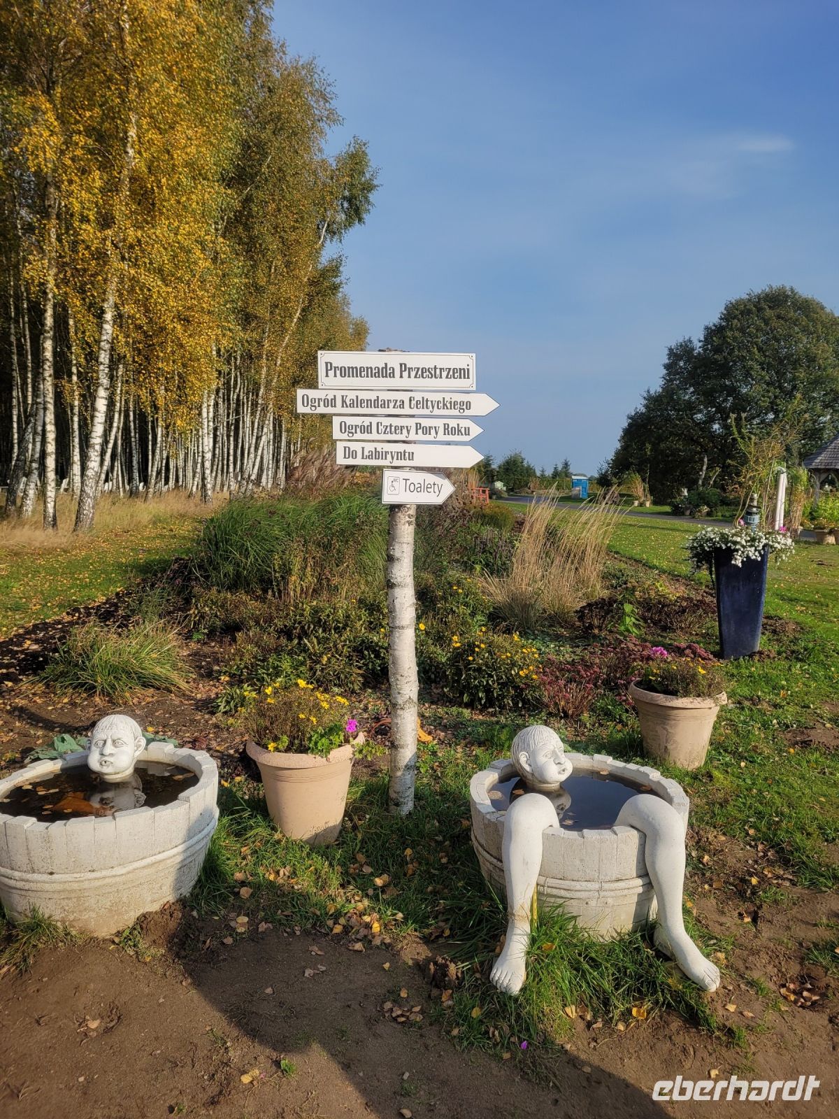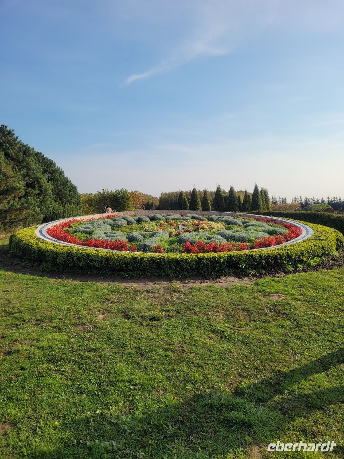 zu den Hortulusgärten. Er erklärte, dass es zwei Gartenkomplexe gibt. Wir besuchten den Garten Hortulus Spectabilis, weil der andere Bereich mit den Themengärten für Rollis nicht begehbar war. Wir spazierten im Sonnenschein durch die herbstlich blühenden Anlagen, besichtigten u.a. den Garten der vier Jahreszeiten, den Keltischen Garten und einige Gäste stiegen die 114 Stufen auf den Aussichtsturm. Im Windesbrausen sah man auch den Irrgarten, gepflanzt aus 18000 Hainbuchen. An einer kleinen Bar konnte ein Imbiss eingenommen werden. Hendrik schlug eine Rundfahrt vor. Wir waren sogleich einverstanden. Der Bus rollte nach Ustronie Morskie (Henkenhagen), streifte Koszalin (Köslin) und umrundete abschließend den J.Jamno (Jamunder See). Um 15:00 Uhr waren wir wieder im Hotel. Es blieb Zeit für einen Bummel zum Strand , für Einkäufe und zum Ausruhen.